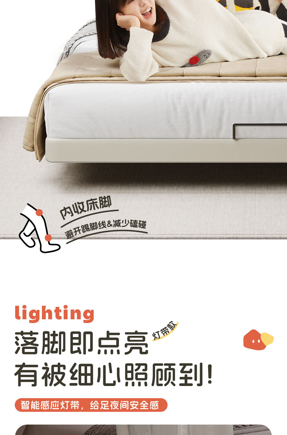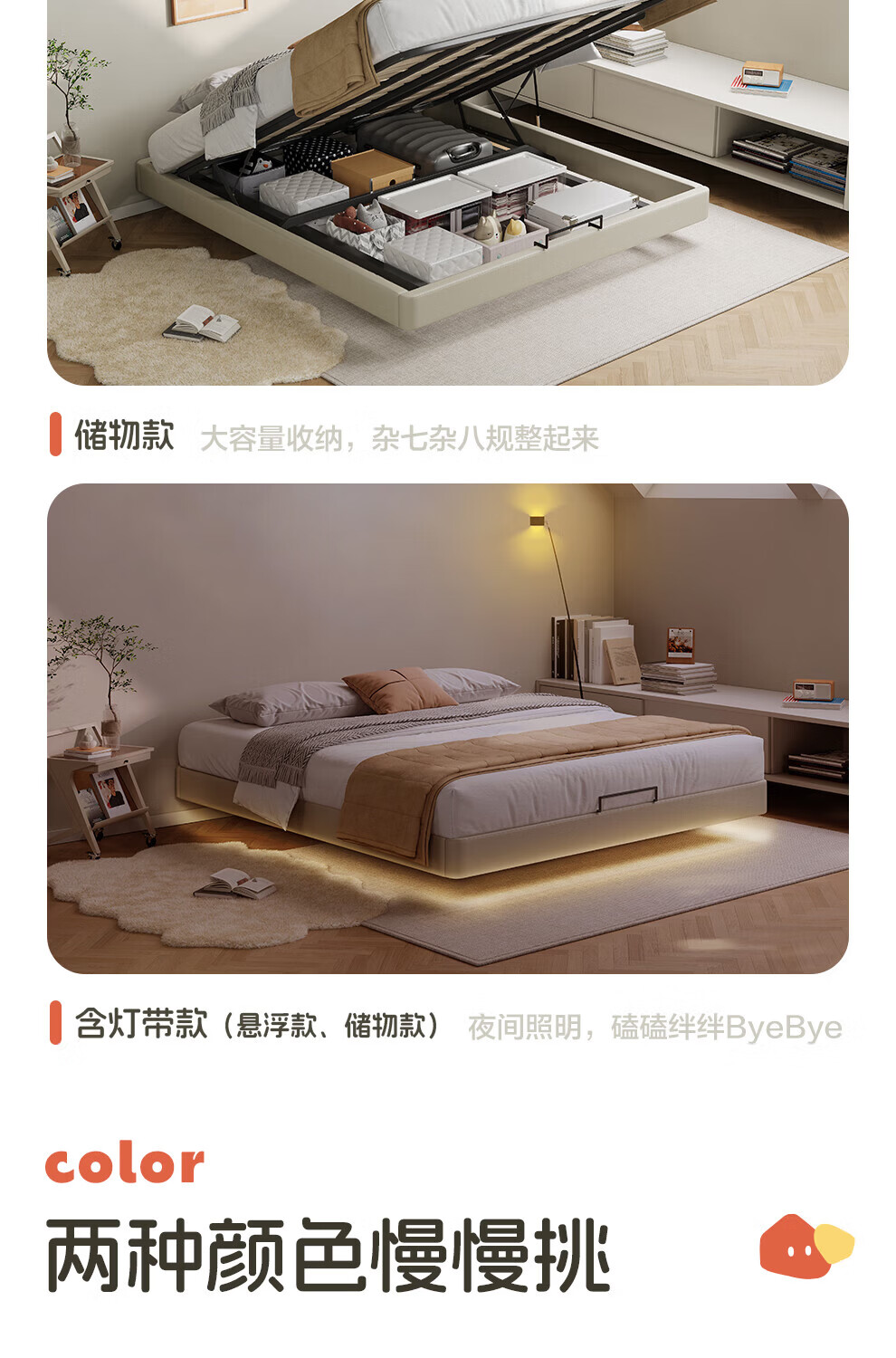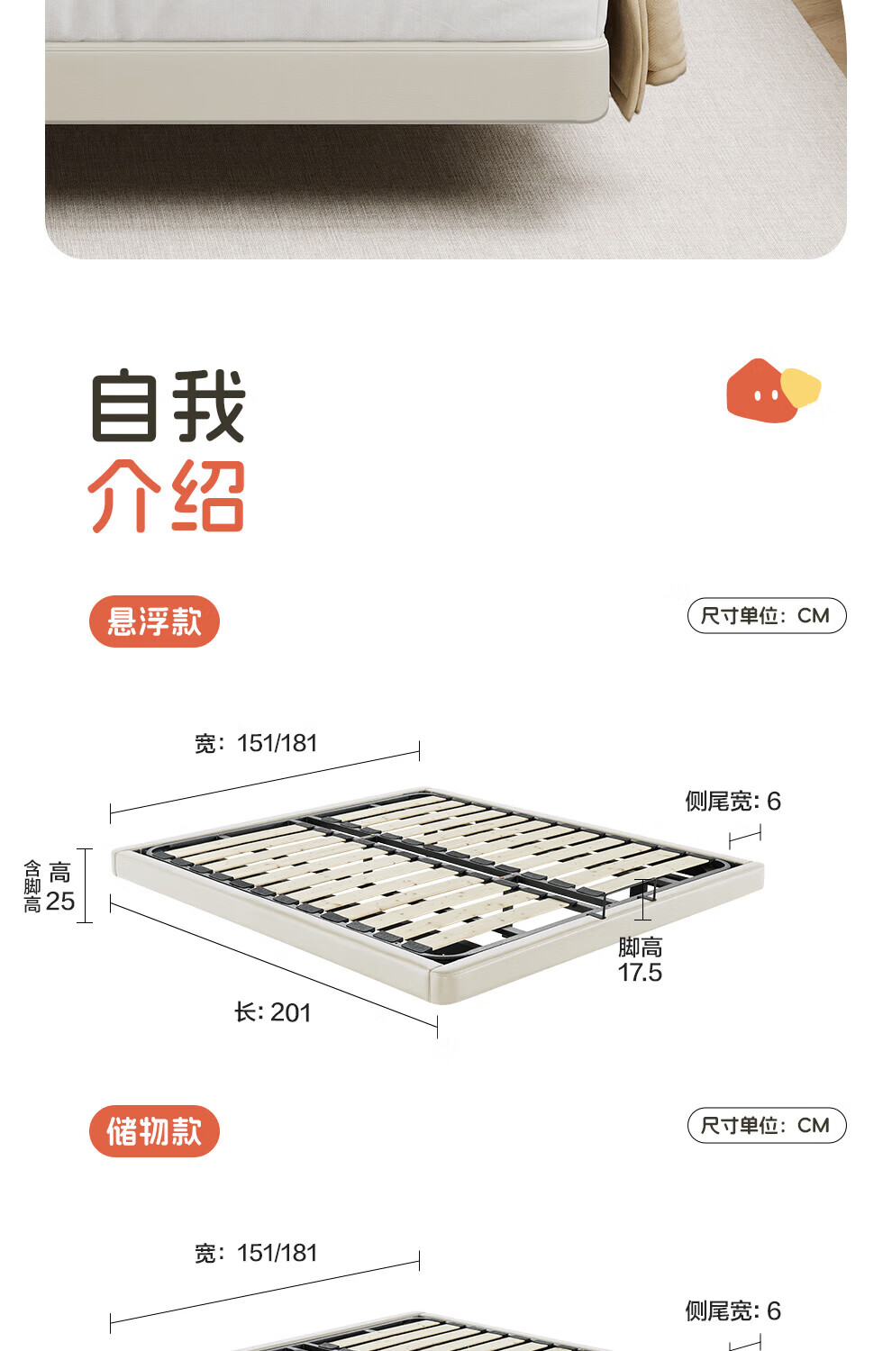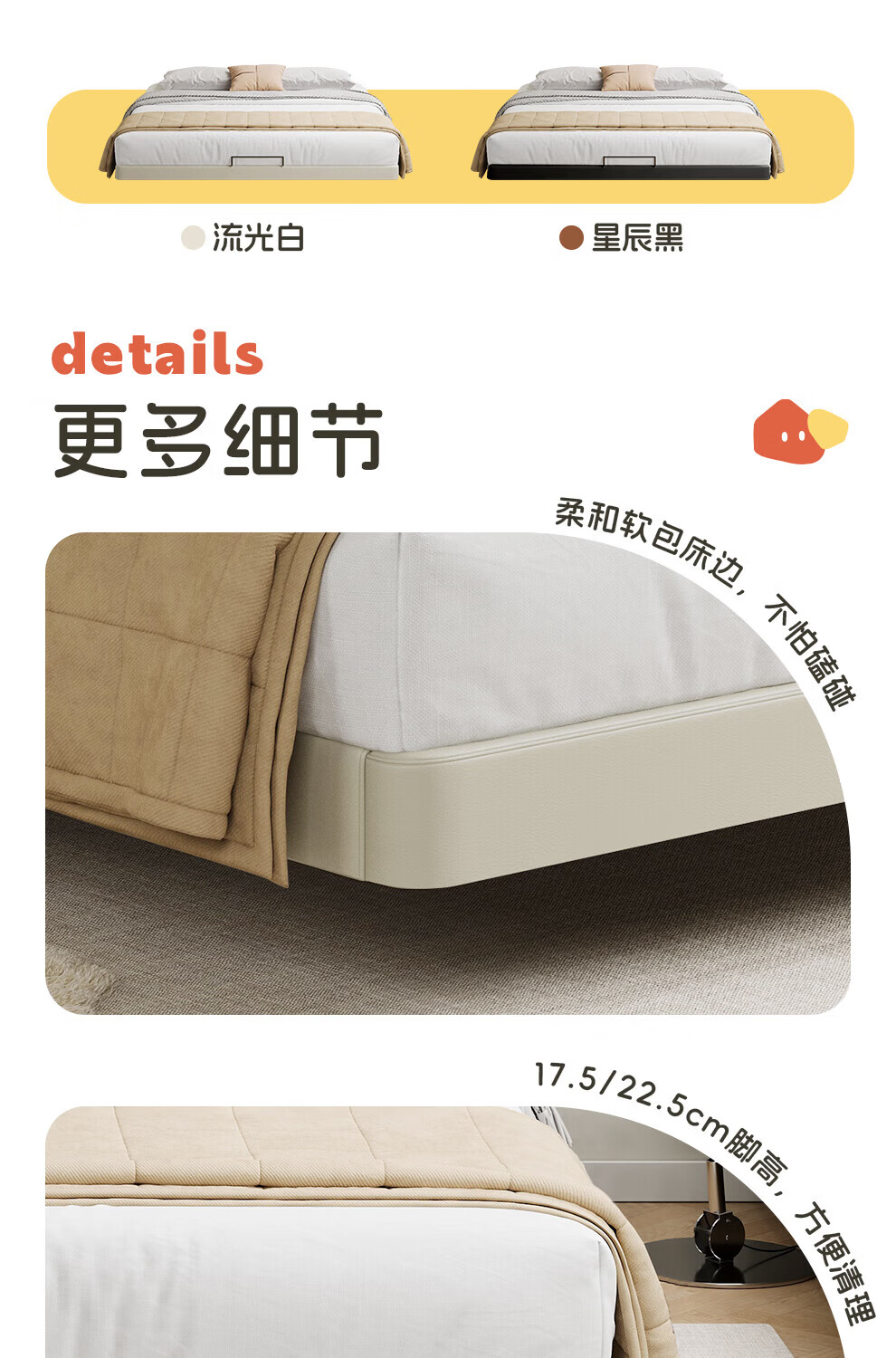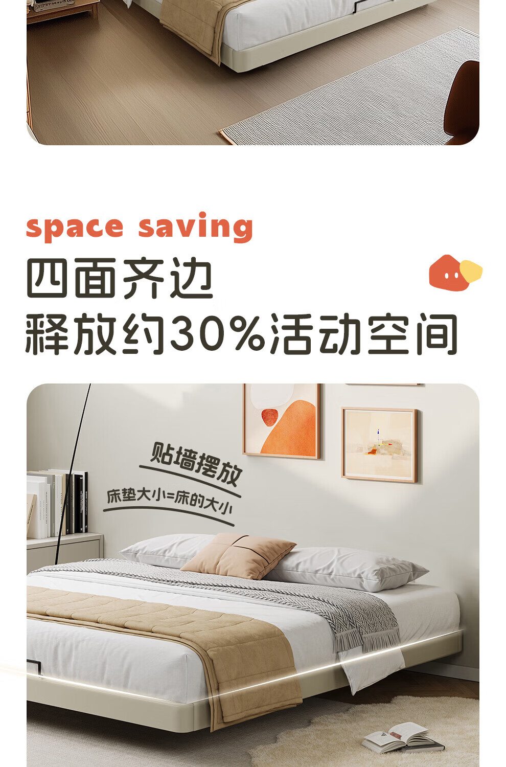 CBD家居现代简约真皮软包床双人主卧大床奶油风婚床头层牛皮甜心悬浮 甜心悬浮-奶油白单床 卷帘排骨架 1500*2000