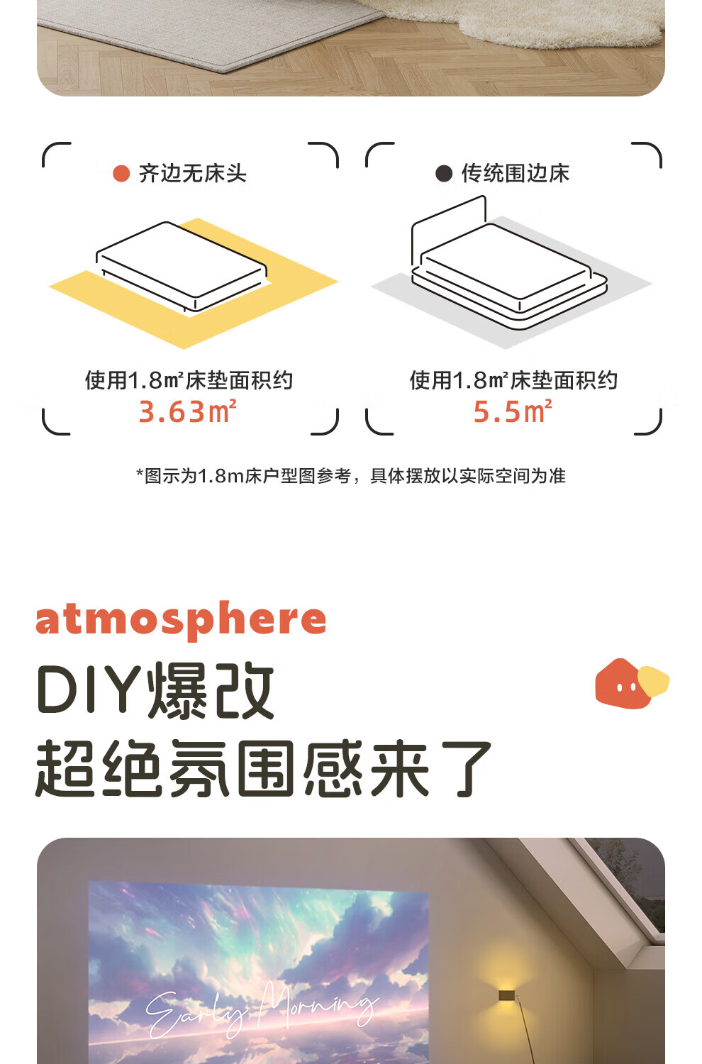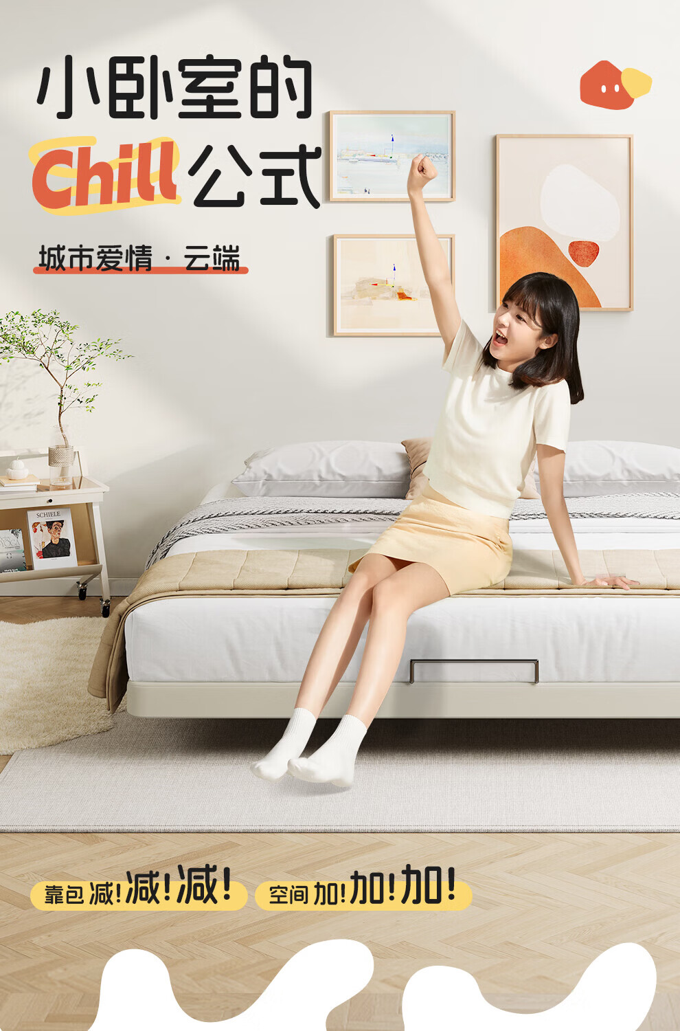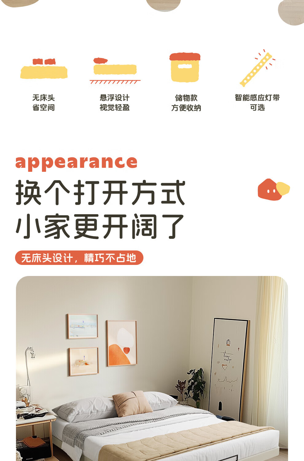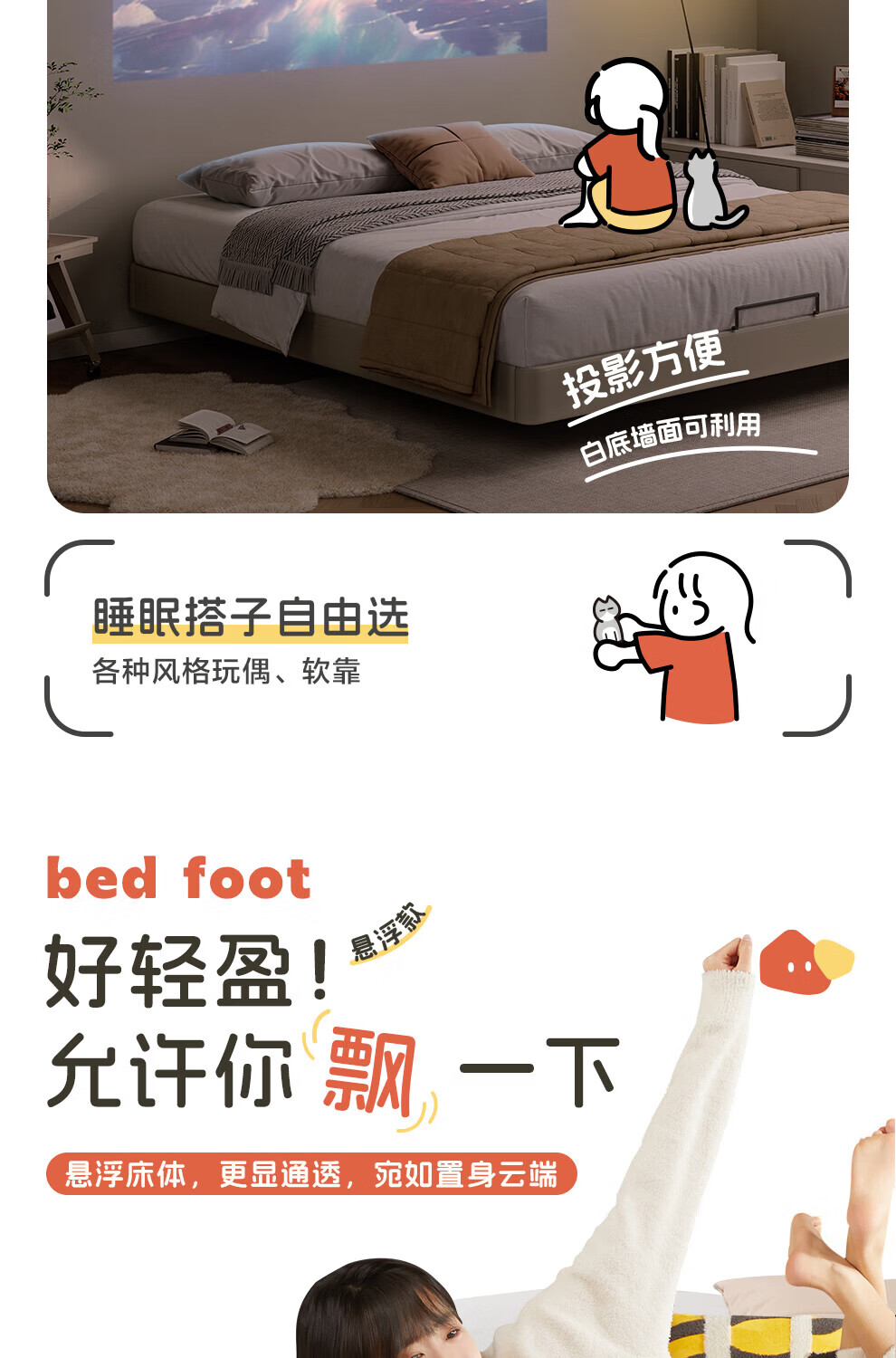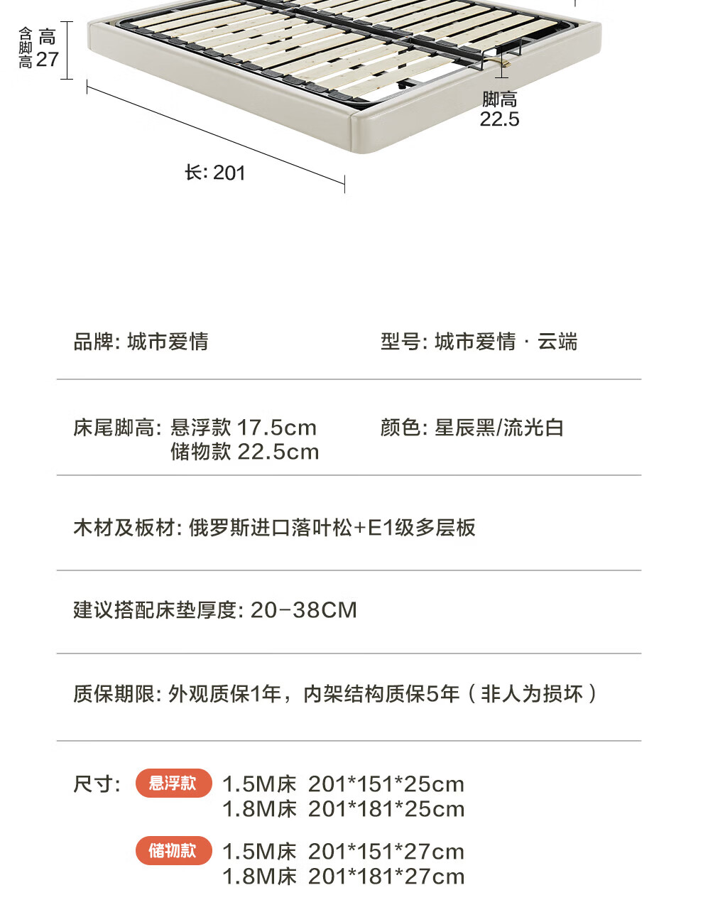 城市爱情喜临门云端无床头悬浮床床架 家具1.8米x2米双人床 流星白(悬浮款) 1.5*2.0m