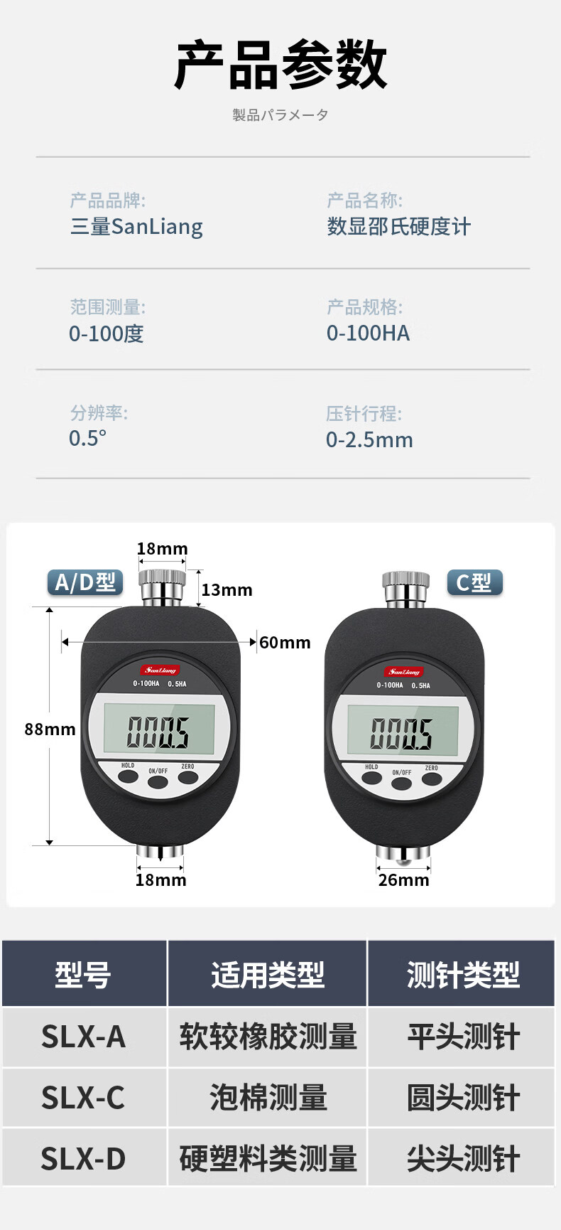 三量(sanliang)正品三量数显硬度计邵氏硬度测试仪硅胶橡胶硬度计lx-a手持便携式 新款SLX-A(数显较软橡胶测量) 无规格