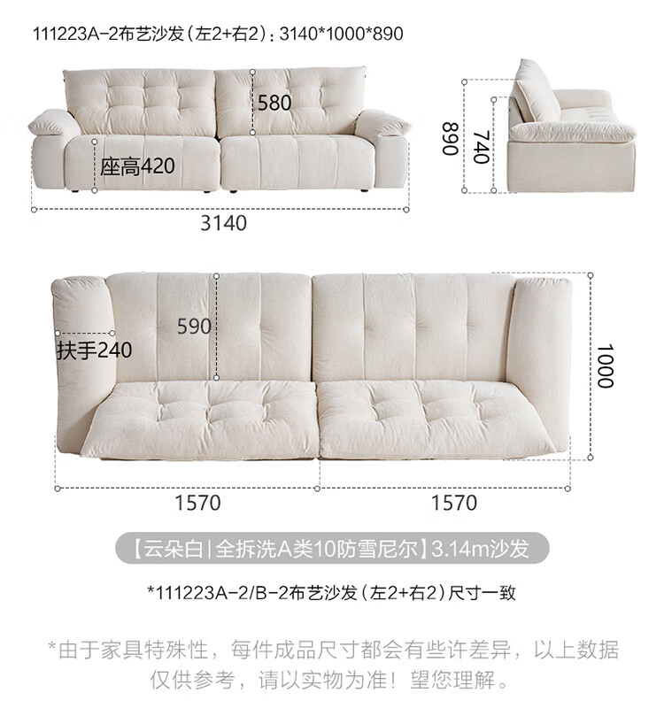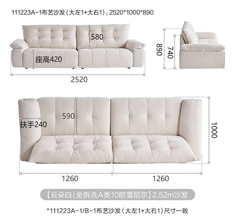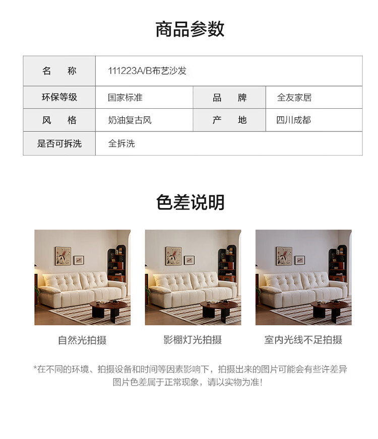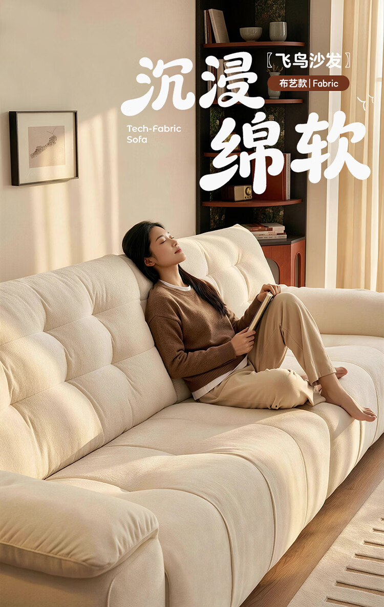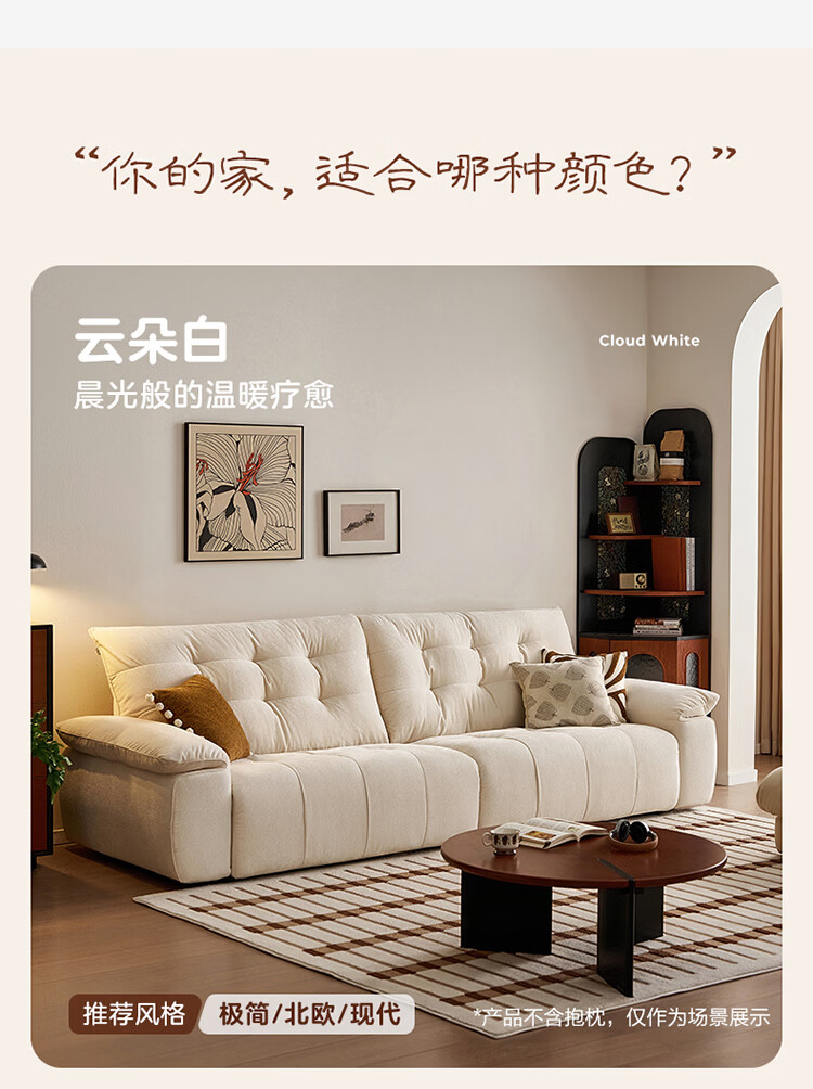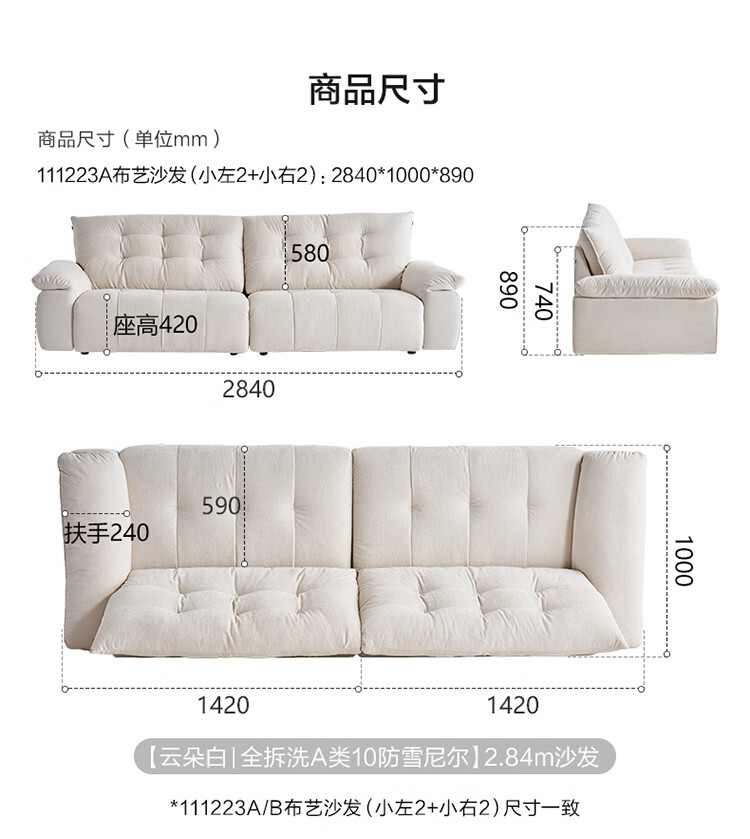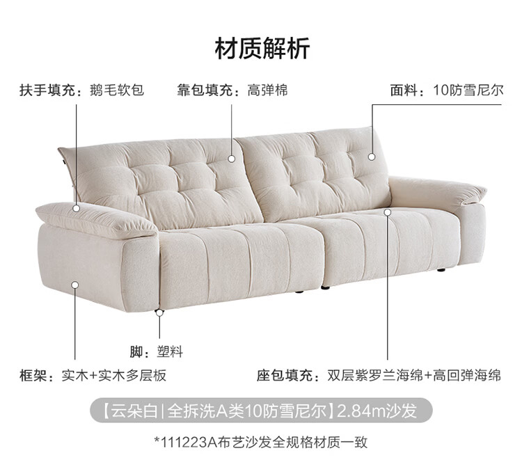 全友家居飞鸟沙发雪尼尔布艺沙发客厅2026新款可拆洗小户型直排沙发 【全拆洗A类10防雪尼尔 | 云朵白】2.84米沙发-预约
