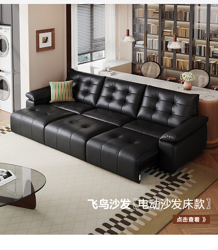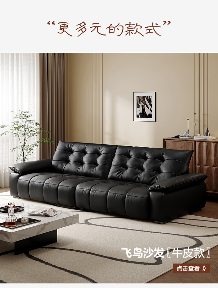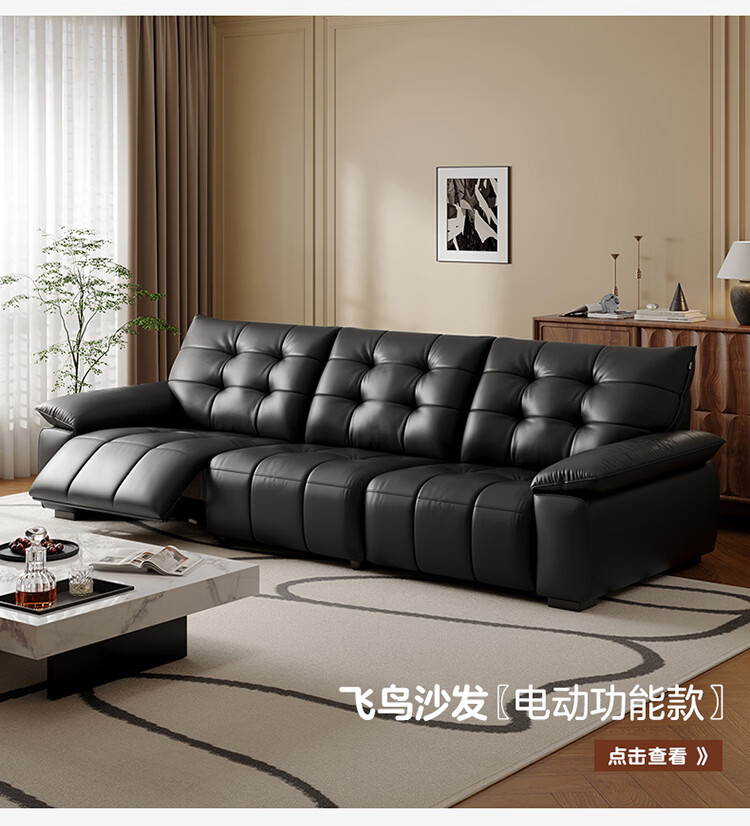 顾家家居(KUKA)轻奢风天鹅沙发客厅1385 【舒适版】坚韧耐磨皮骑士黑 多人位2.8m