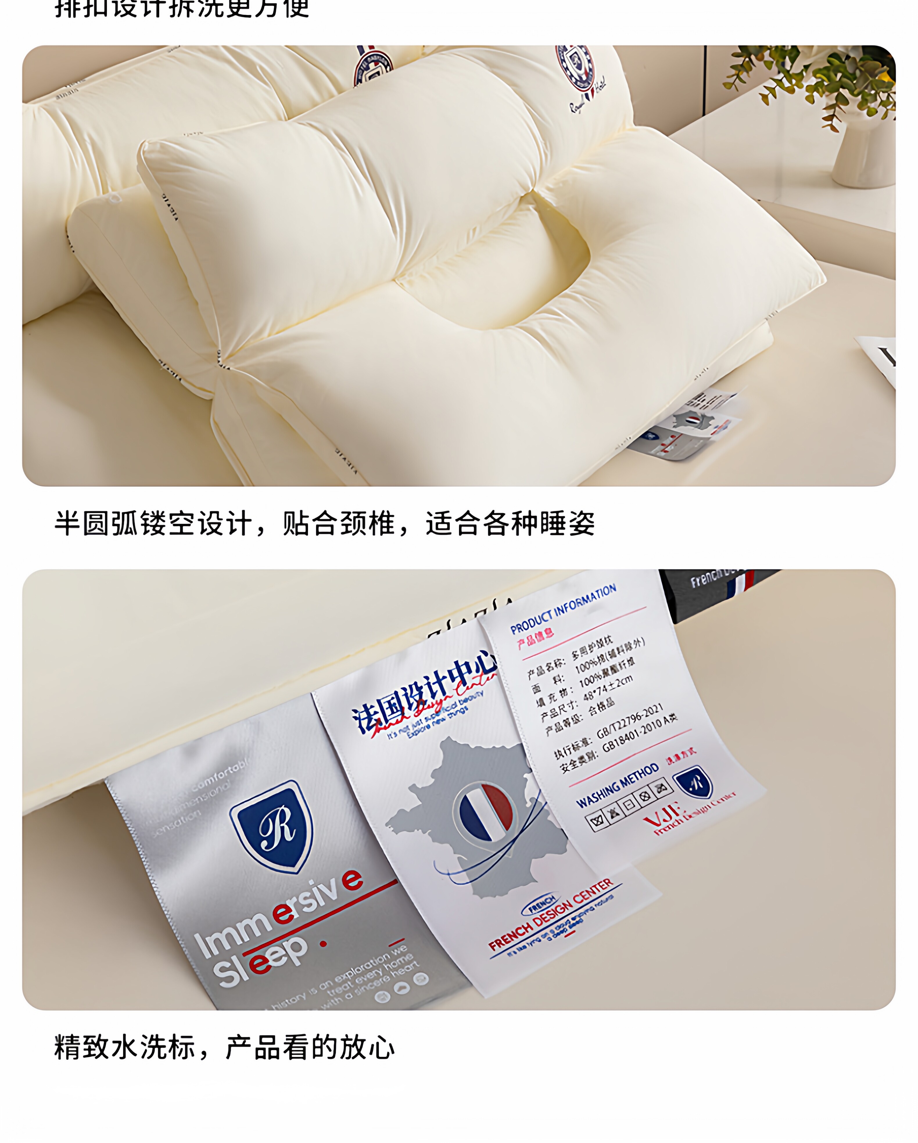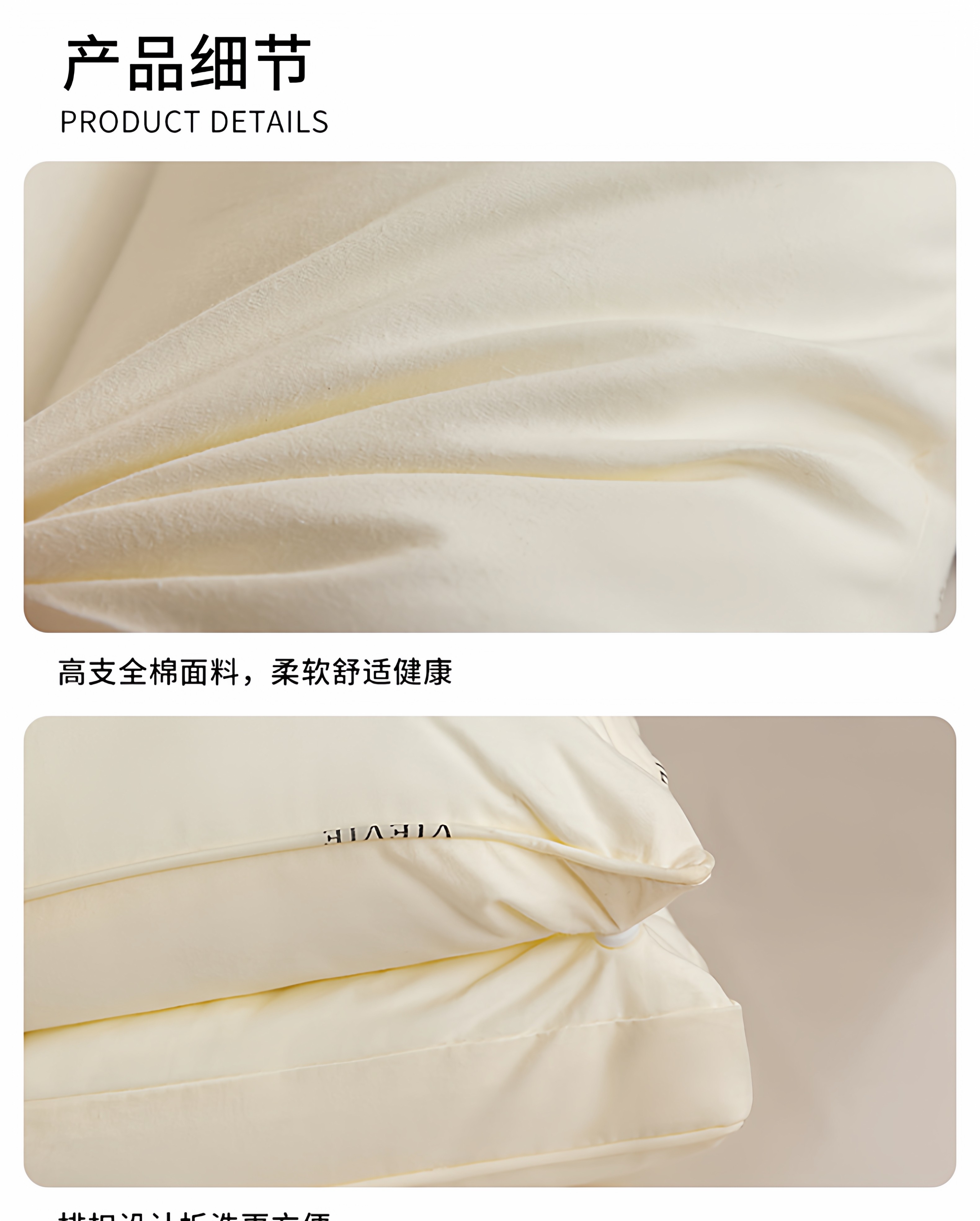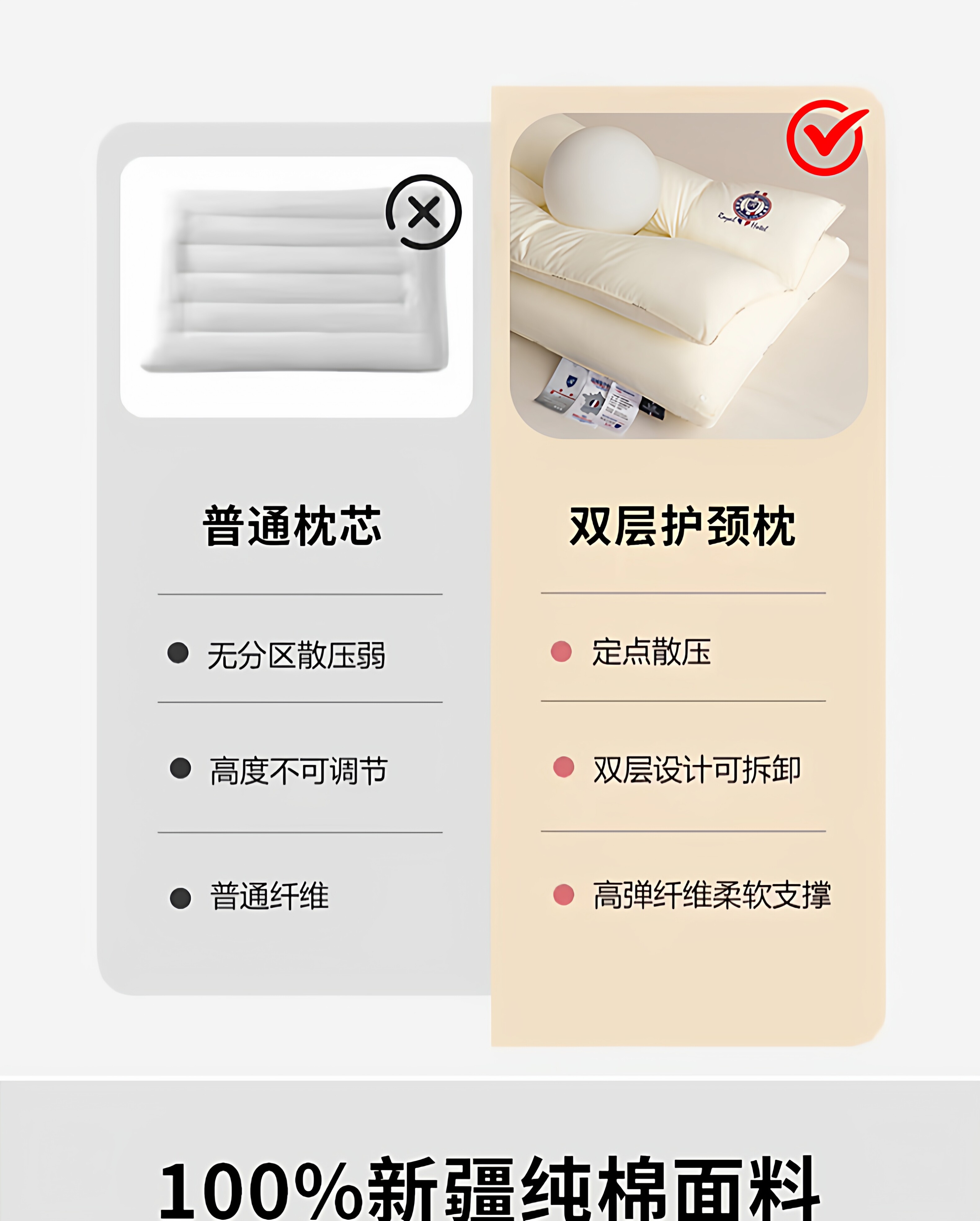 VJE护颈枕全棉颈椎枕pro纯棉枕芯双层拆卸枕头睡眠枕单人家用一对 米白色(第二代护颈枕pro) 单只装 48cm*74cm【母婴级护颈助眠】