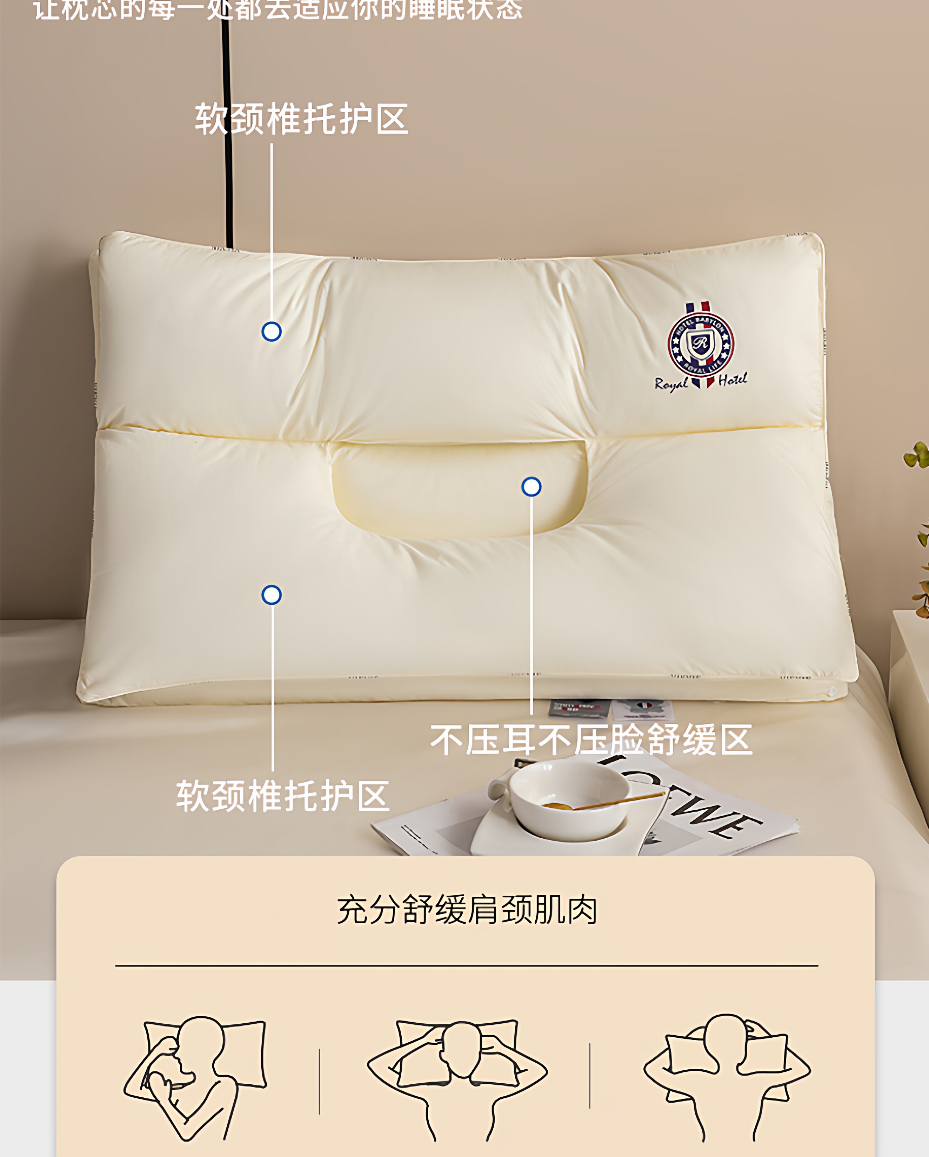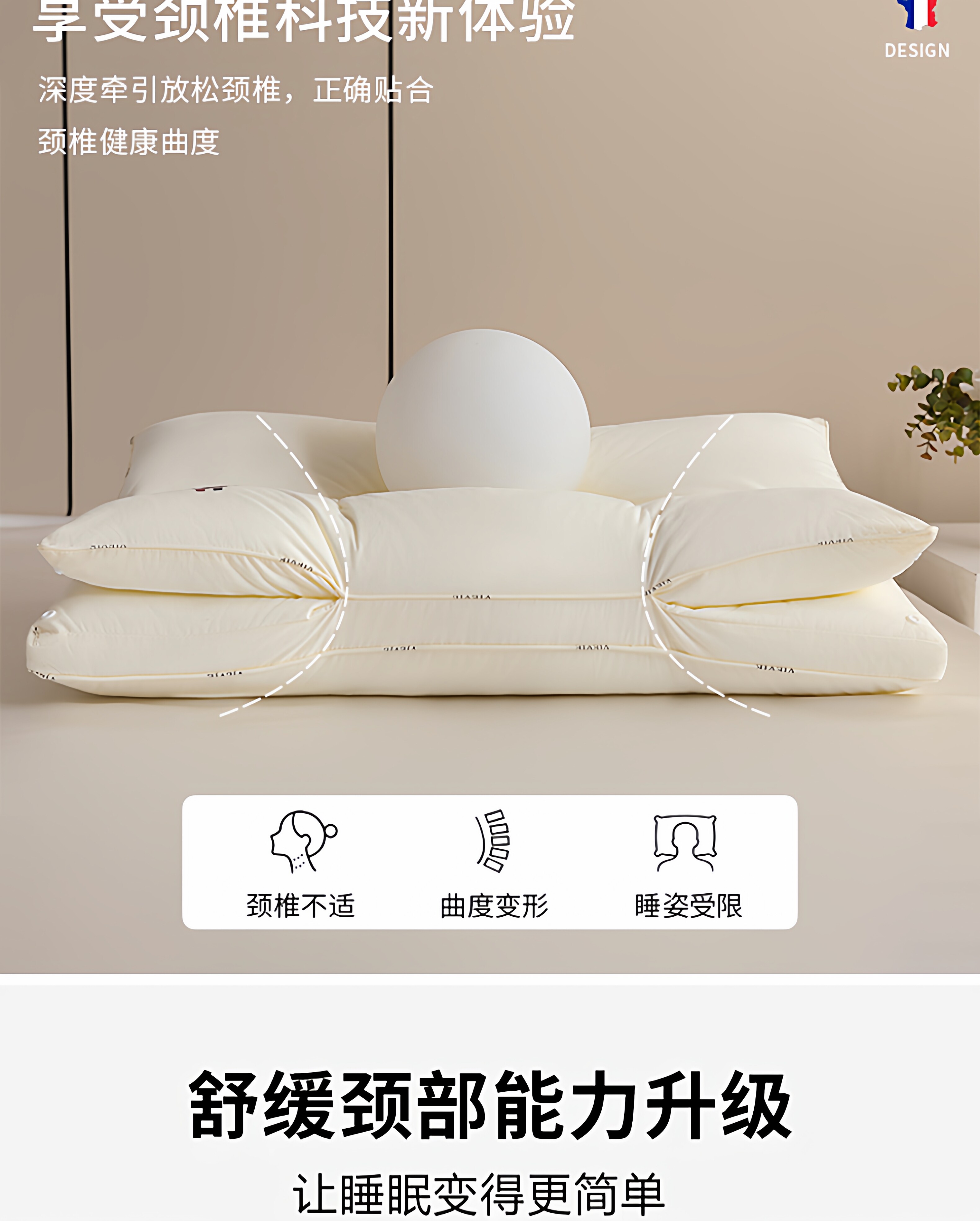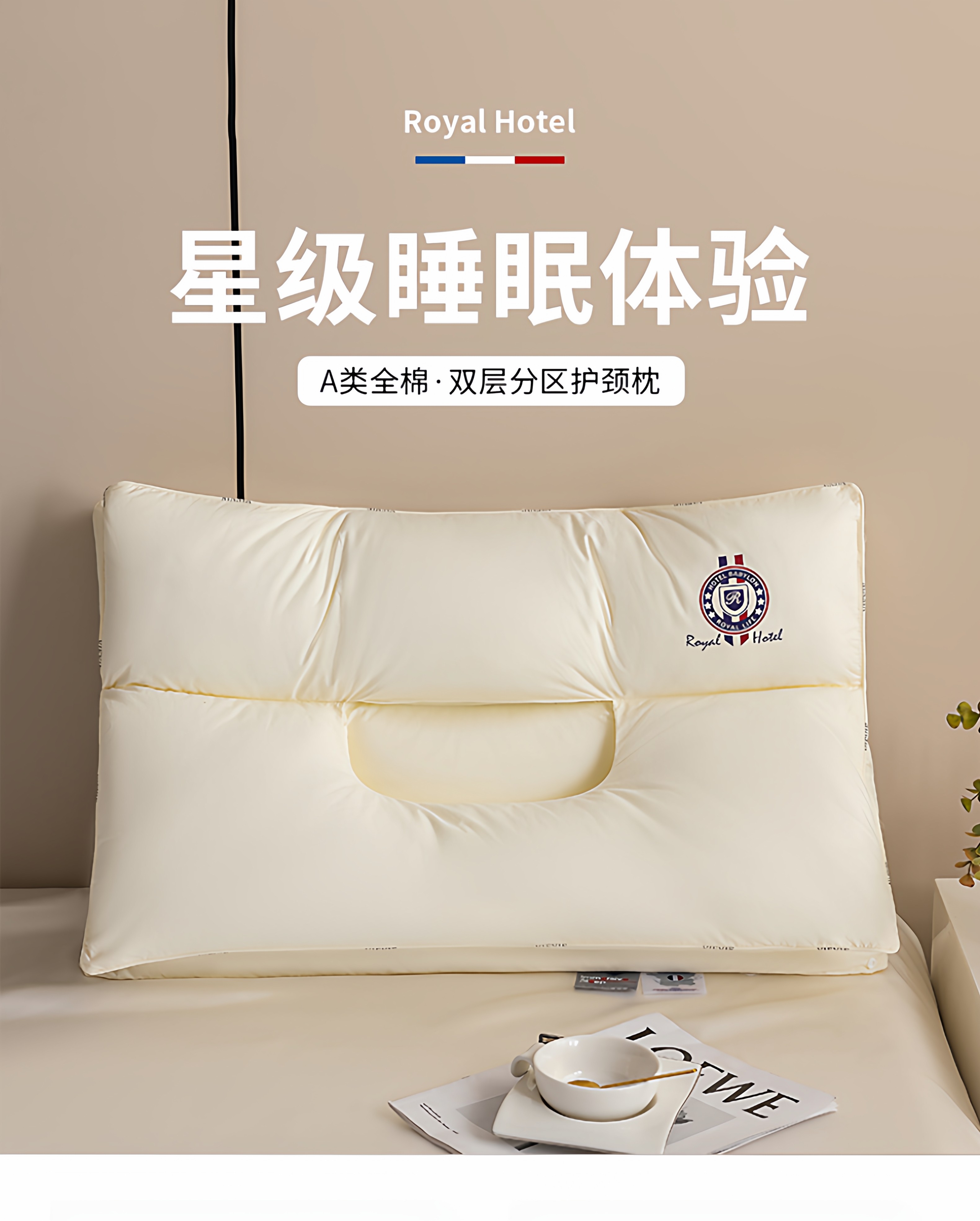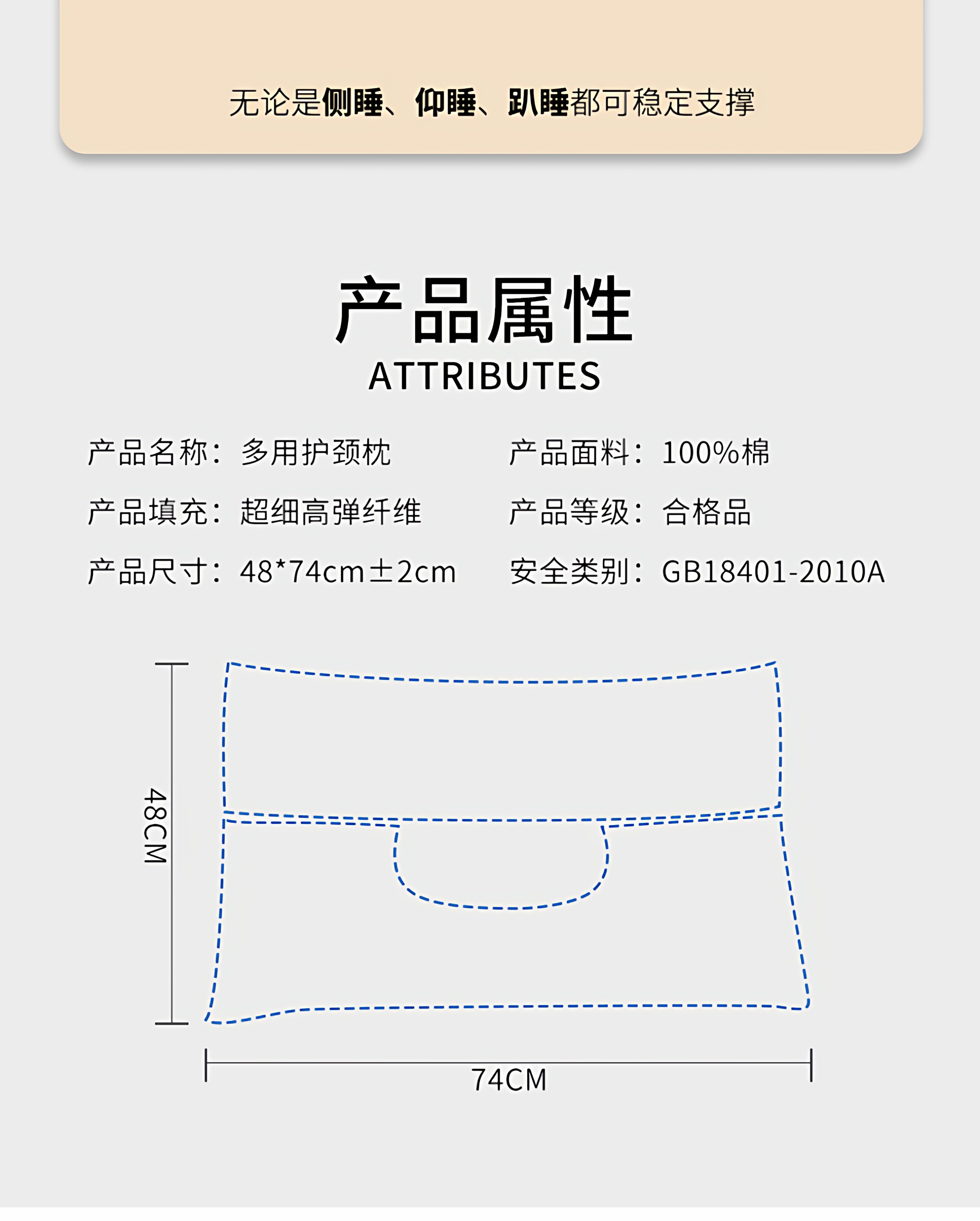 VJE护颈枕全棉颈椎枕pro纯棉枕芯双层拆卸枕头睡眠枕单人家用一对 米白色(第二代护颈枕pro) 单只装 48cm*74cm【母婴级护颈助眠】