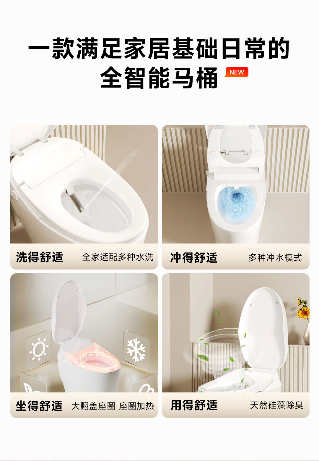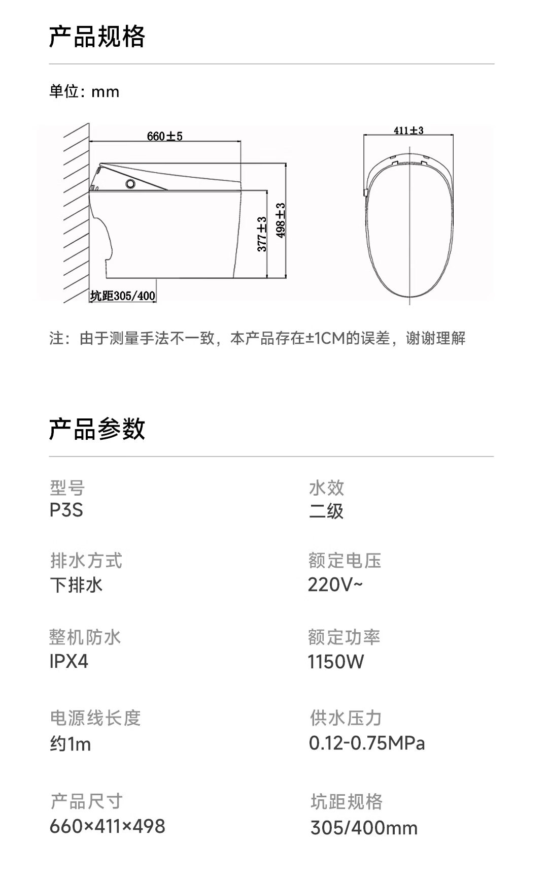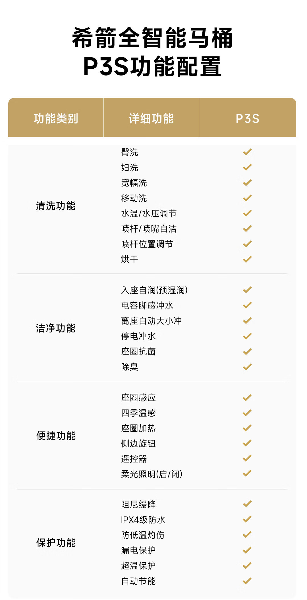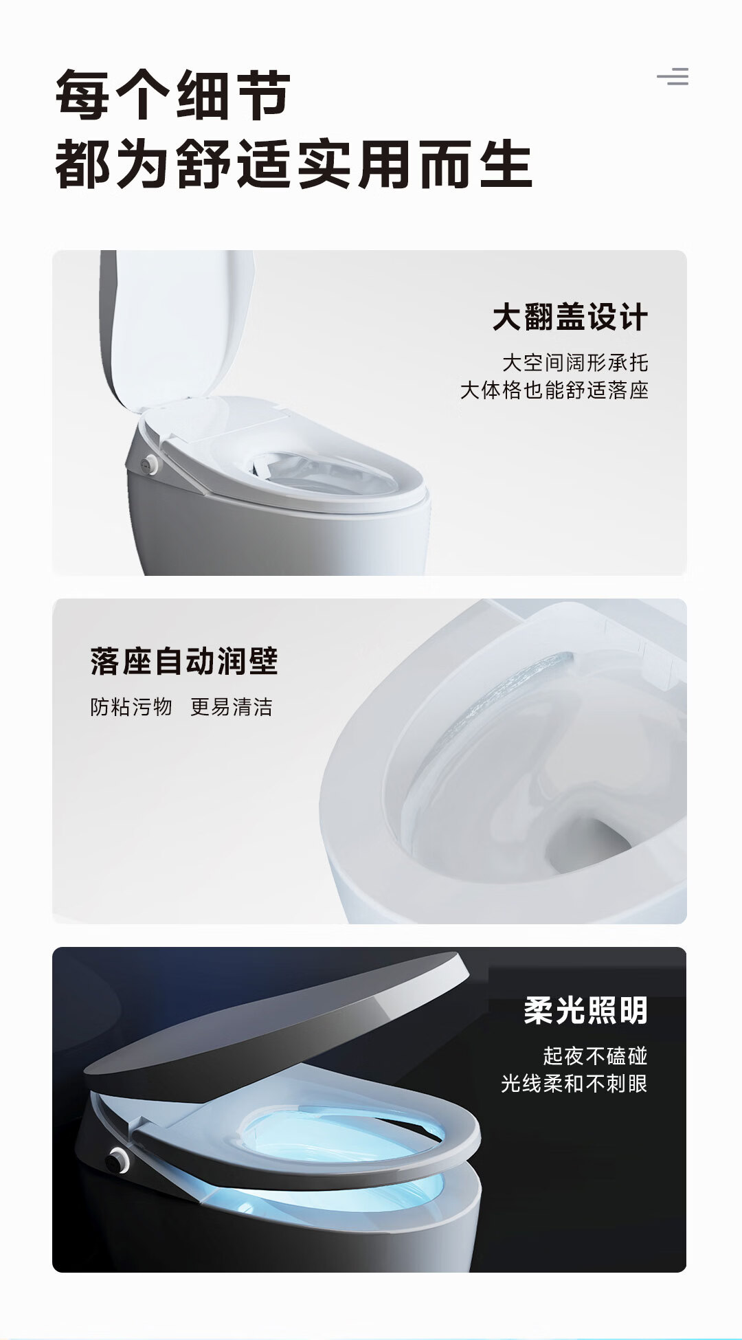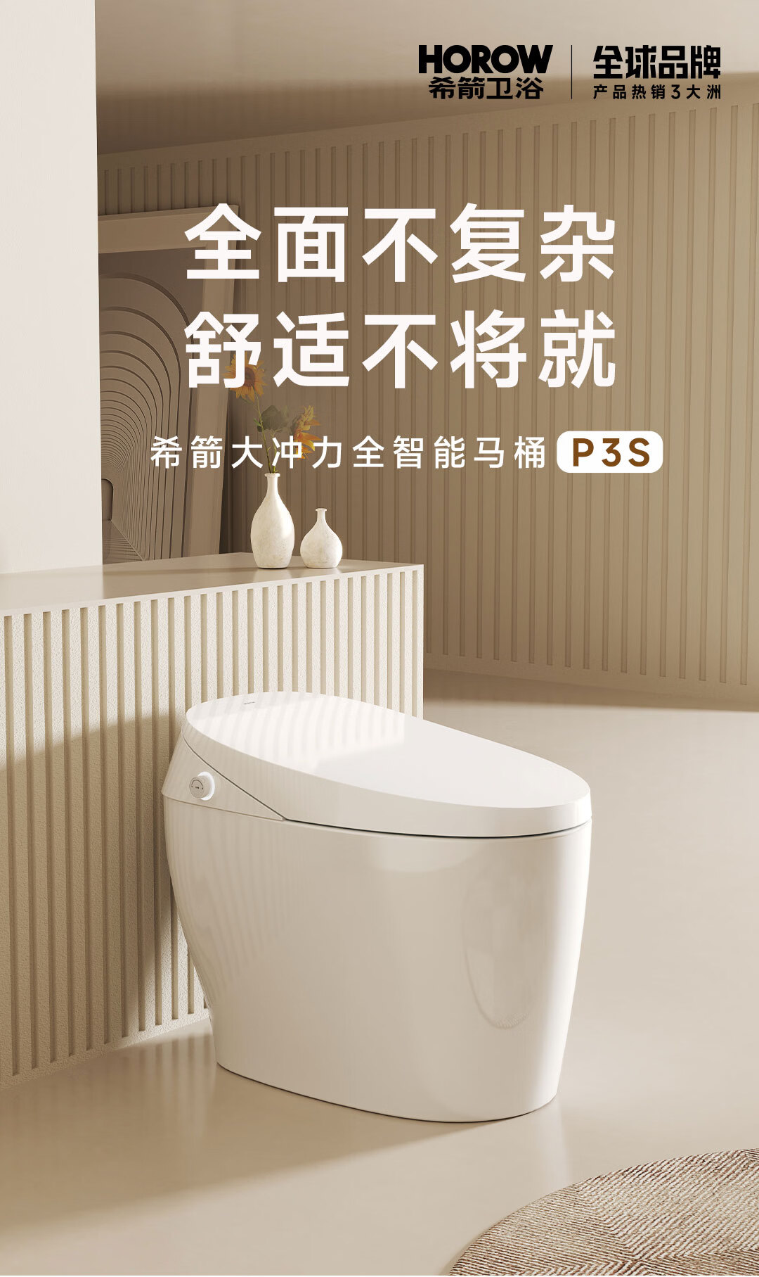希箭(HOROW)P3S大翻盖座圈加热基础款全智能坐便器O2O(不含安装) 基础款全智能P3S【无水箱、电容脚感冲水】 305/300mm