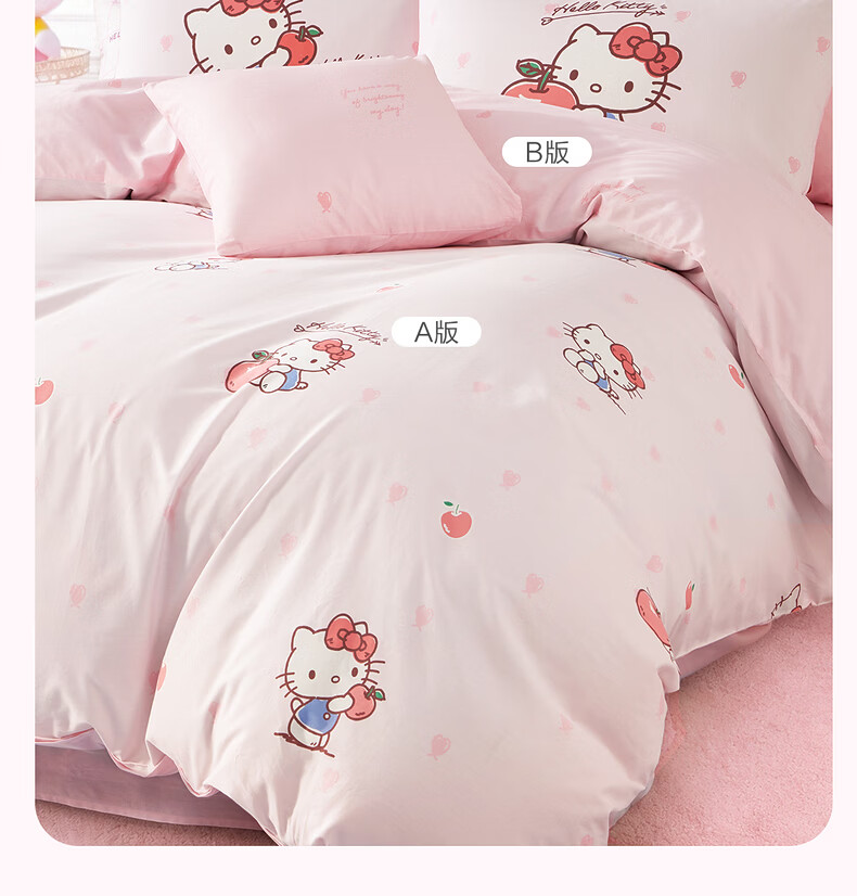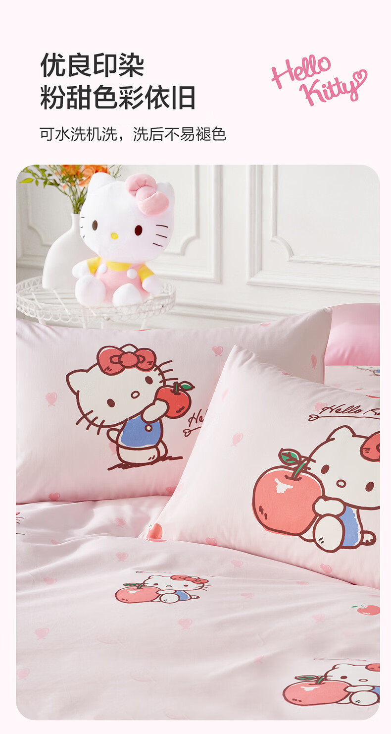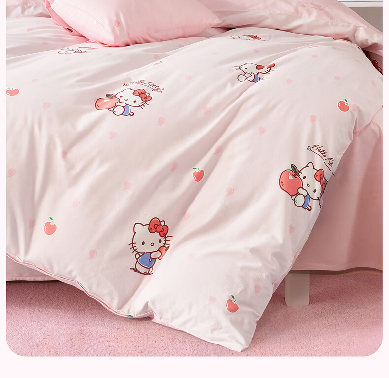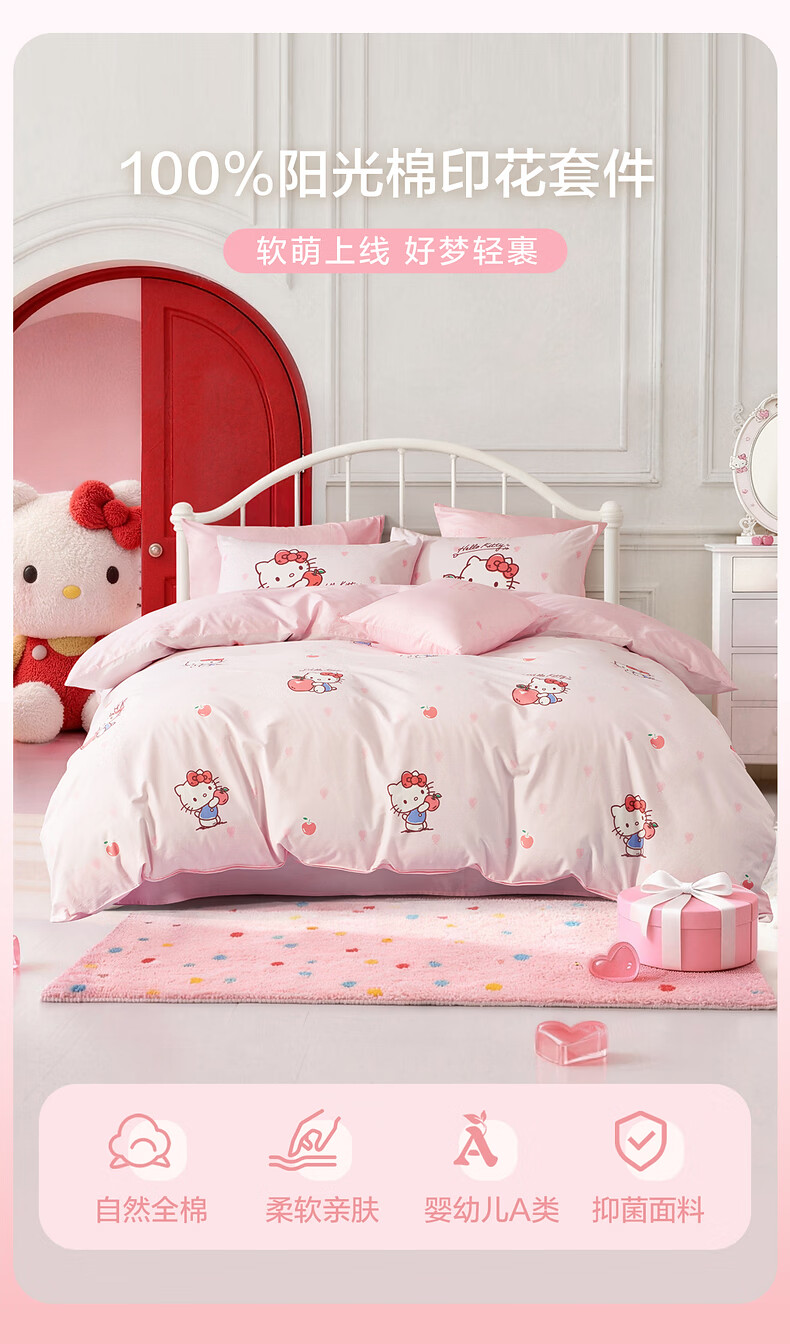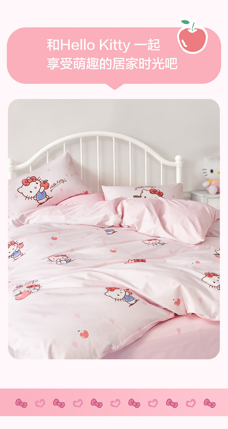 水星家纺四件套床上用品纯棉100%全棉婴幼儿A类儿童学生宿舍26年套件 果酱KT 120cm×200cm 床单款 (被套150*210cm)