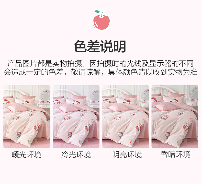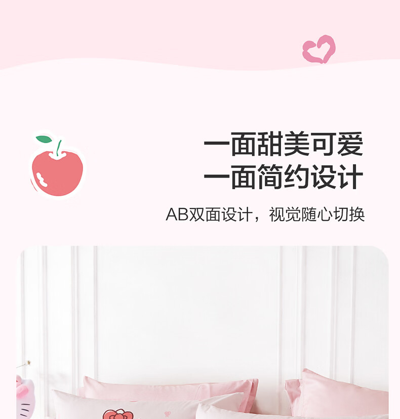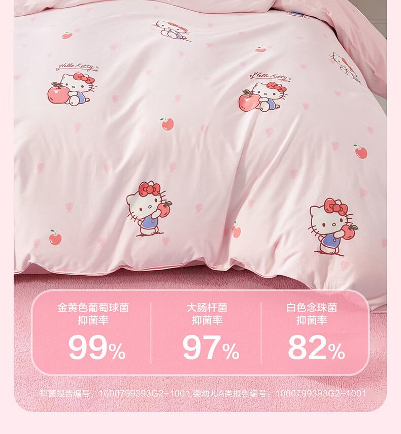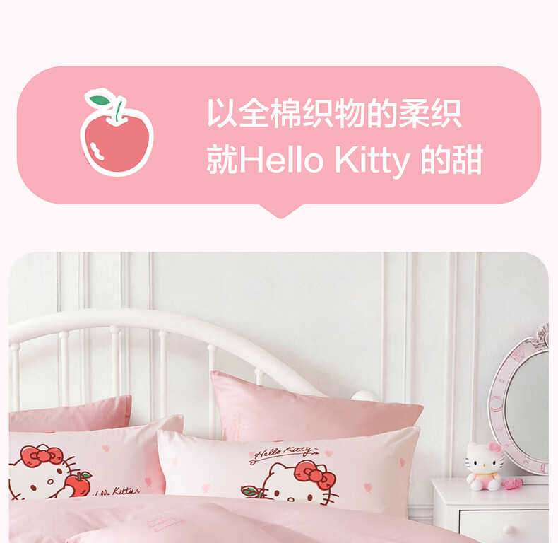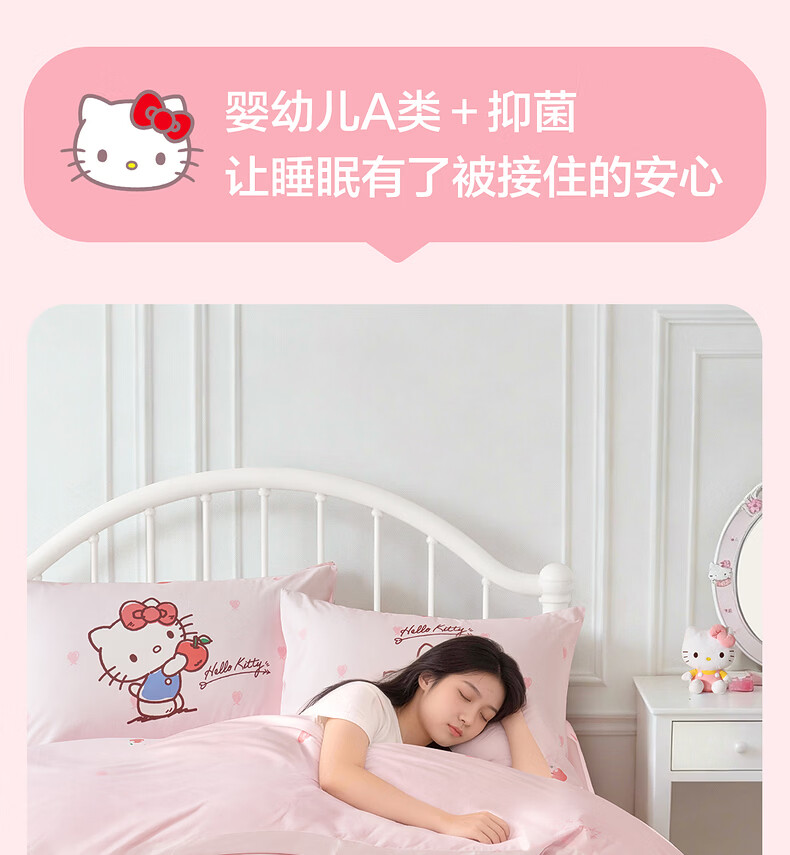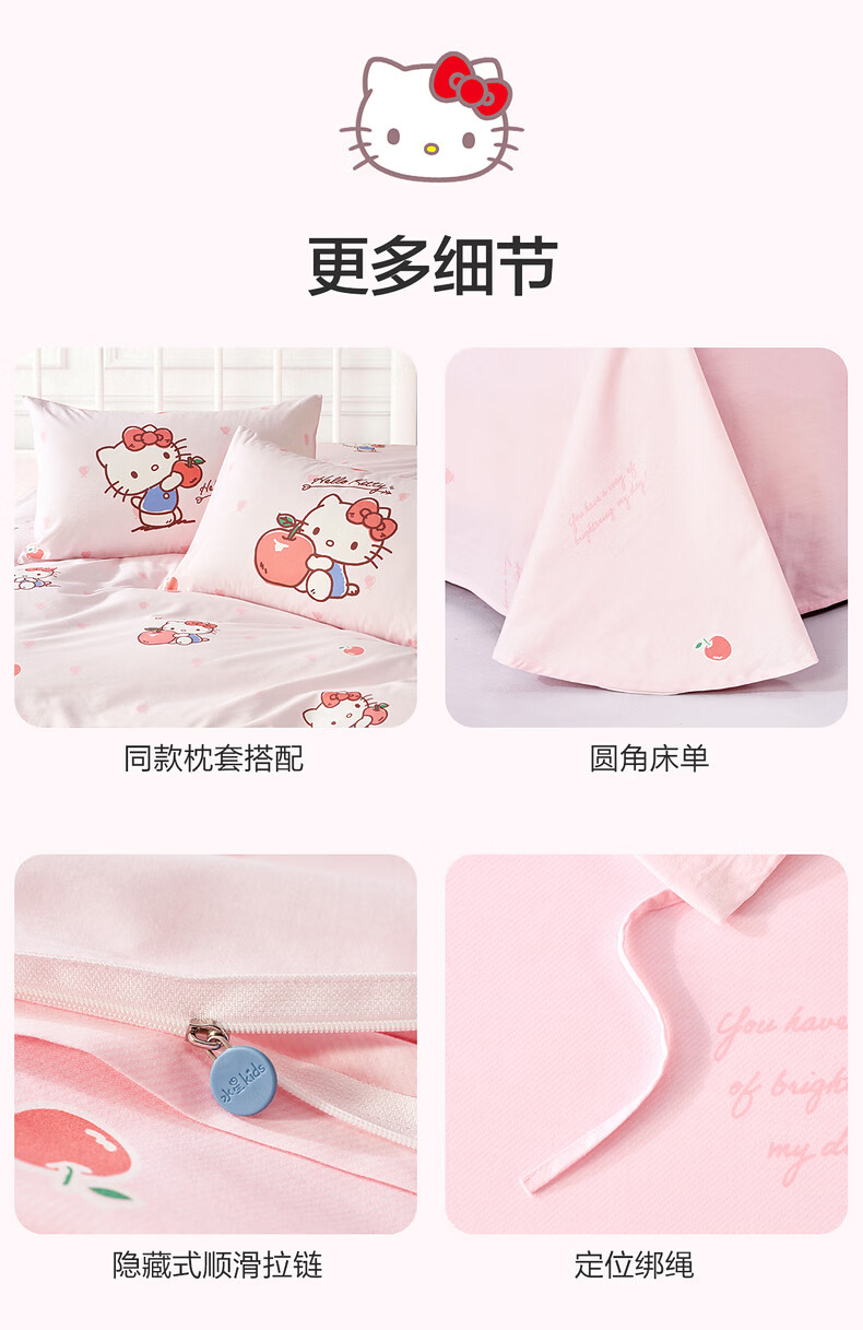 水星家纺四件套床上用品纯棉100%全棉婴幼儿A类儿童学生宿舍26年套件 果酱KT 120cm×200cm 床单款 (被套150*210cm)