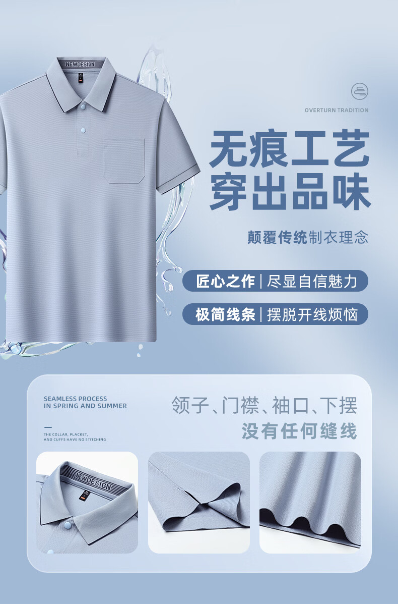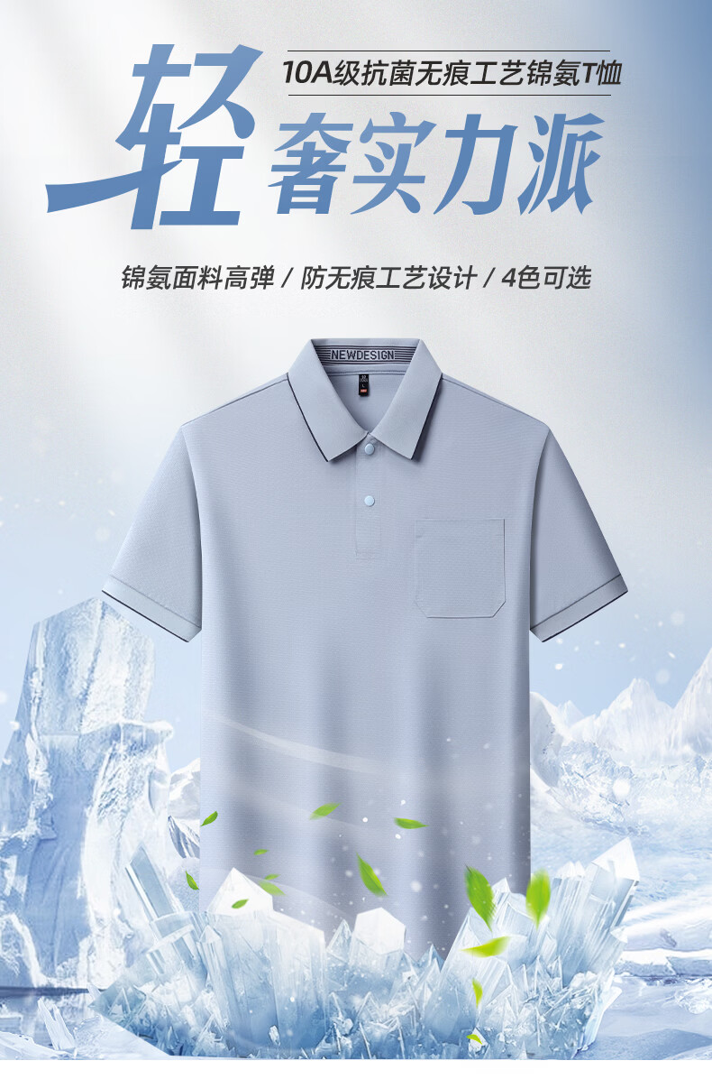 SHANSHAN杉杉【10A抗菌】男士短袖T恤男夏季新款休闲百搭时尚无痕polo衫男 灰绿色 4XL /195