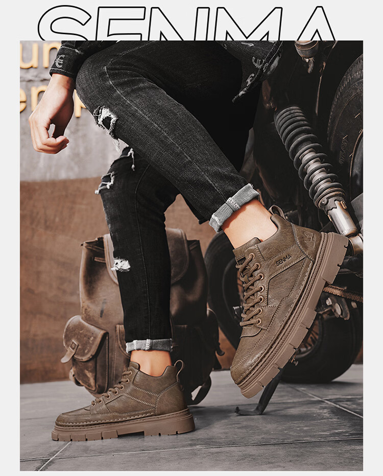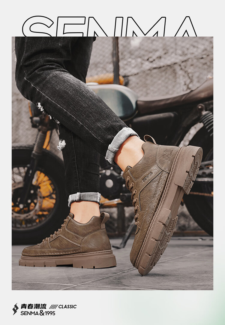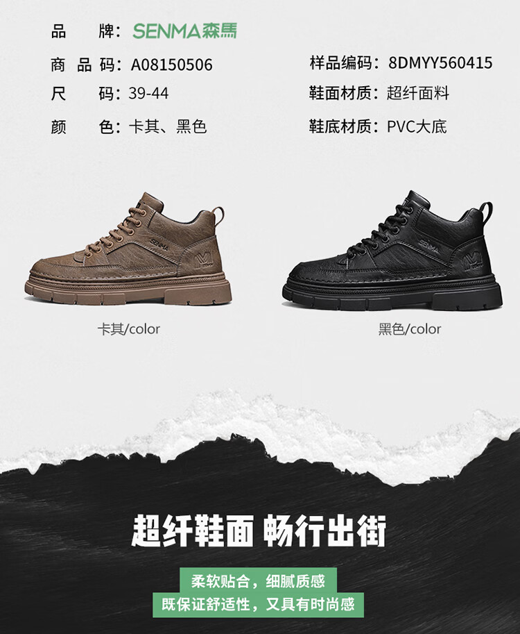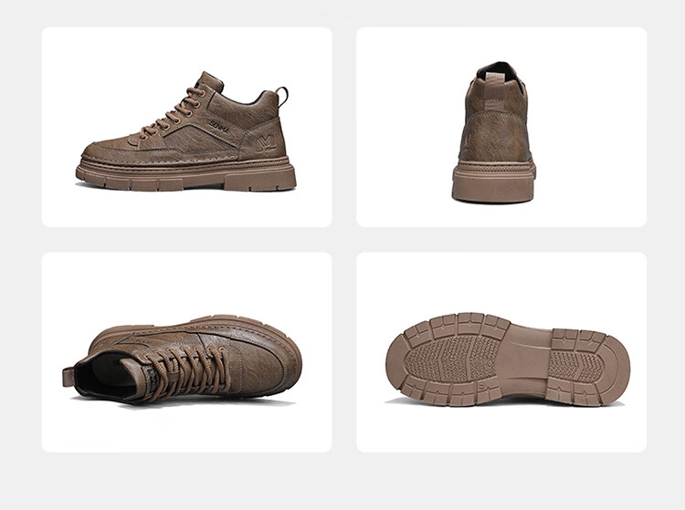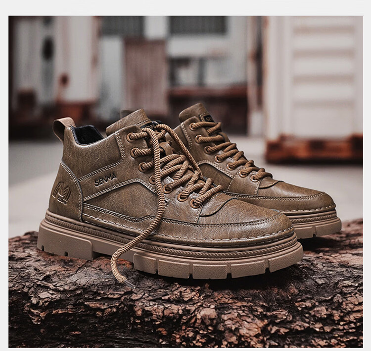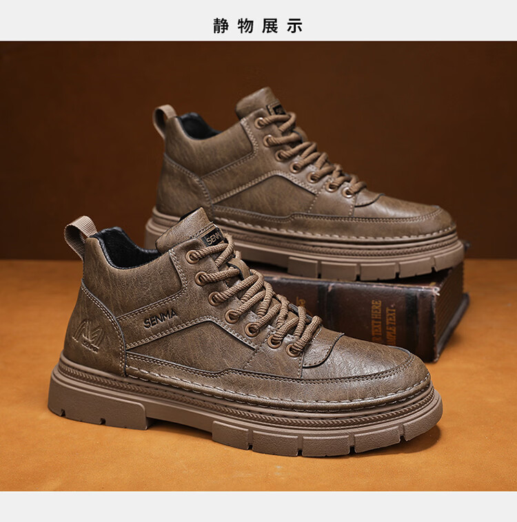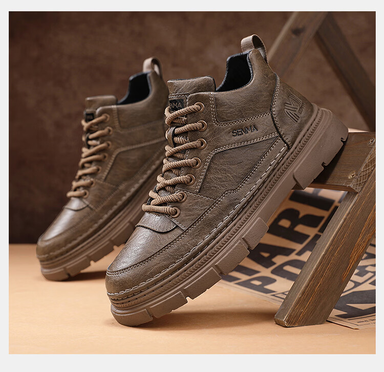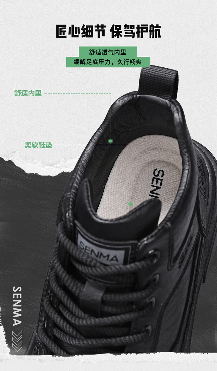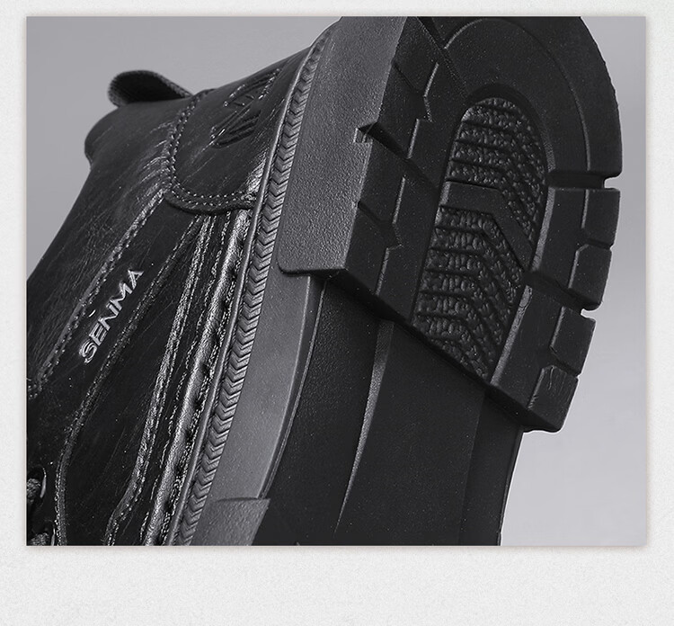 森馬男鞋2026春季高帮英伦风马丁靴男士防水软底真皮皮鞋增高工装潮鞋 黑色【基础款】 39 标准码数/现货秒发