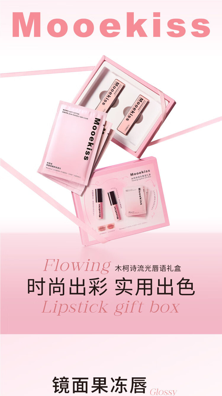 屈臣氏木柯诗流光唇语礼盒 1g*2+3片(#02+#03+卸妆湿巾)