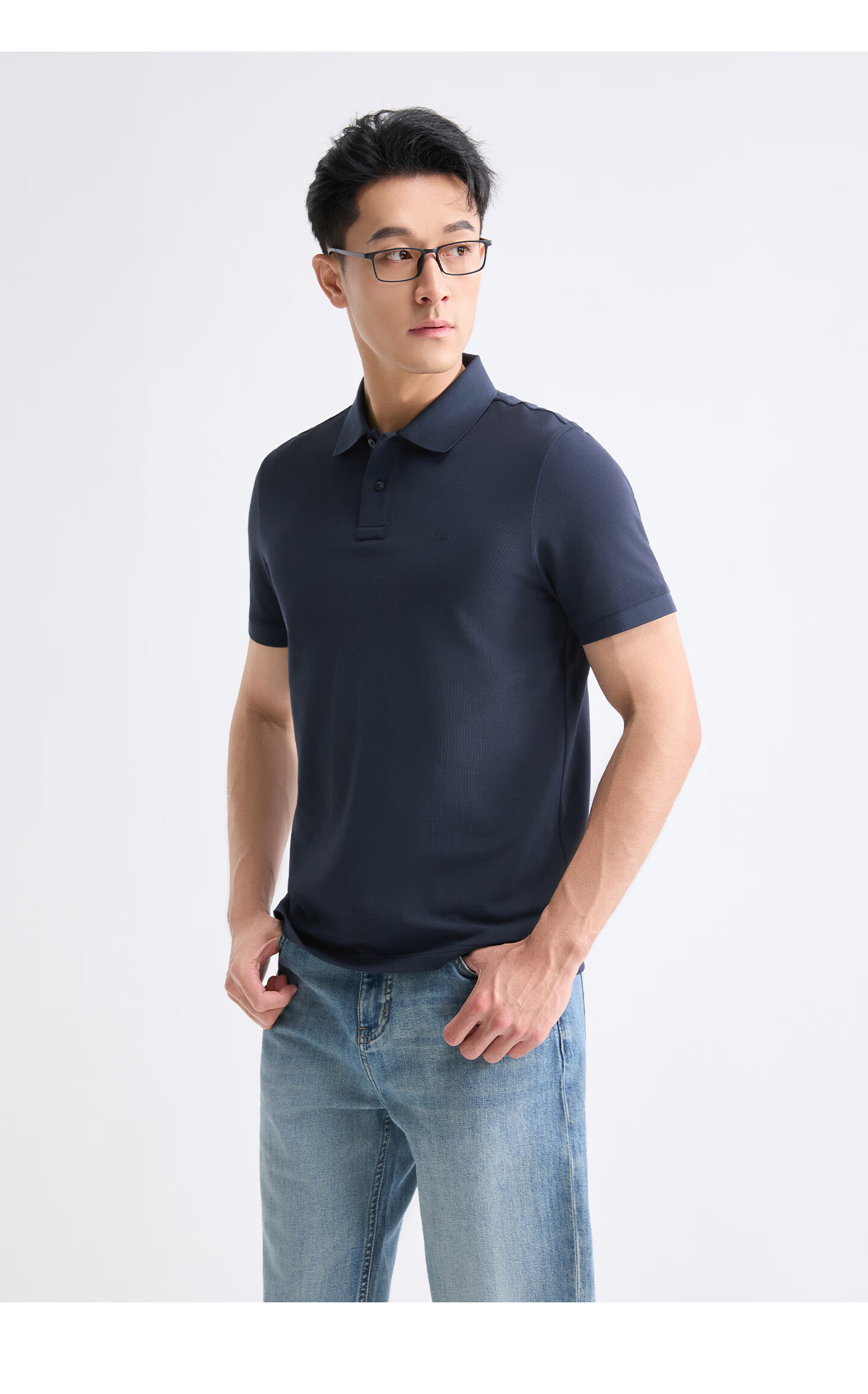 莱克斯顿polo衫男夏季翻领5A抗菌凉感透气珠地面料商务休闲短袖上衣男 宝蓝色 S