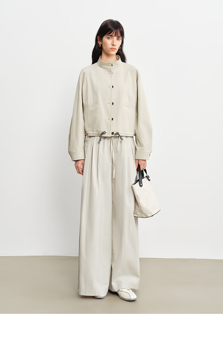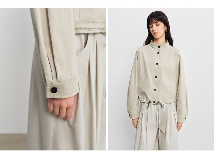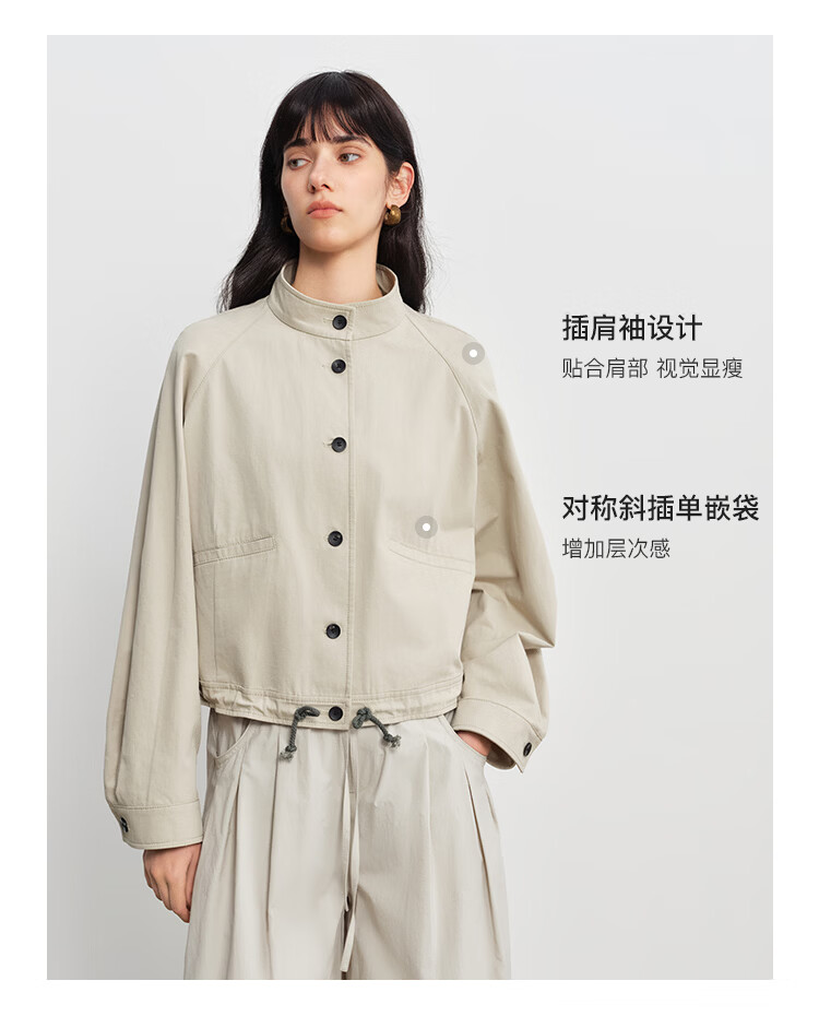 自巧小个子短款工装风插肩袖立领风衣夹克女2026春新品高级感外套 斑鸠灰 M (尺码:4)
