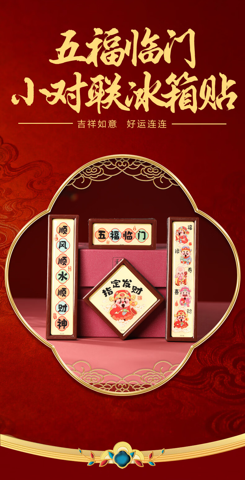 慈元阁五福临门小对联冰箱贴创意喜庆春节冰箱装饰好物文创伴手礼礼物 五福临门小对联冰箱贴