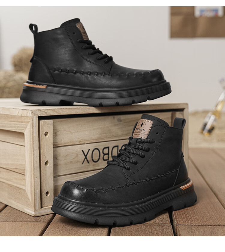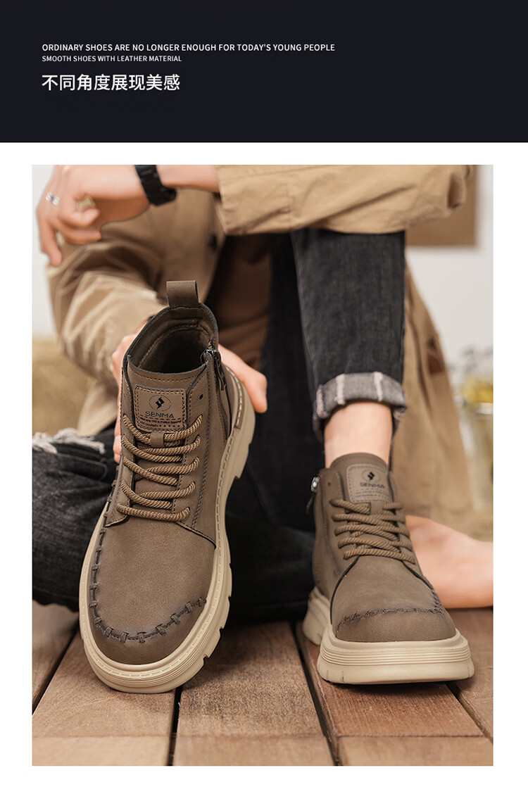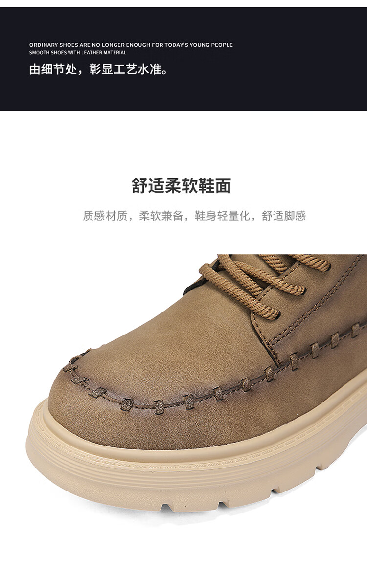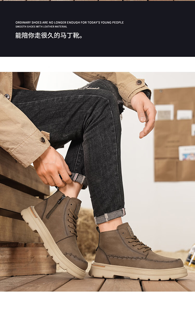 森馬马丁靴男2026新款春季高帮厚底真皮复古工装靴男士英伦风棕色皮靴 棕色【基础款】 39 标准码数/现货秒发