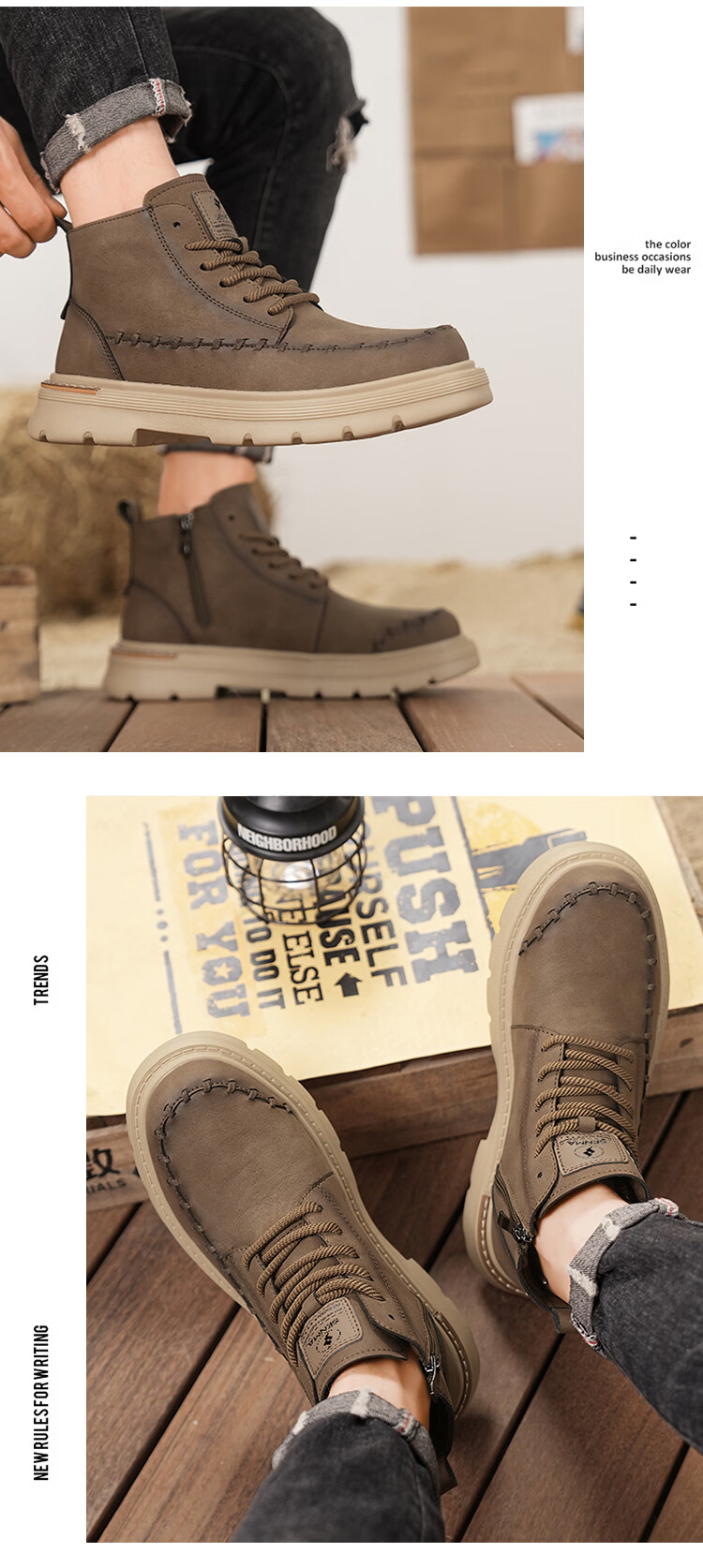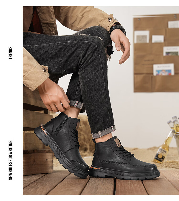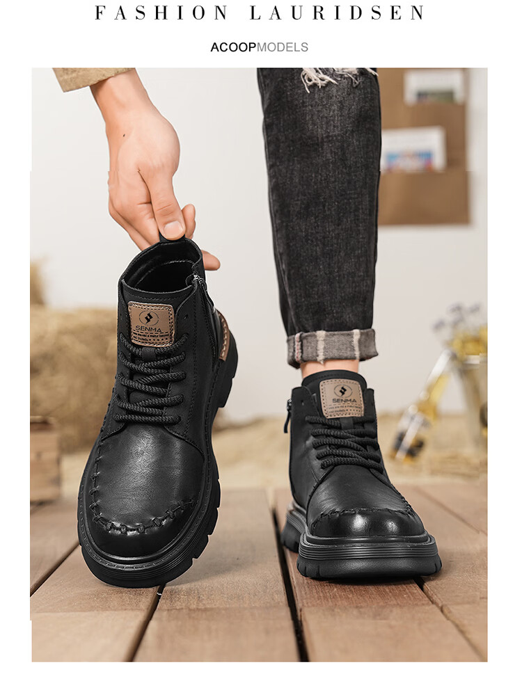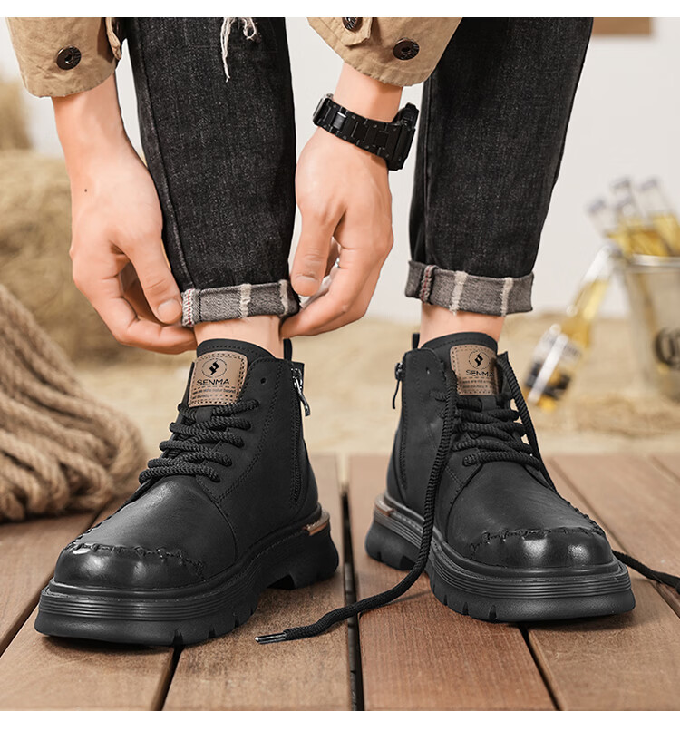 森馬马丁靴男2026新款春季高帮厚底真皮复古工装靴男士英伦风棕色皮靴 棕色【基础款】 39 标准码数/现货秒发