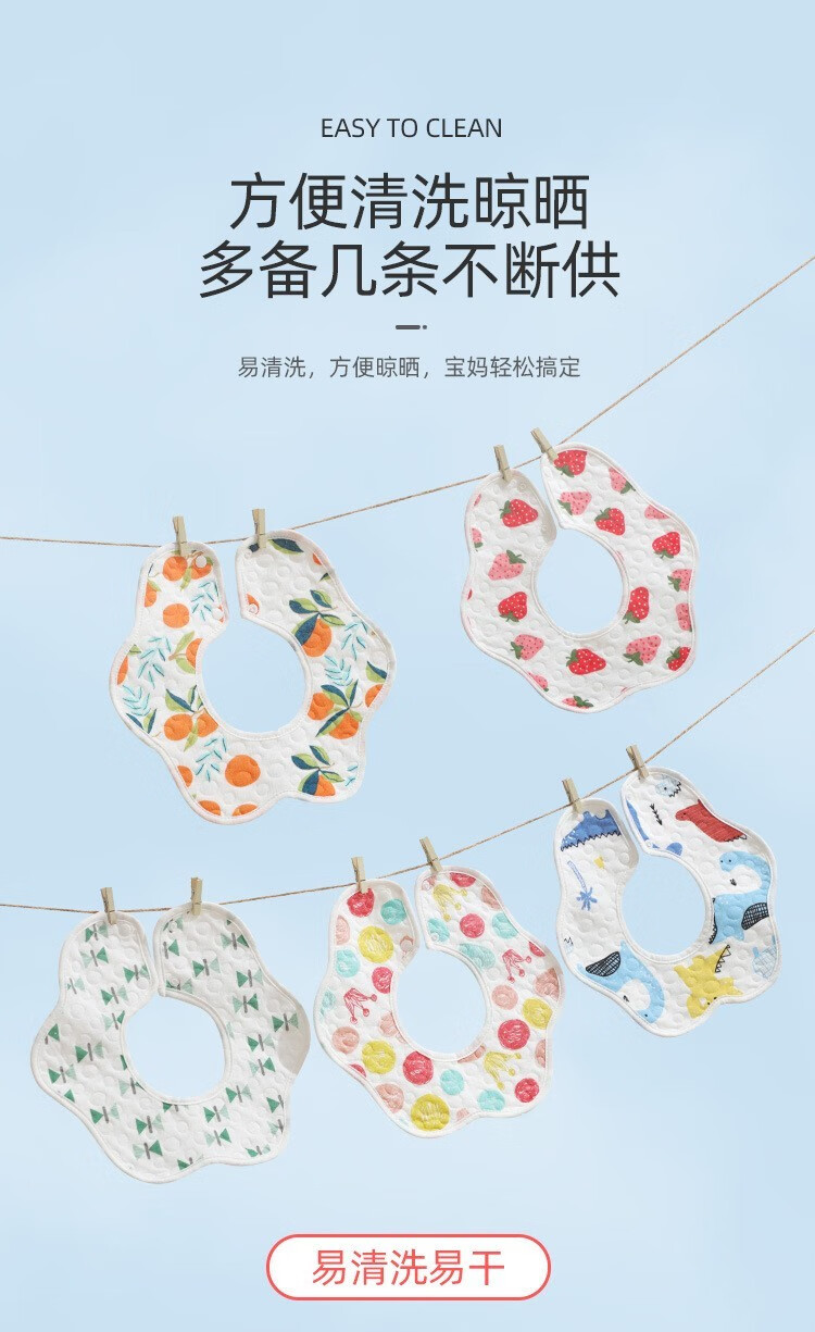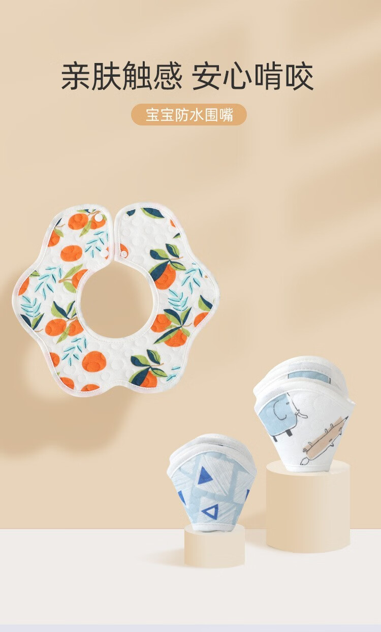 boxbaby婴儿口水巾纯棉印花围嘴宝宝360°旋转饭兜新生儿防水围兜5条装 男孩5条装(防水)