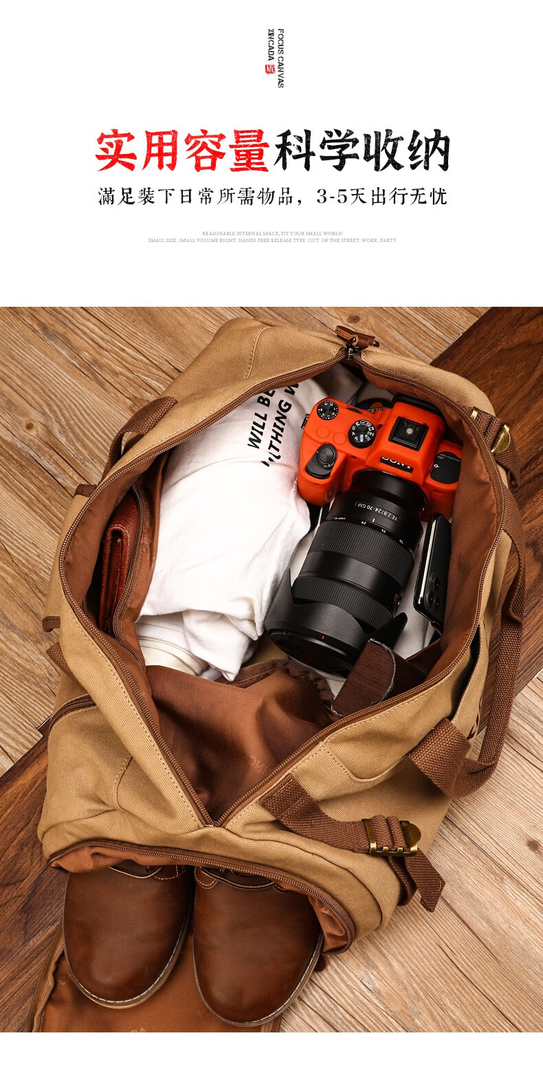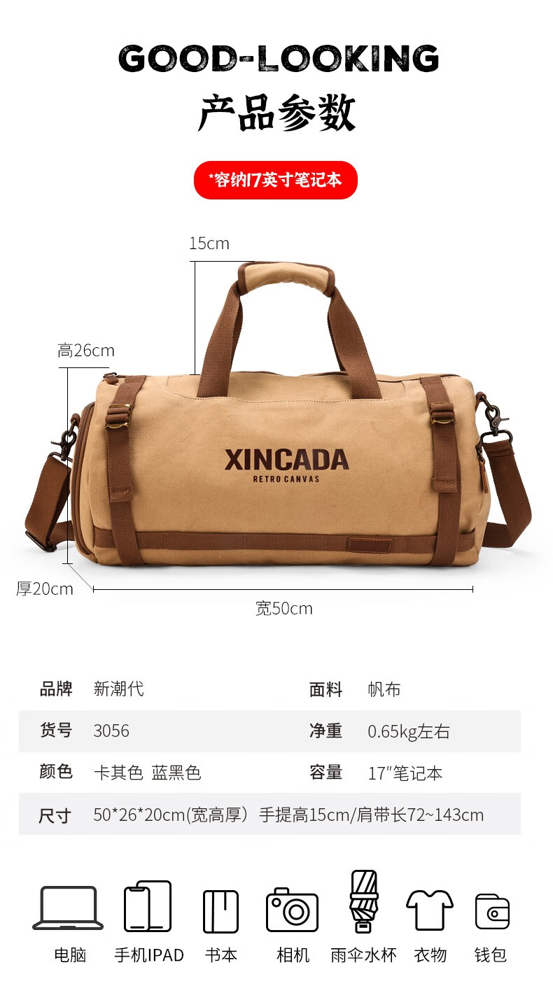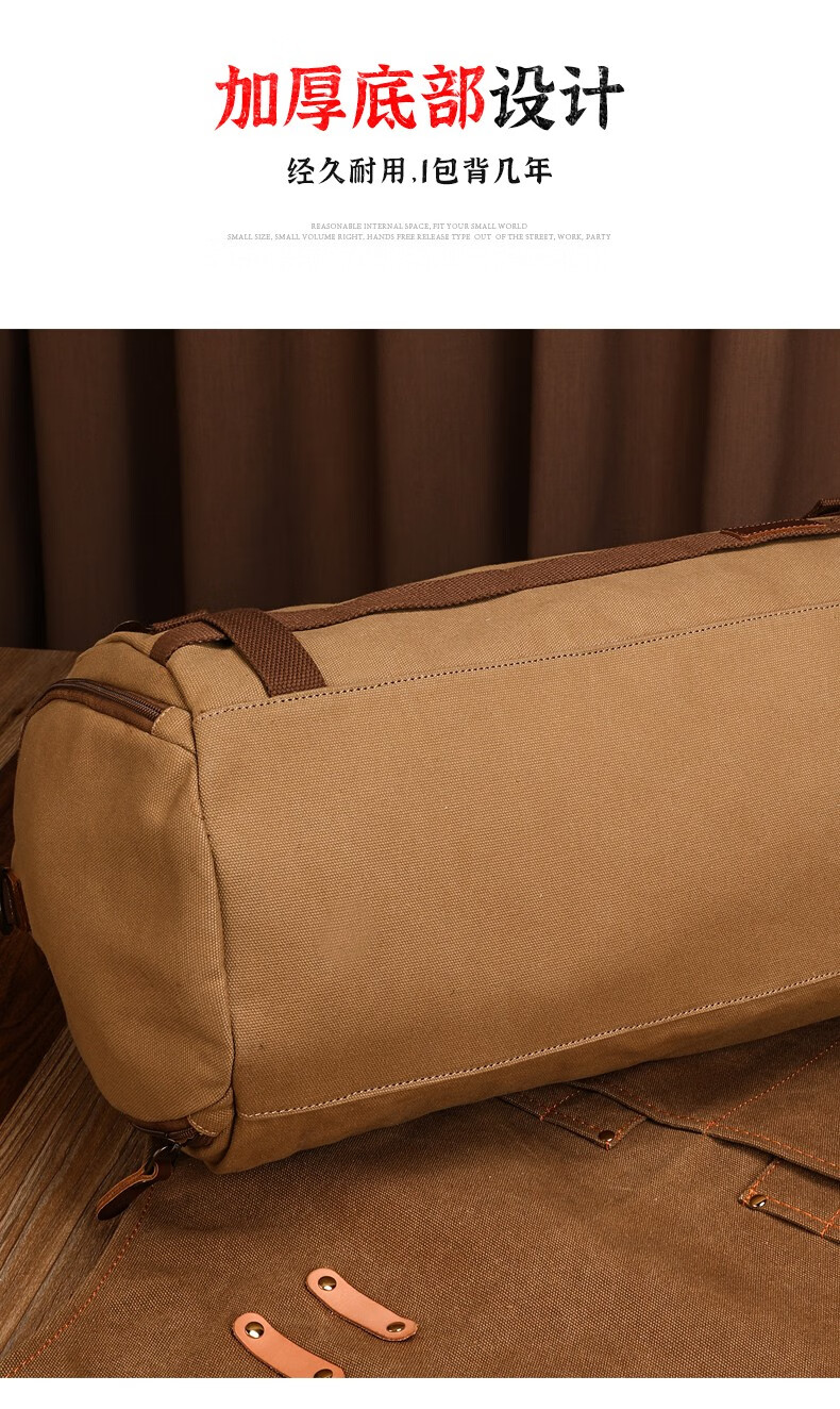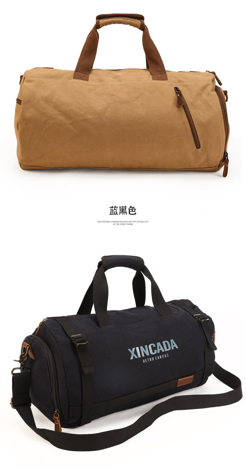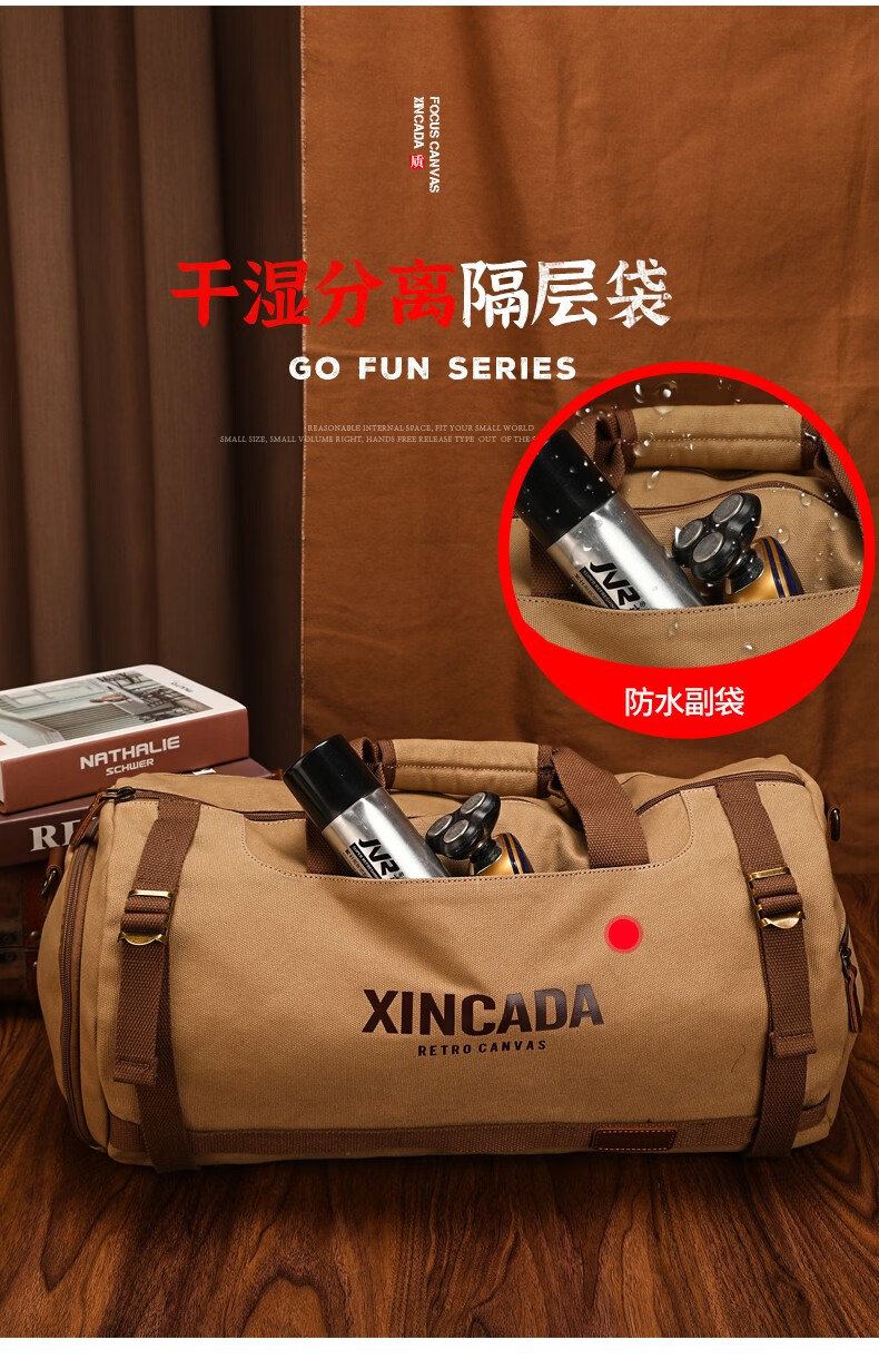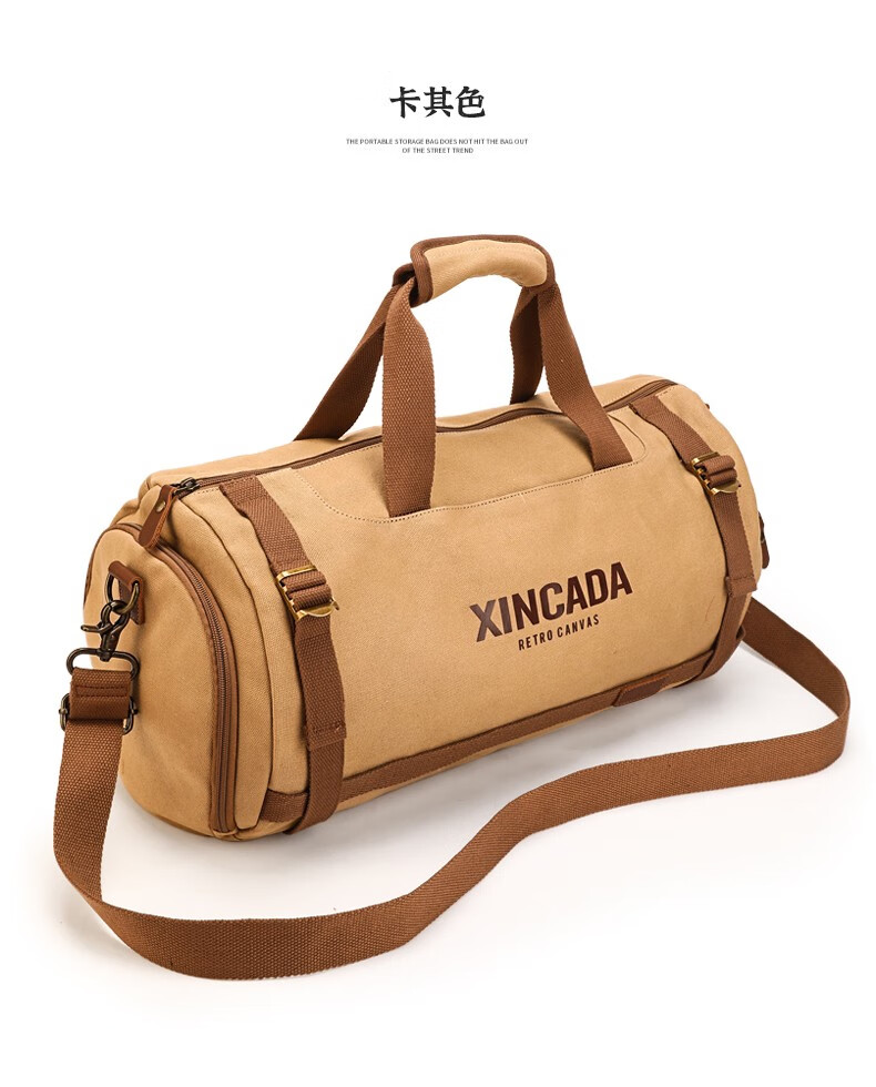 新潮代旅行包男大容量商务手提单肩行李包干湿分离出差户外运动包 卡其色【干湿分离袋设计】
