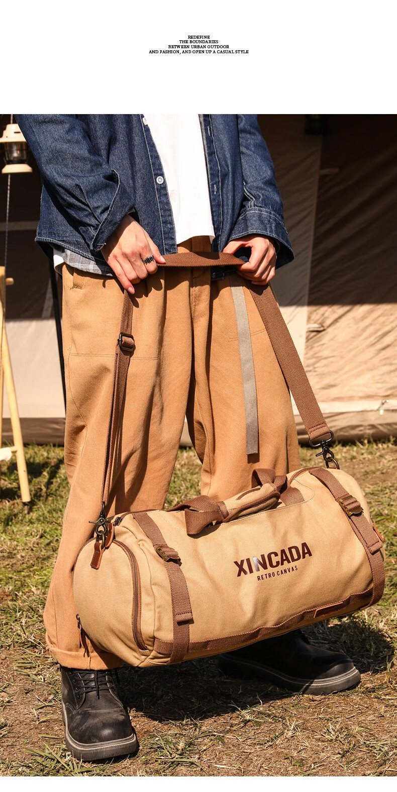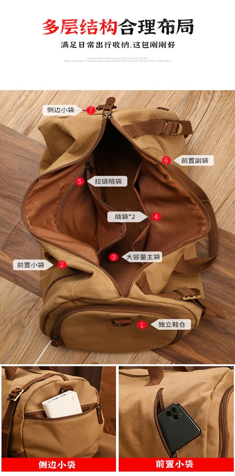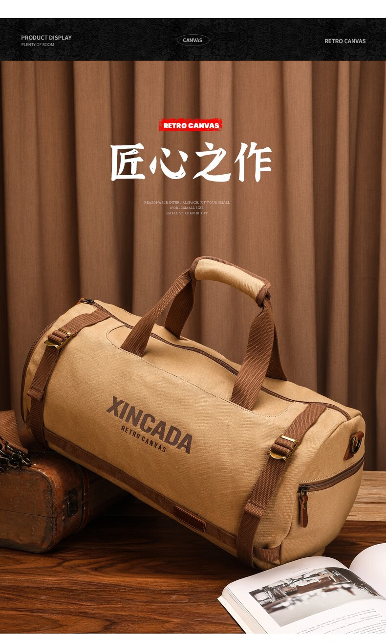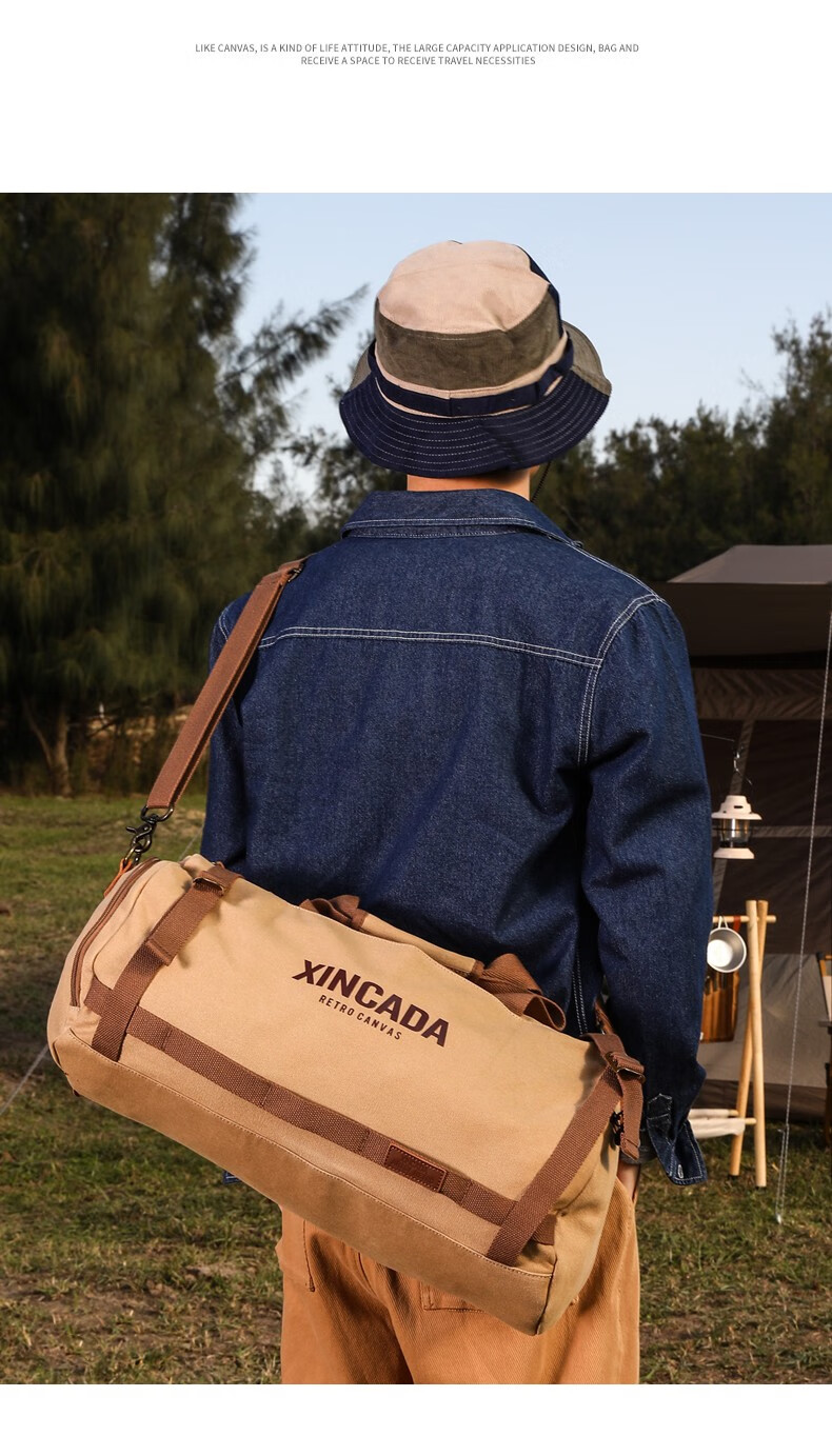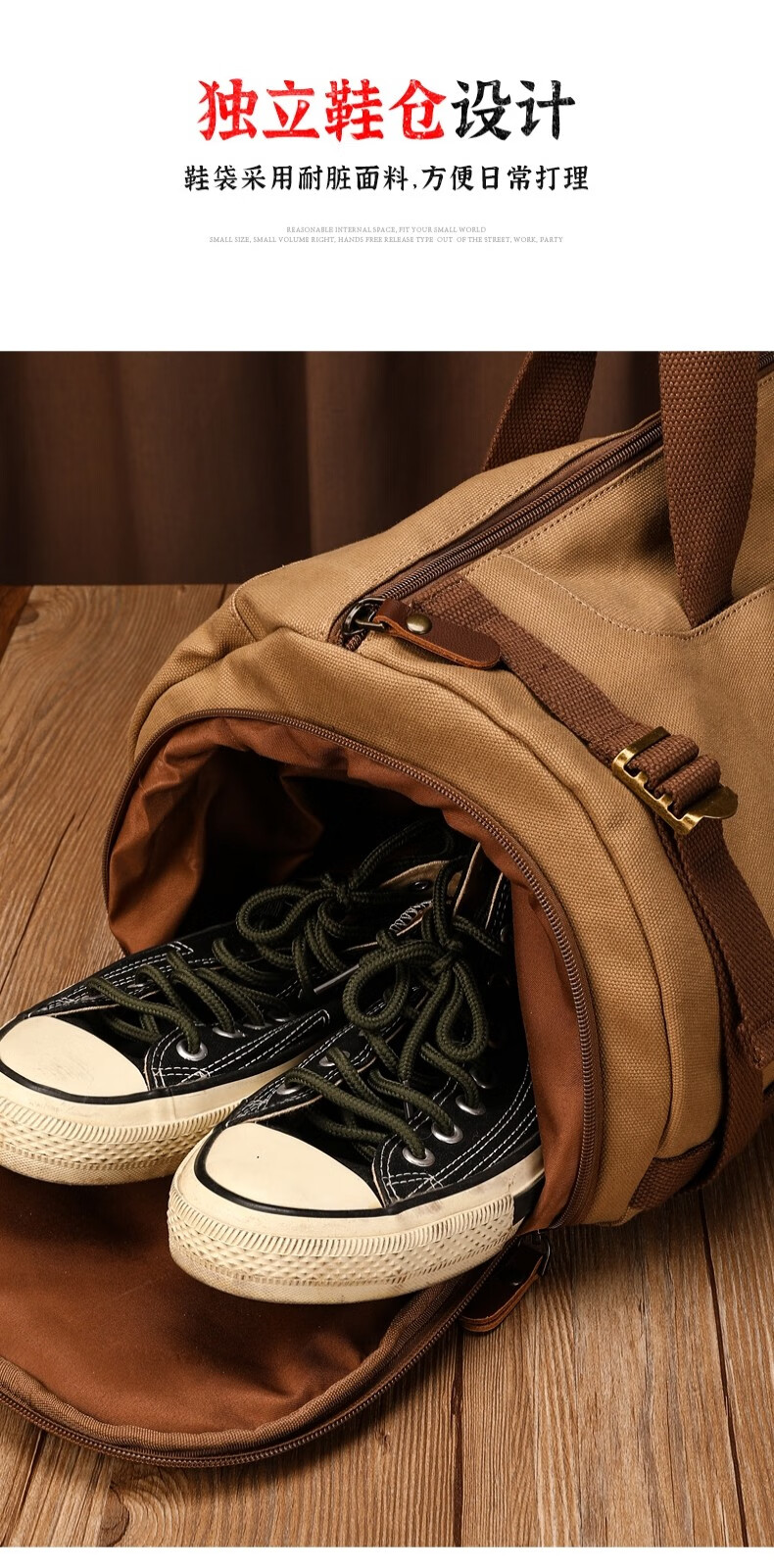 新潮代旅行包男大容量商务手提单肩行李包干湿分离出差户外运动包 卡其色【干湿分离袋设计】