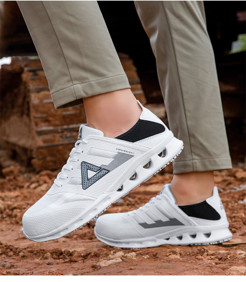 LZXB品牌轻奢男鞋夏季新款低帮时尚百搭轻便透气网面运动休闲鞋男 白黑-【冰丝透气】 42