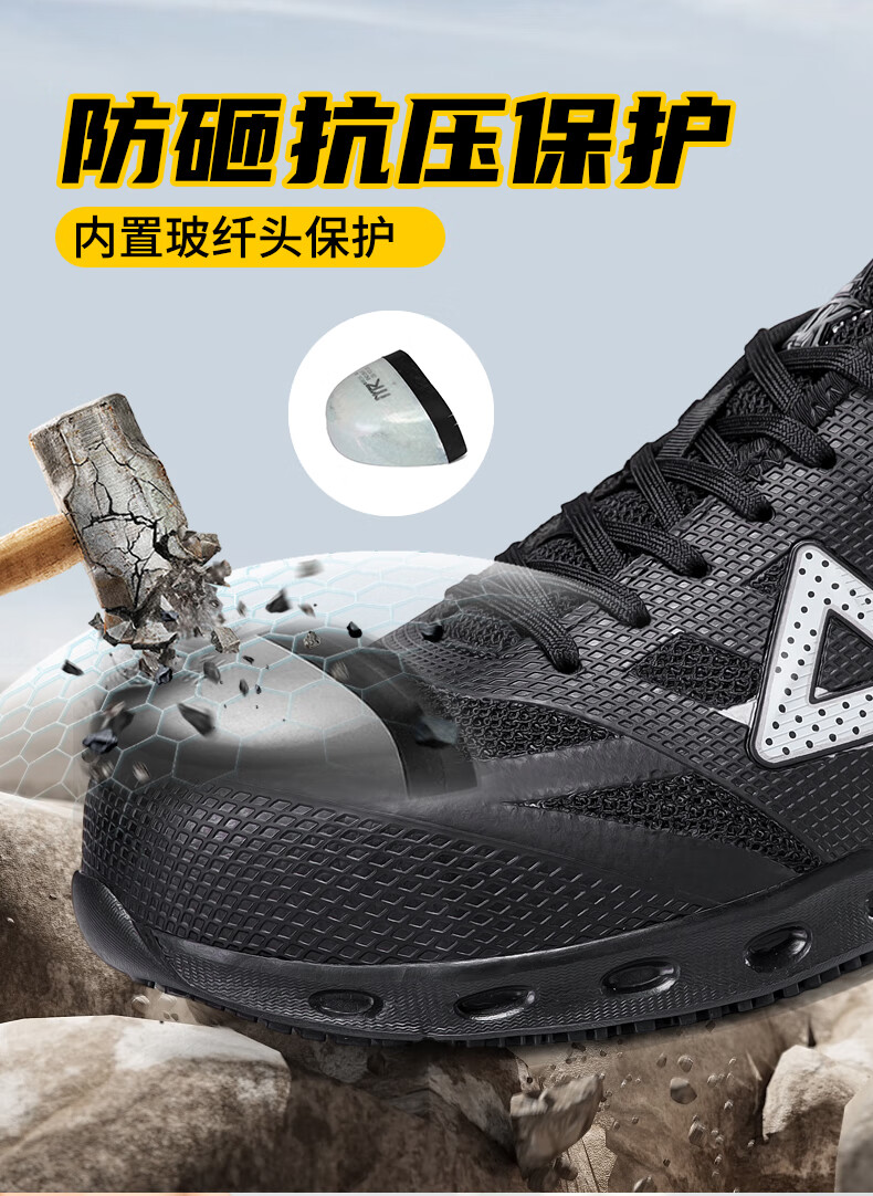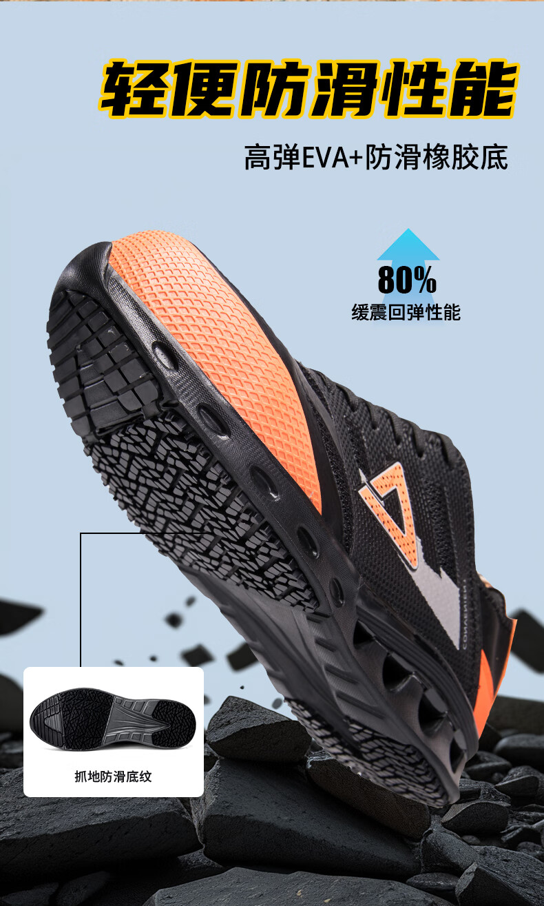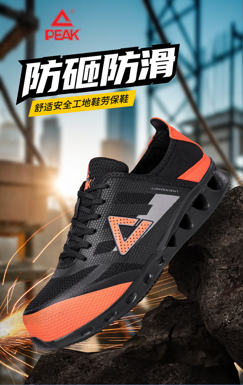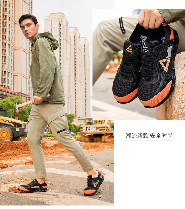 匹克劳保鞋全季工厂鞋防砸物流工作专用鞋轻便防滑舒适百搭工地安全鞋 黑/橘黄【防砸防滑轻便】 41