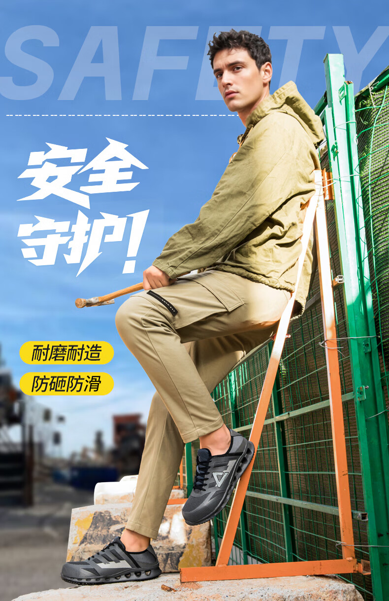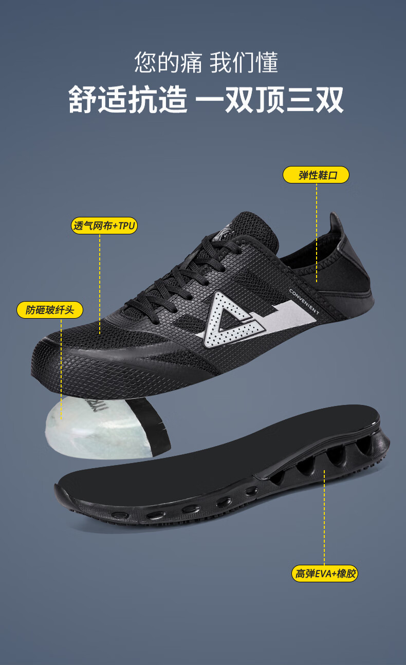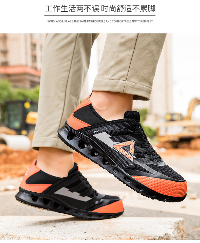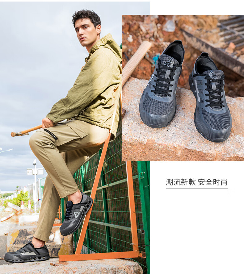 匹克劳保鞋全季工厂鞋防砸物流工作专用鞋轻便防滑舒适百搭工地安全鞋 黑/橘黄【防砸防滑轻便】 41