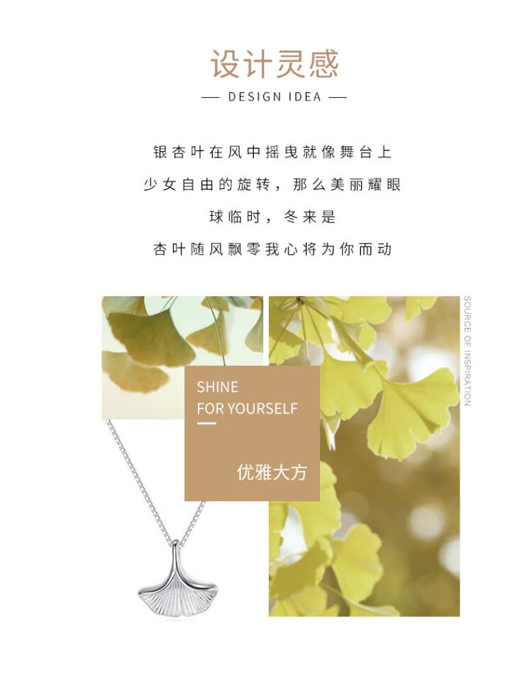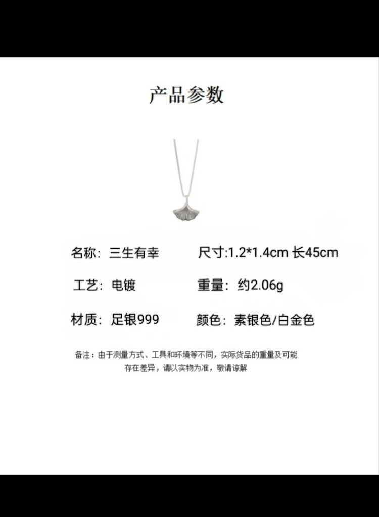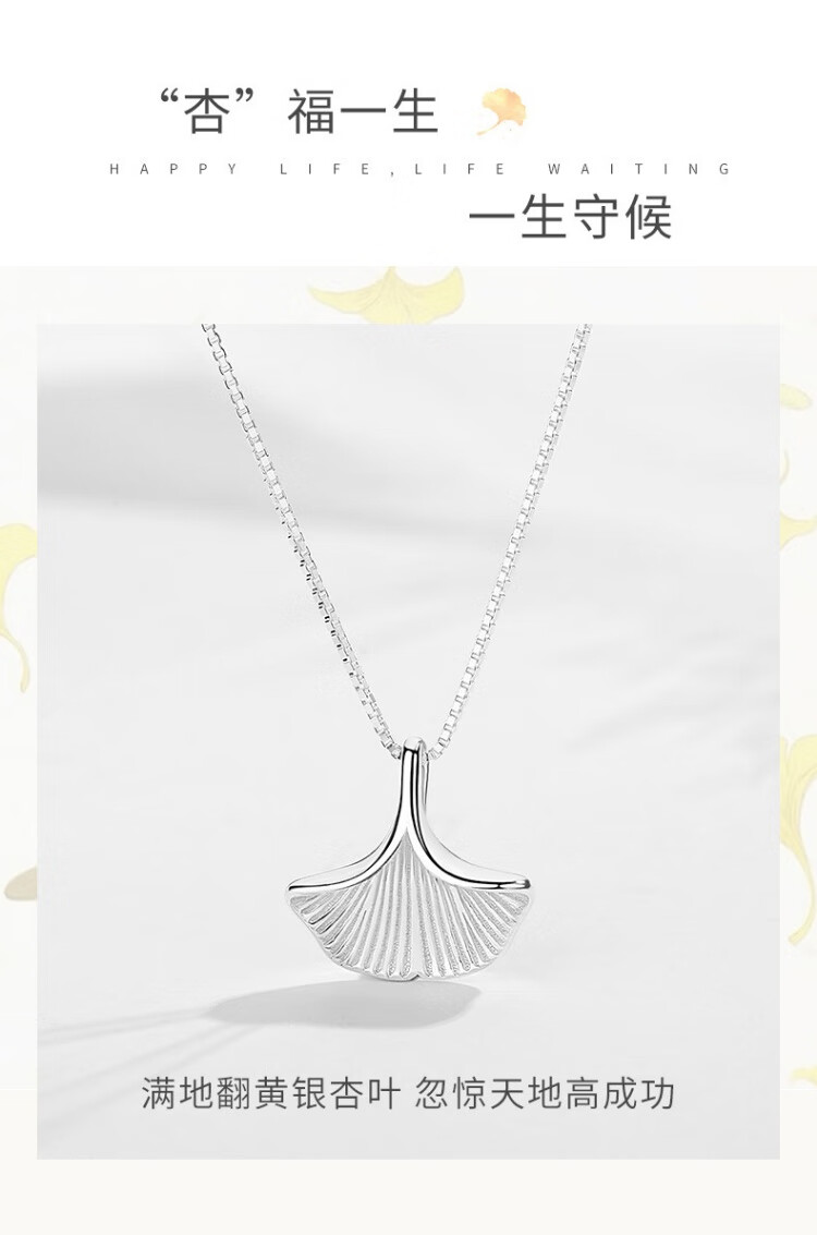 忆生银饰(YS)足银999银杏叶项链轻奢小众锁骨链三生有幸纯银项链 S999银杏叶项链素银色