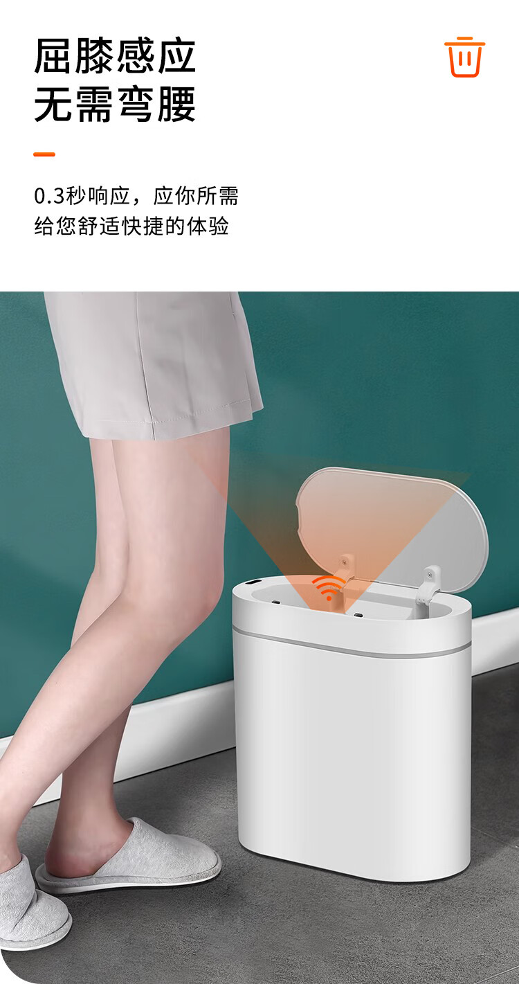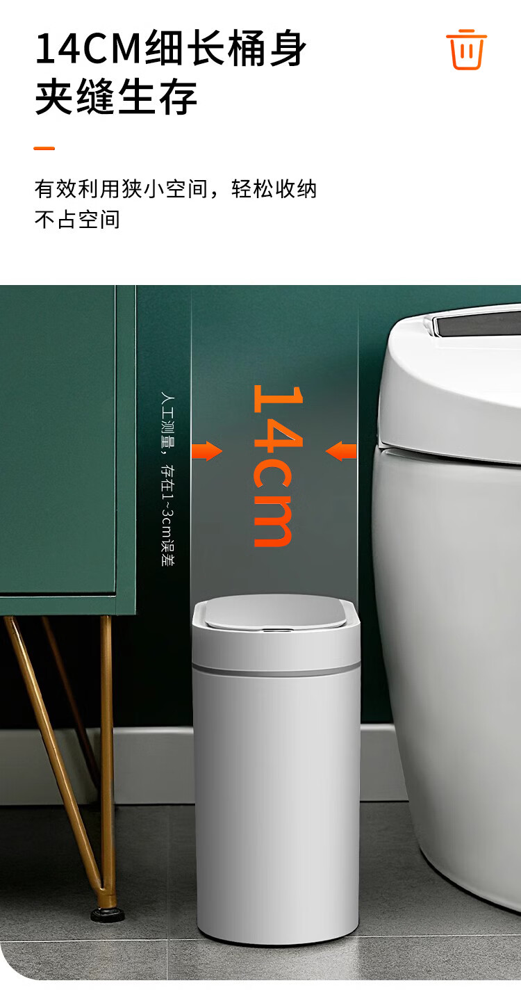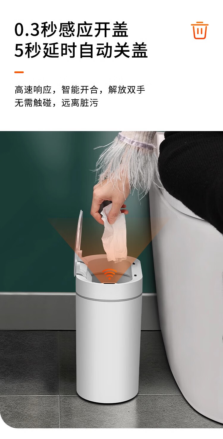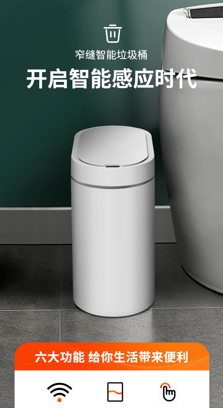 桶桶相传窄缝智能垃圾桶电动自动卫生间厕所专用感应带盖家用客厅厨房卧室 9L 米白(充电款+臭氧杀菌)
