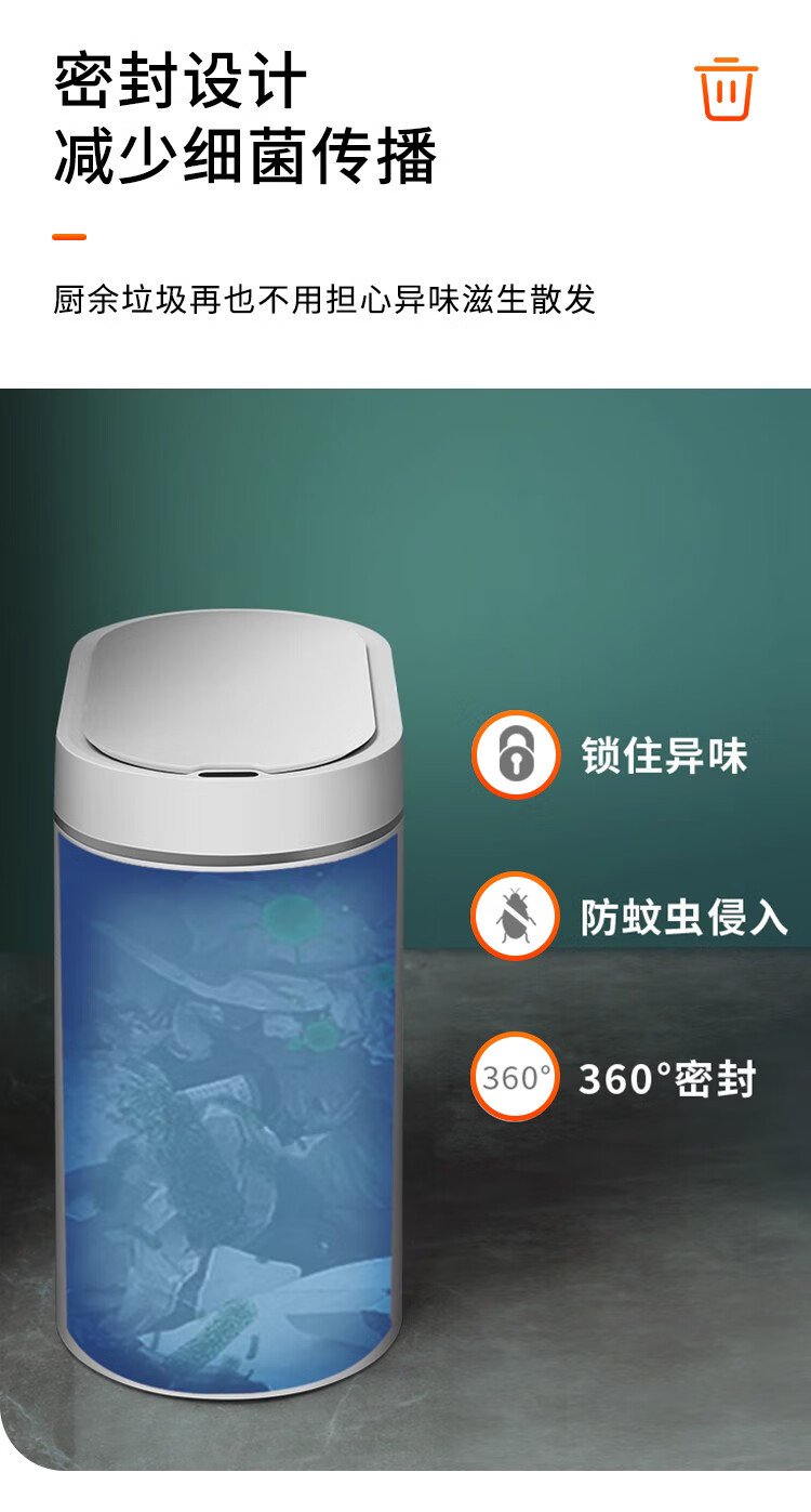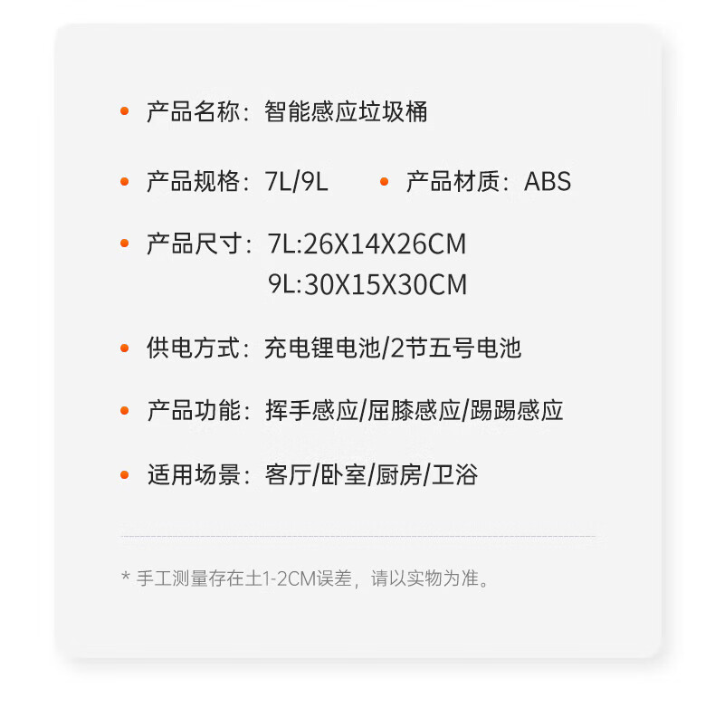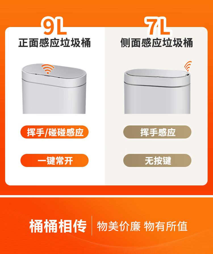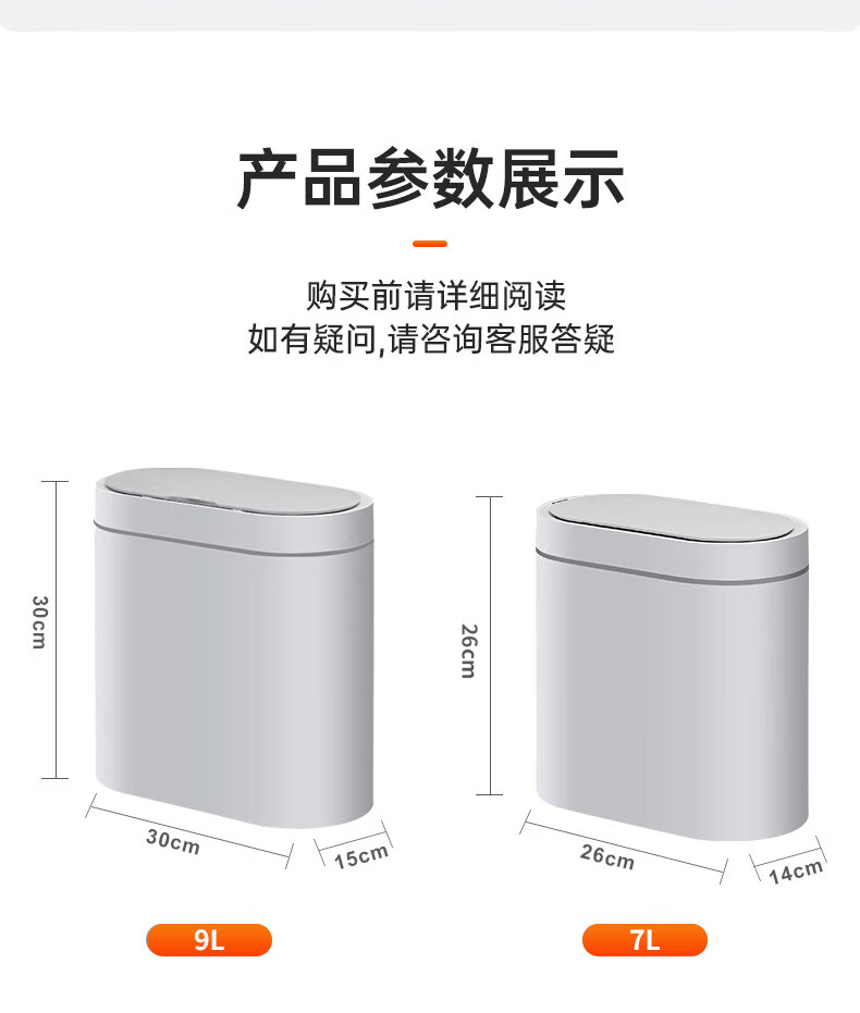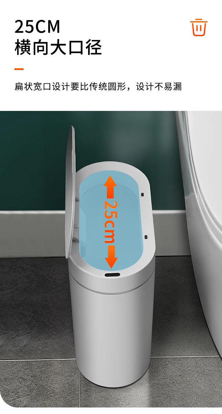 桶桶相传窄缝智能垃圾桶电动自动卫生间厕所专用感应带盖家用客厅厨房卧室 9L 米白(充电款+臭氧杀菌)