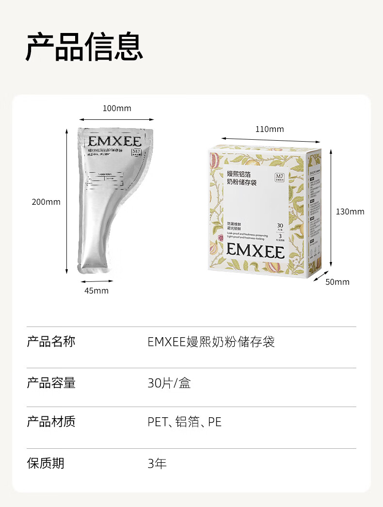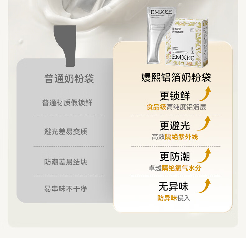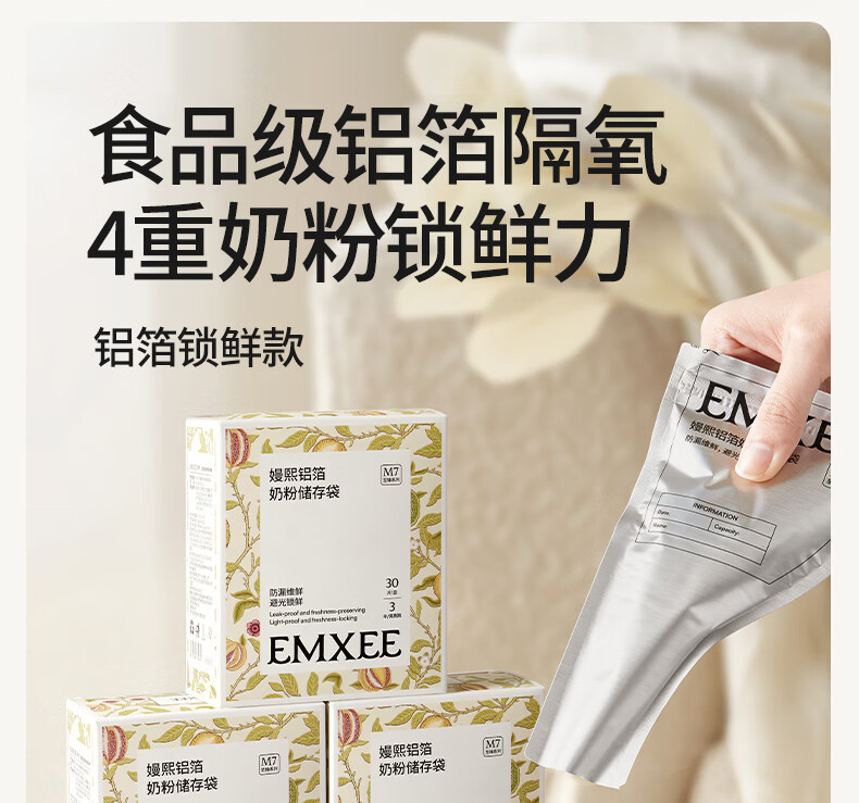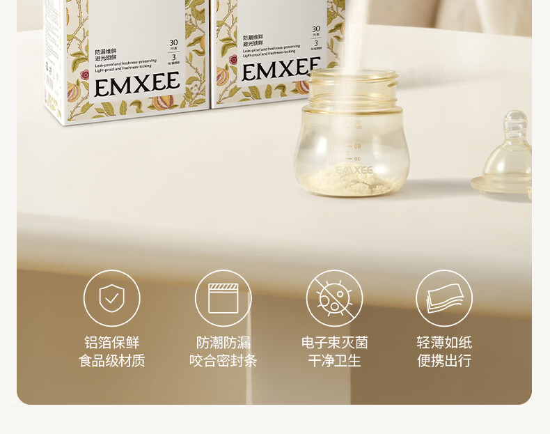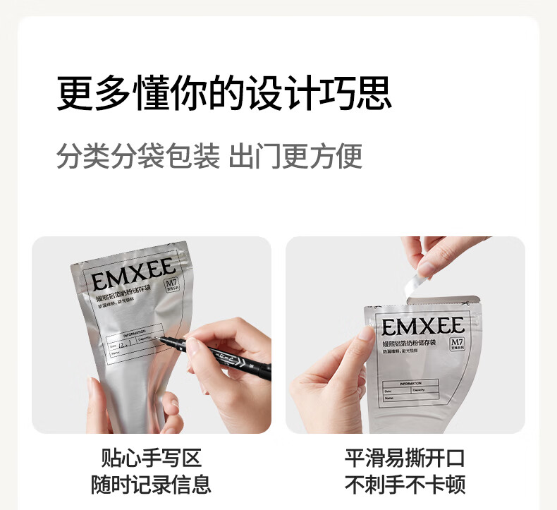 嫚熙(EMXEE)奶粉袋便携一次性储奶袋150片母乳保鲜袋铝箔锁鲜 铝箔奶粉袋【30片】赠记号笔1支