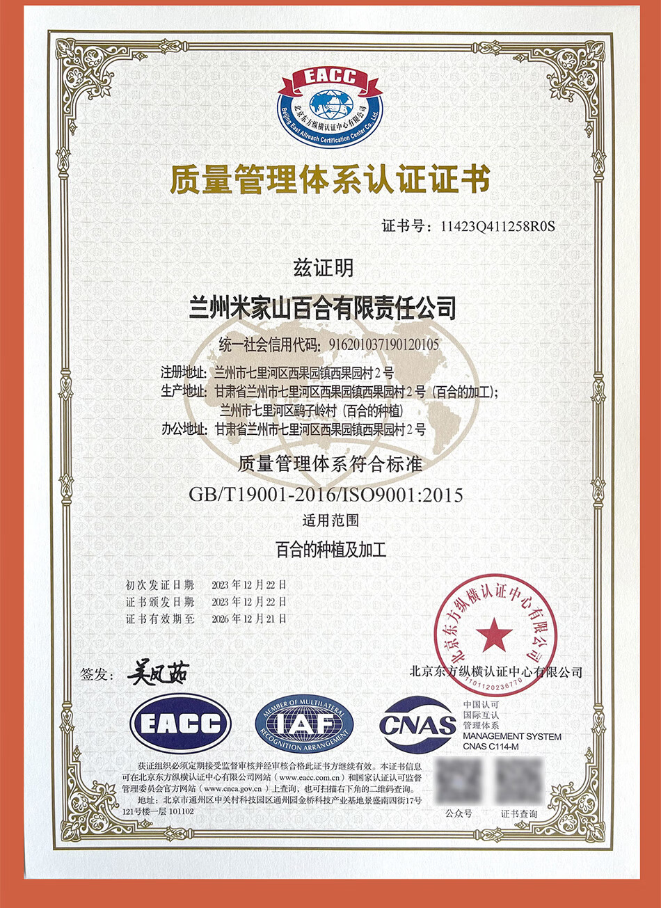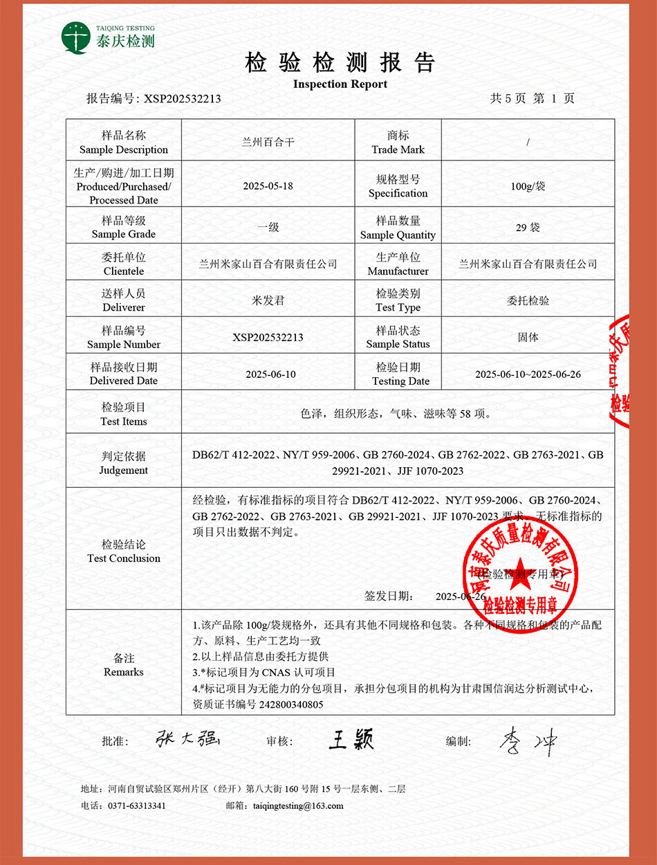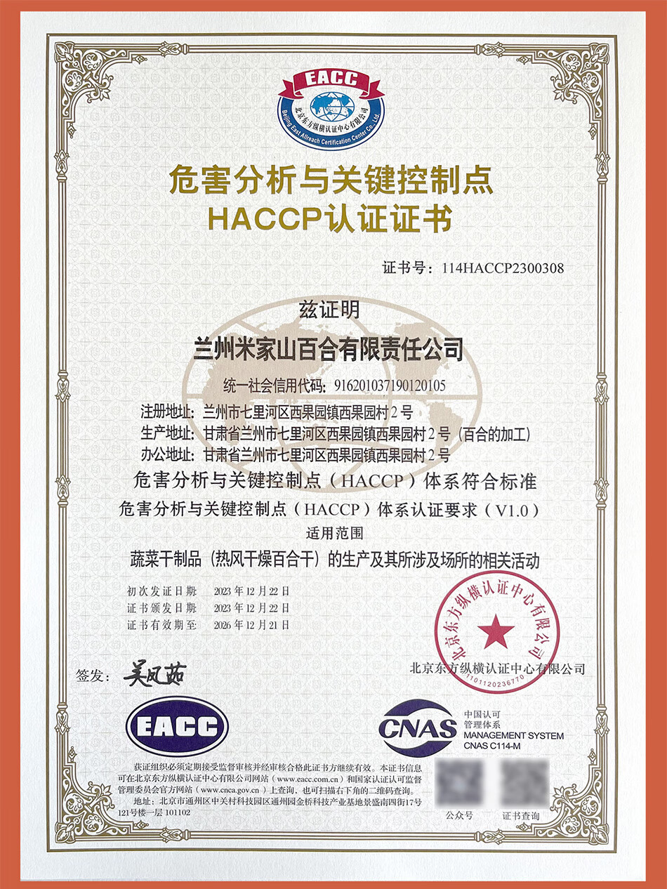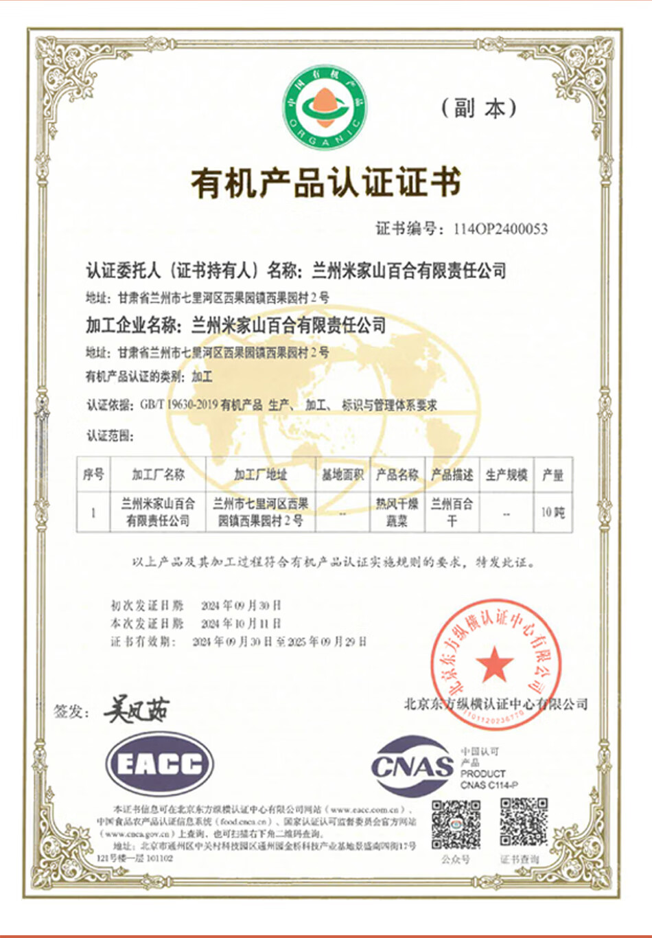 米家山兰州有机百合干250g/袋 无硫无添加 特产干货食用甜百合当季新货 一级精品大片 【有机认证】 250g/袋