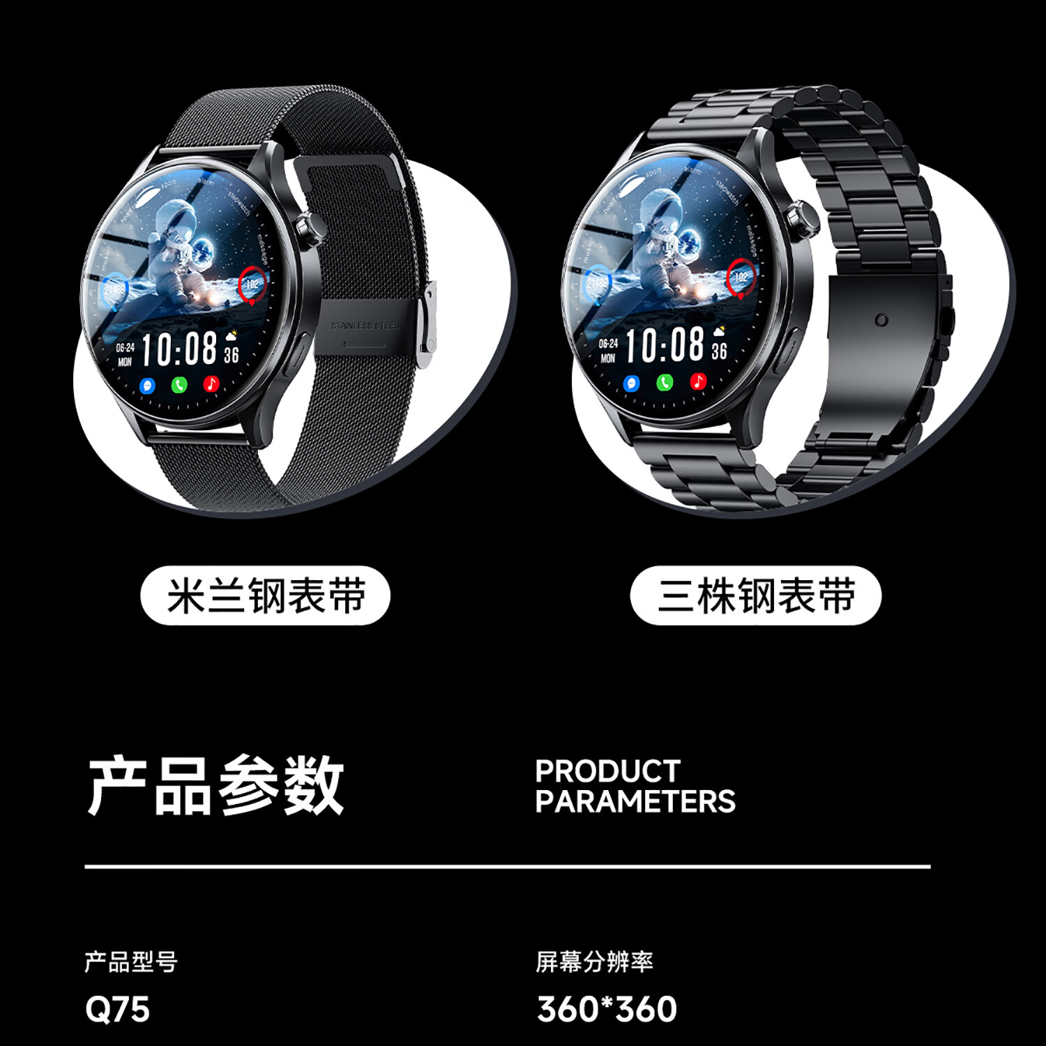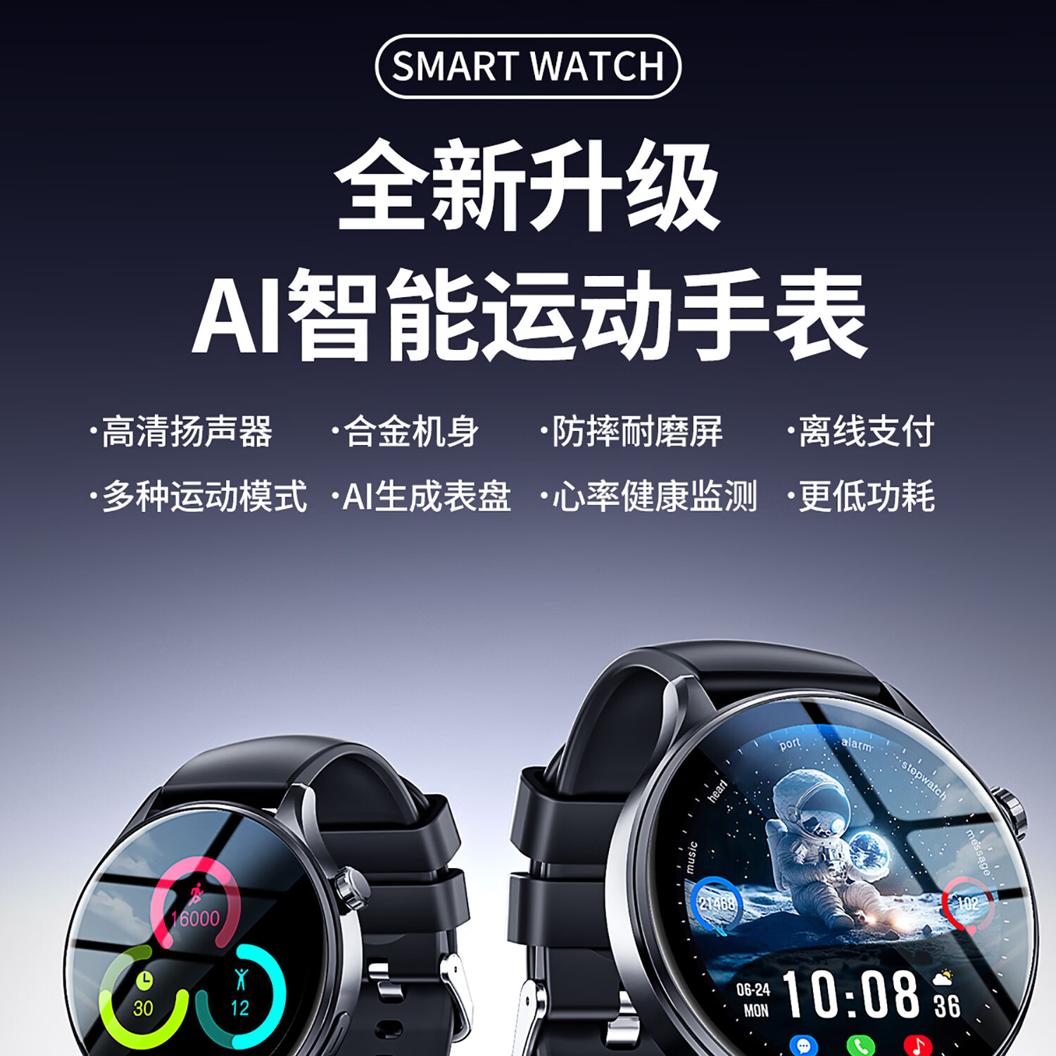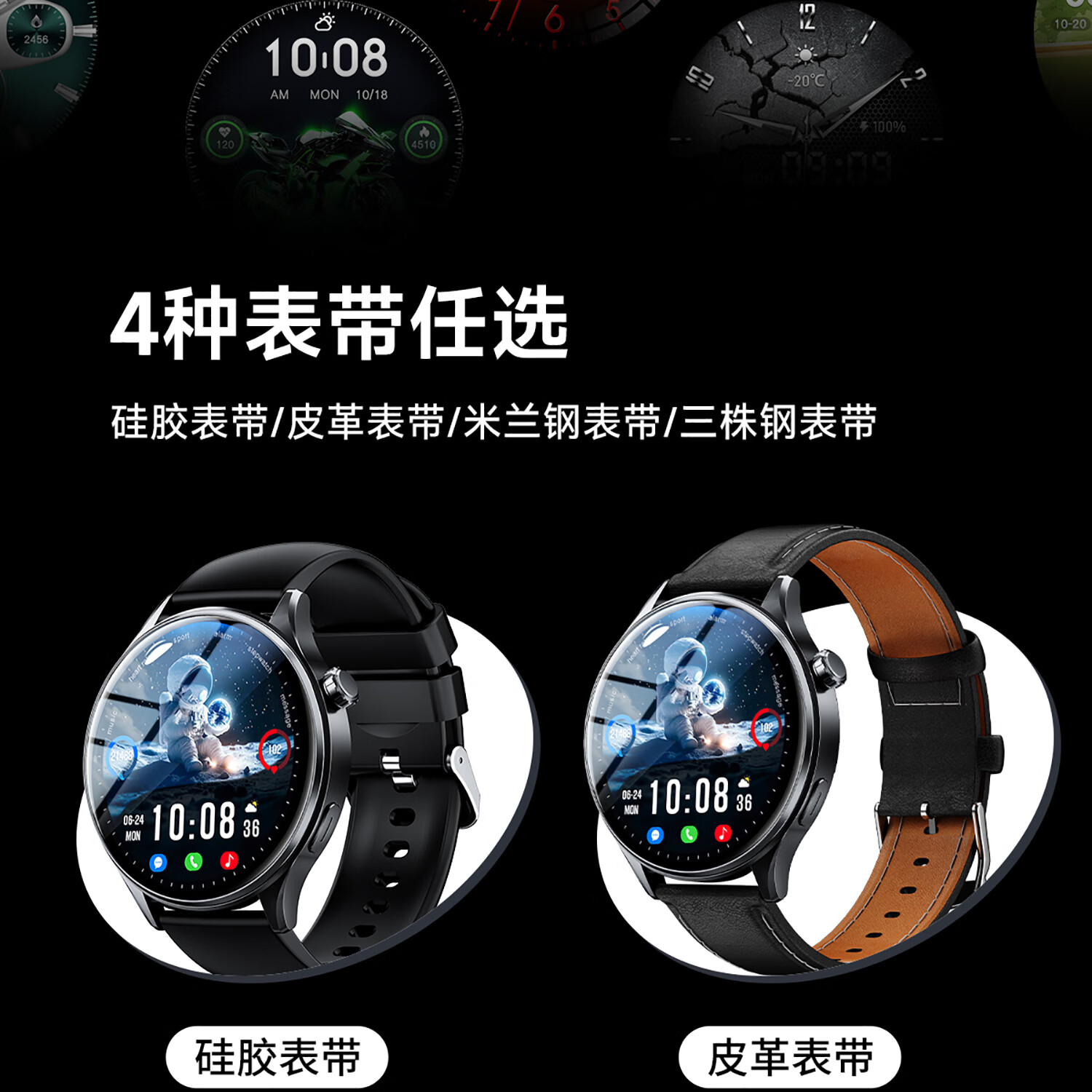 莱思帝智能运动手表跑步心率监测血压血氧睡眠防水防汗长续航蓝牙接打电话听歌消息提示离线支付watch 离线支付版黑色 合金机身+黑色米兰钢带