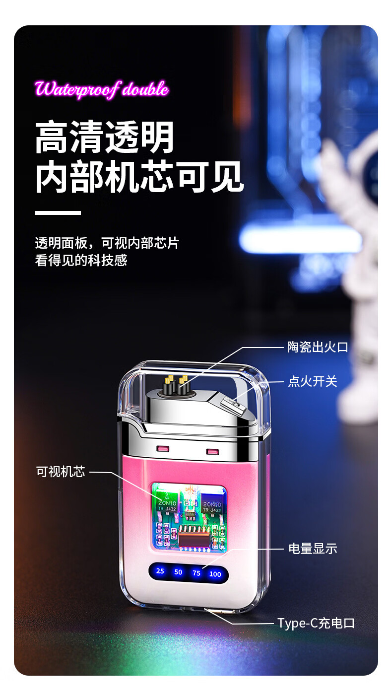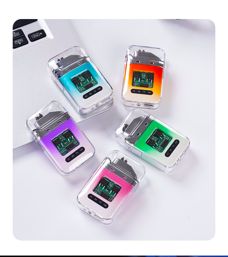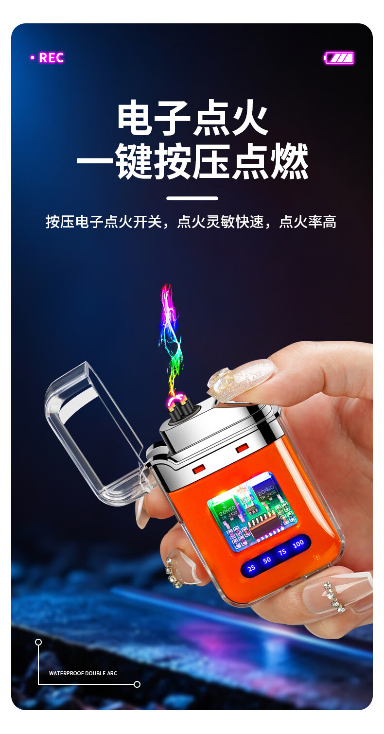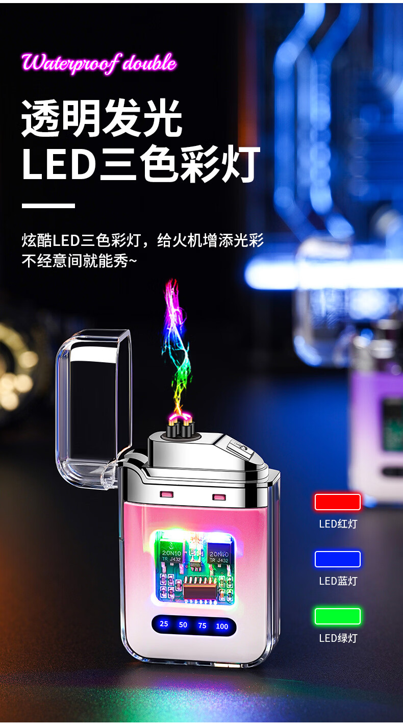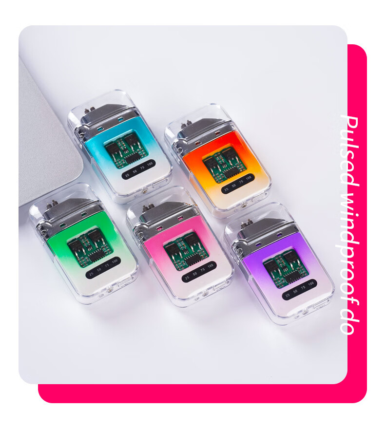 DL胖东来同款创意打火机脉冲电弧充电防风炫酷透明壳渐变色防水电 炫灯黑