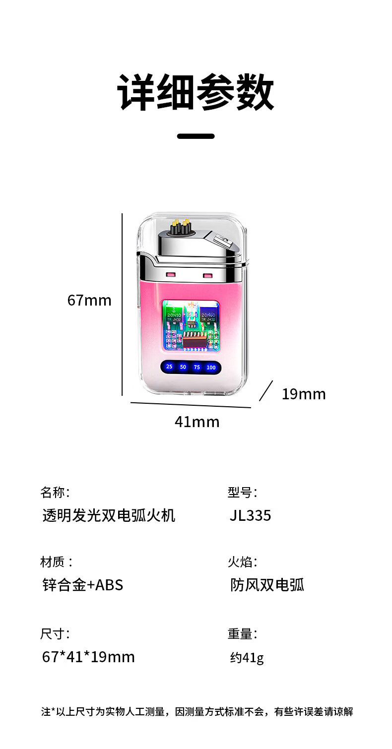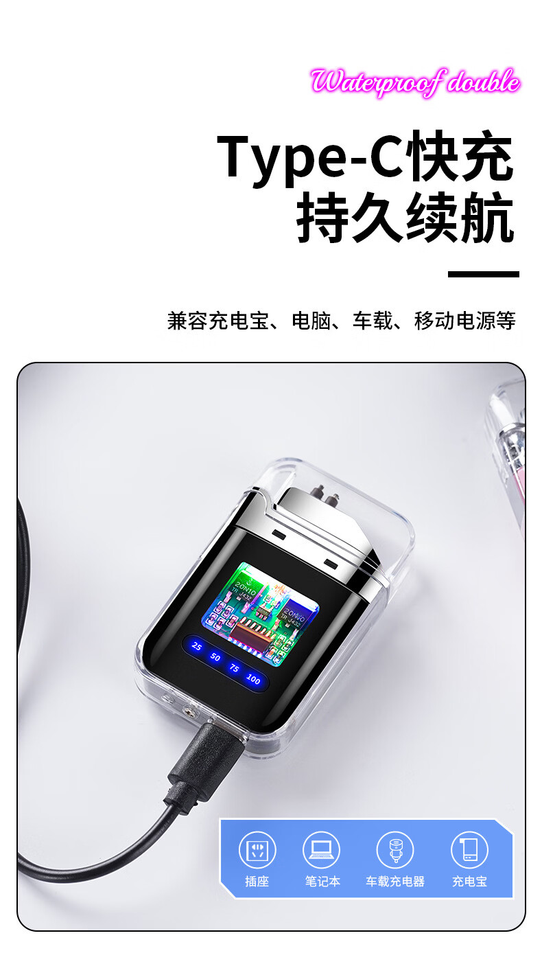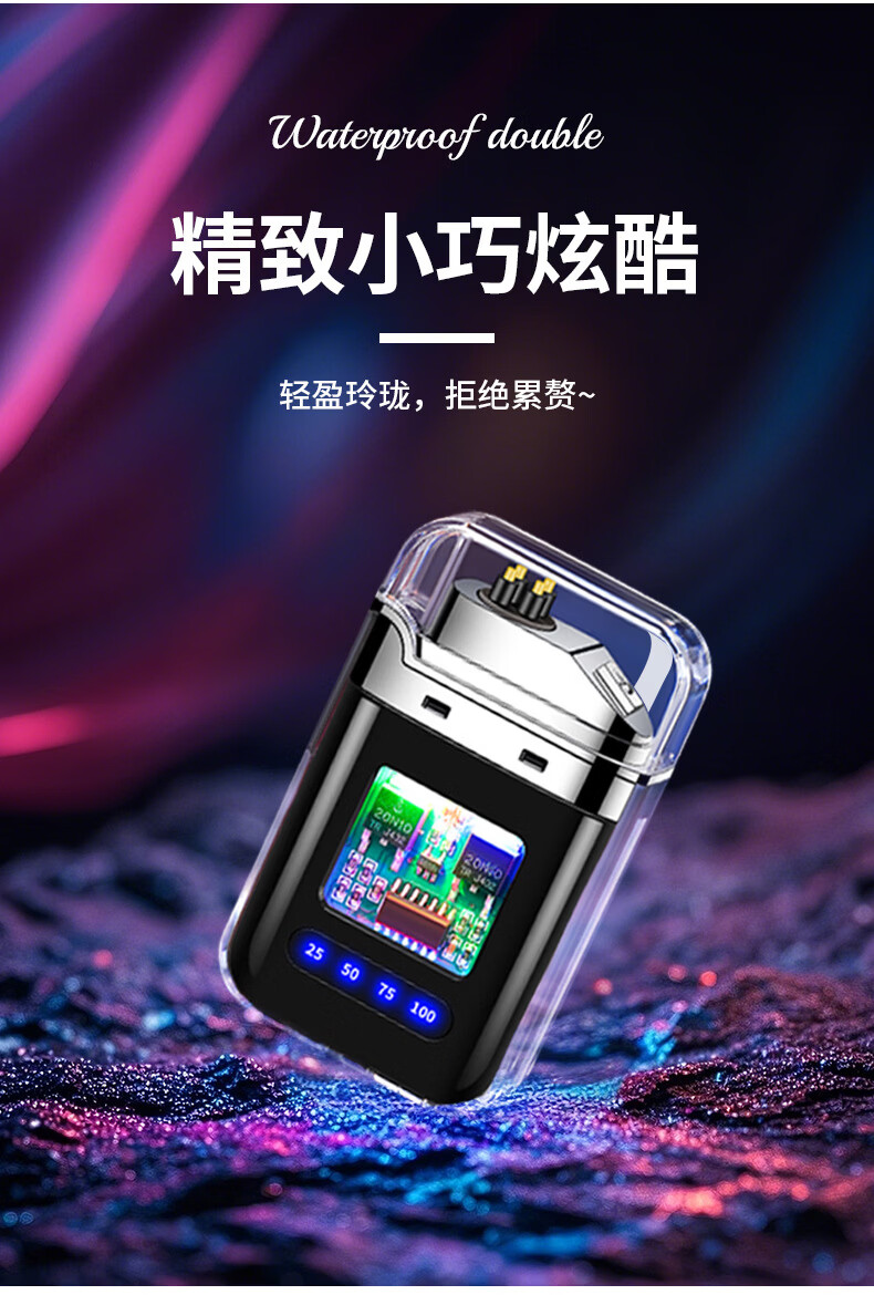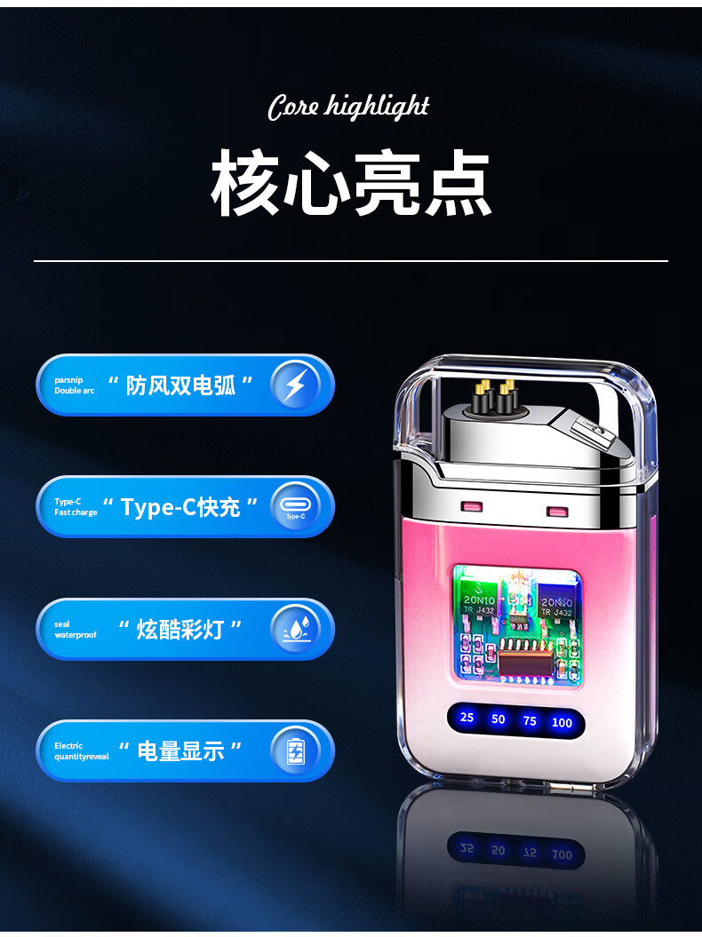 DL胖东来同款创意打火机脉冲电弧充电防风炫酷透明壳渐变色防水电 炫灯黑