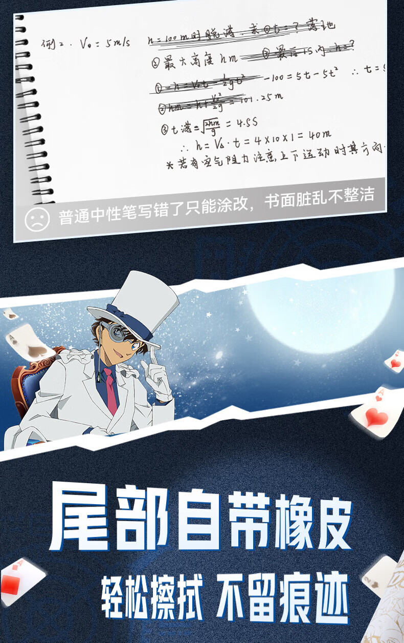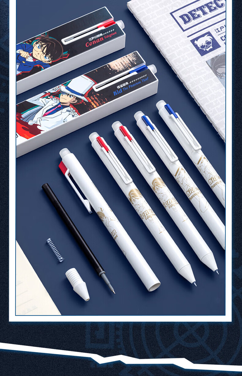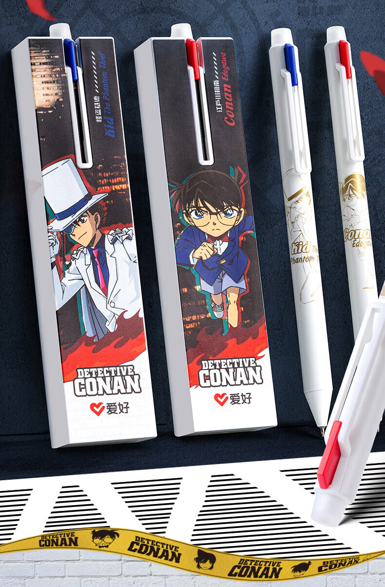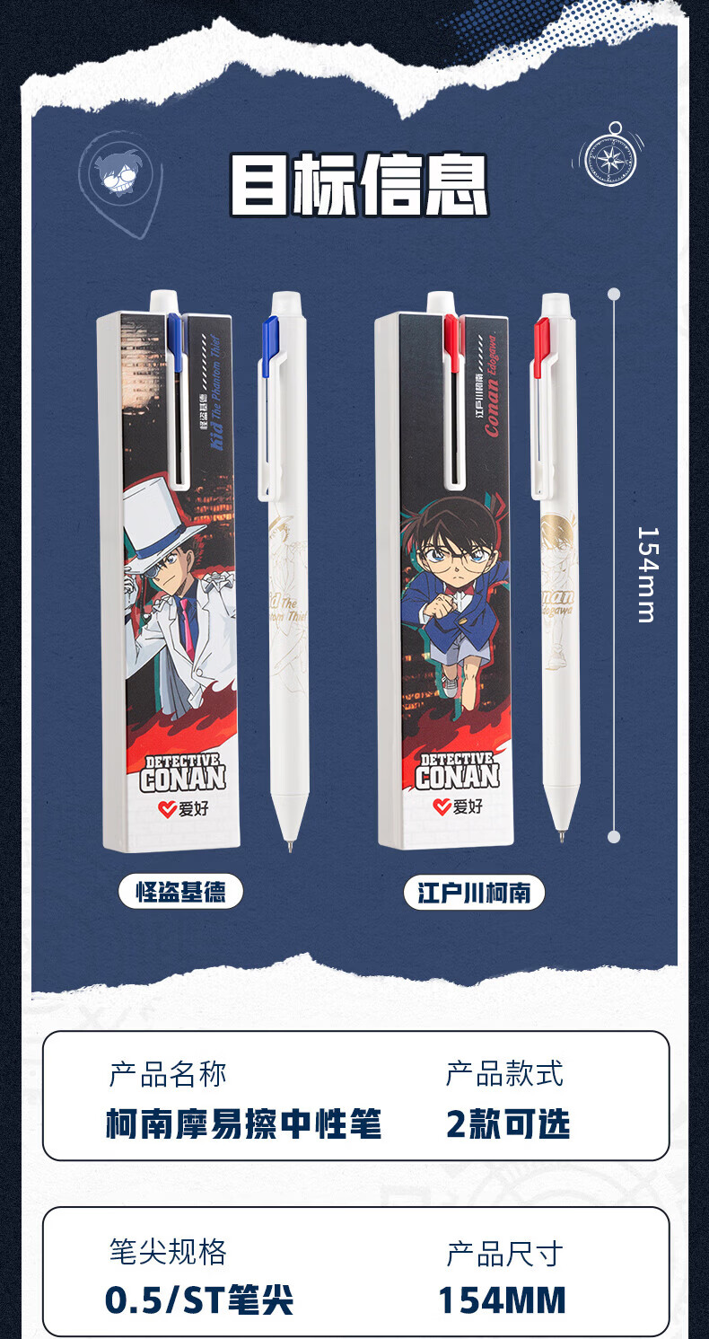 爱好(AIHAO)名侦探柯南摩易擦中性笔1笔4芯二合一按动可擦笔0.5mm学生高颜值刷题笔黑色水笔 GP2962 【黑色可擦】柯南+基德各2盒