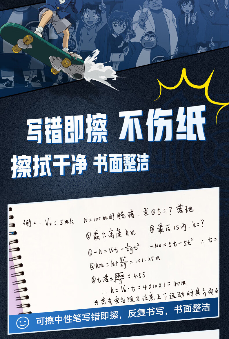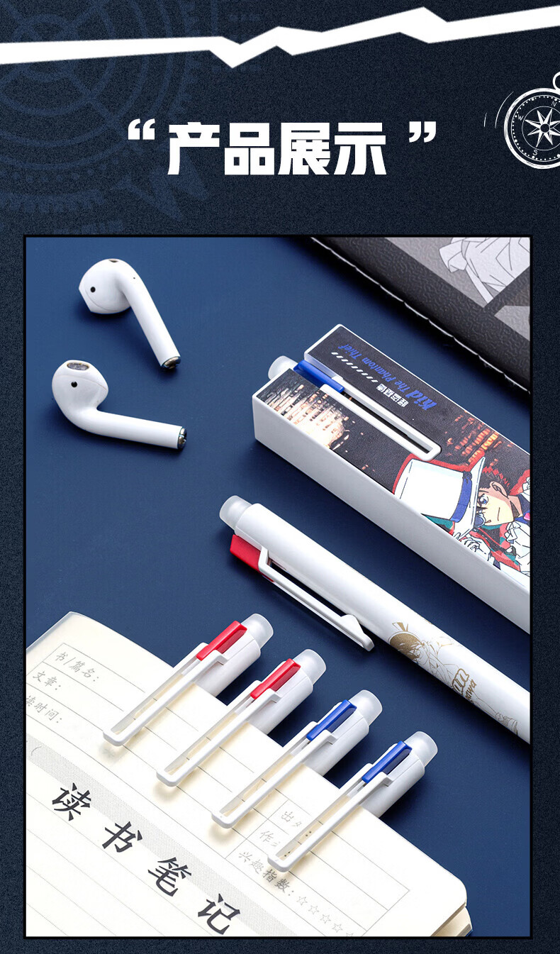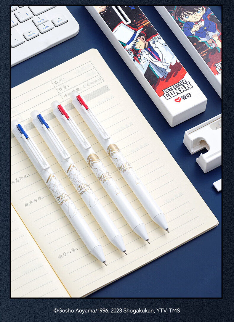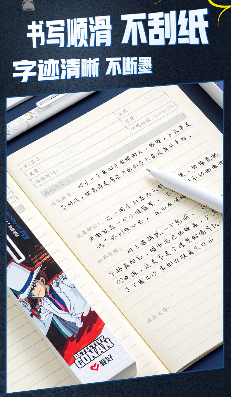 爱好(AIHAO)名侦探柯南摩易擦中性笔1笔4芯二合一按动可擦笔0.5mm学生高颜值刷题笔黑色水笔 GP2962 【黑色可擦】柯南+基德各2盒