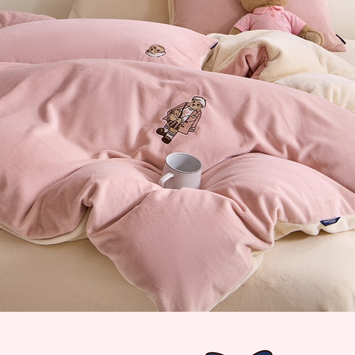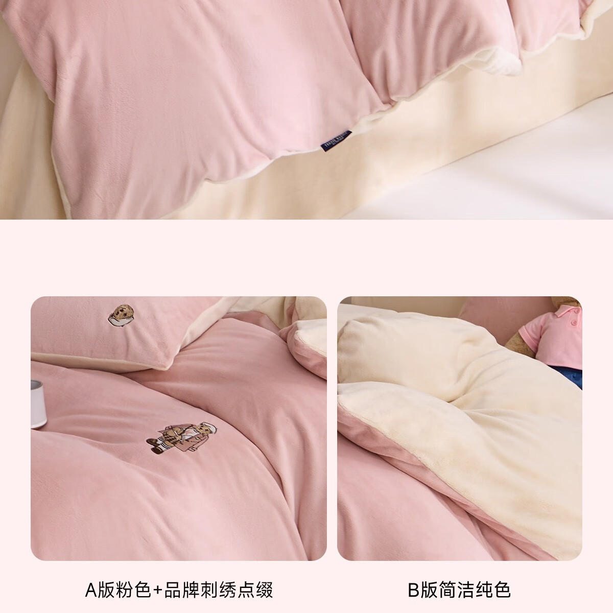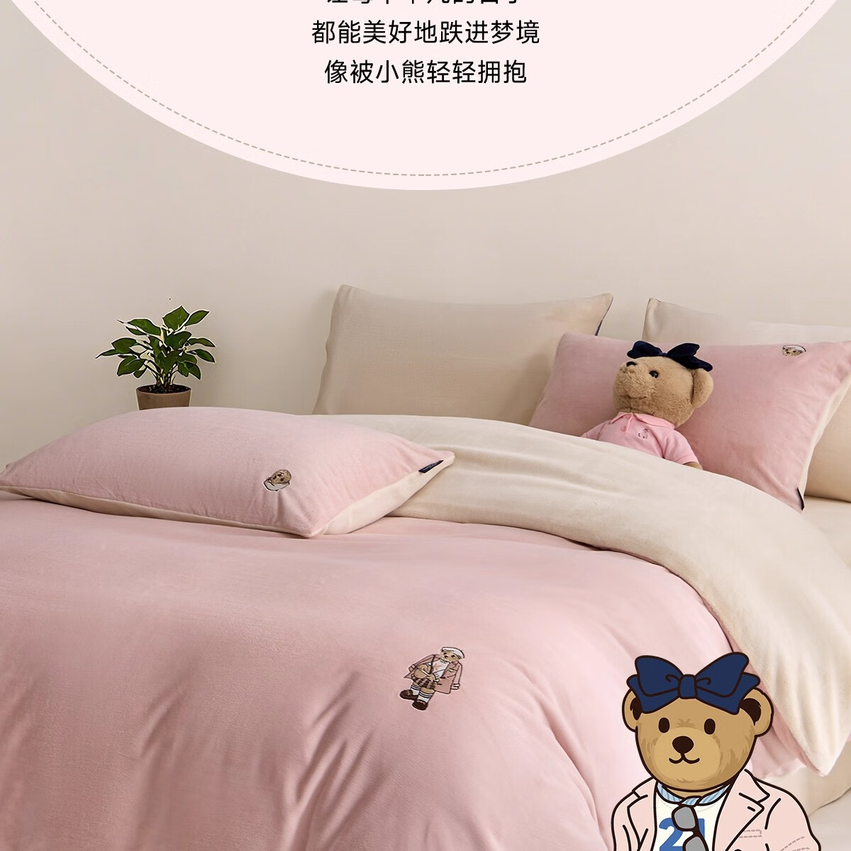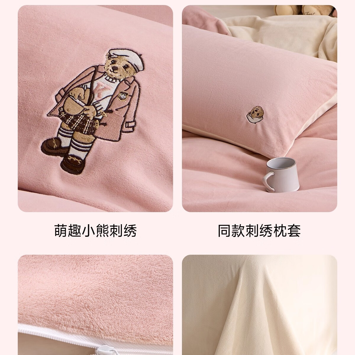 Teenie Weenie小熊粉色公主风牛奶绒四件套新款秋冬季珊瑚绒被罩床笠 小熊冬眠企划-粉色 1.5/1.8m 床单款 被套200*230cm