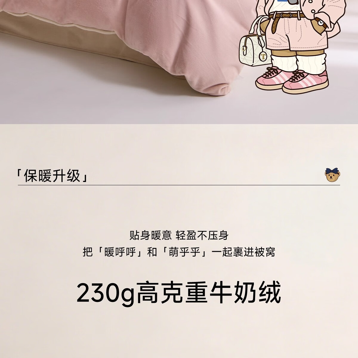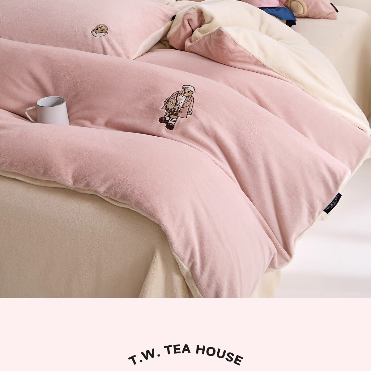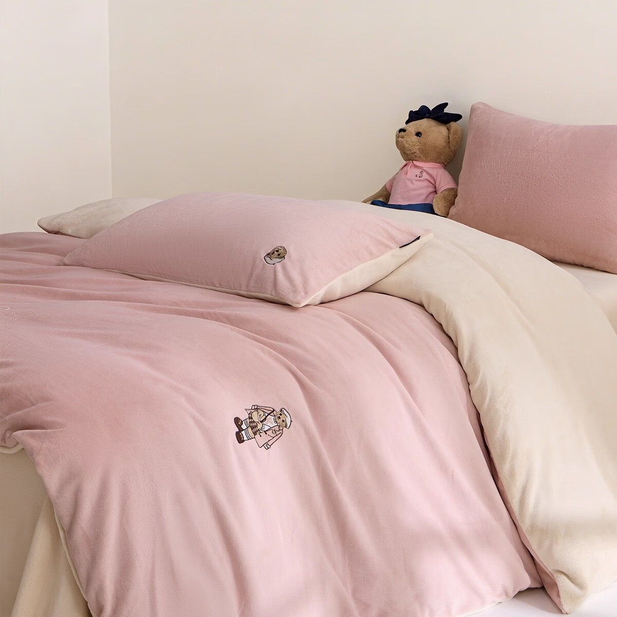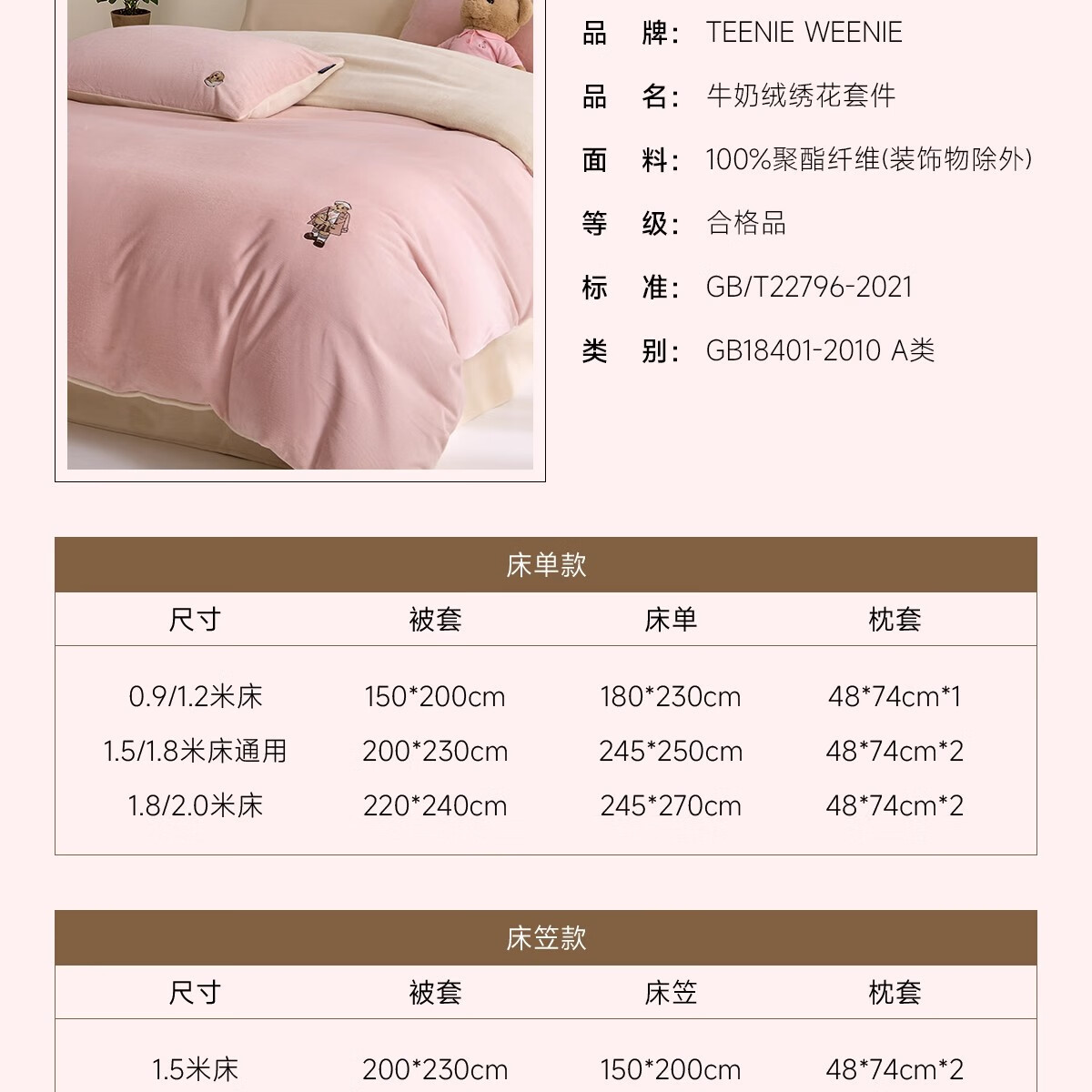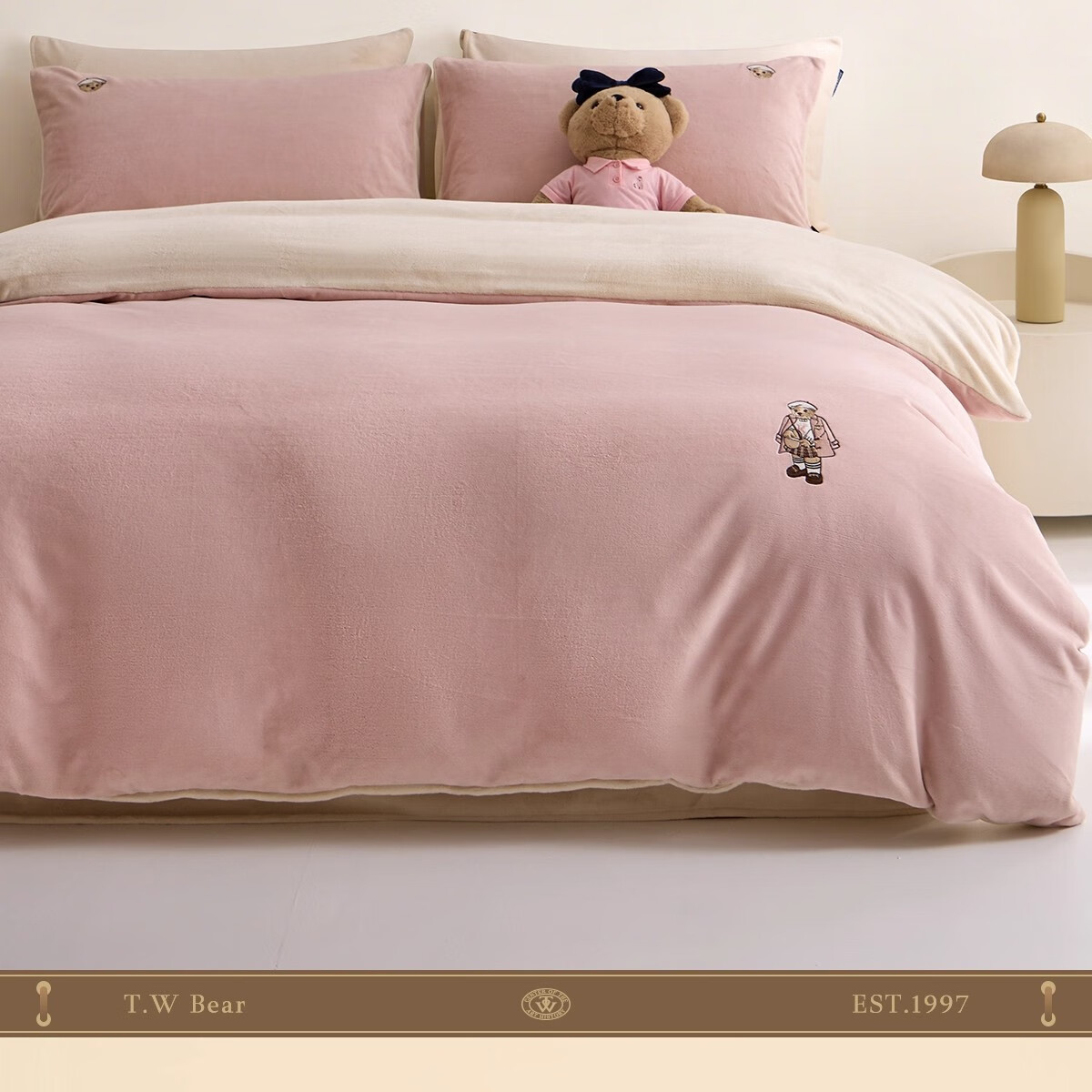 Teenie Weenie小熊粉色公主风牛奶绒四件套新款秋冬季珊瑚绒被罩床笠 小熊冬眠企划-粉色 1.5/1.8m 床单款 被套200*230cm