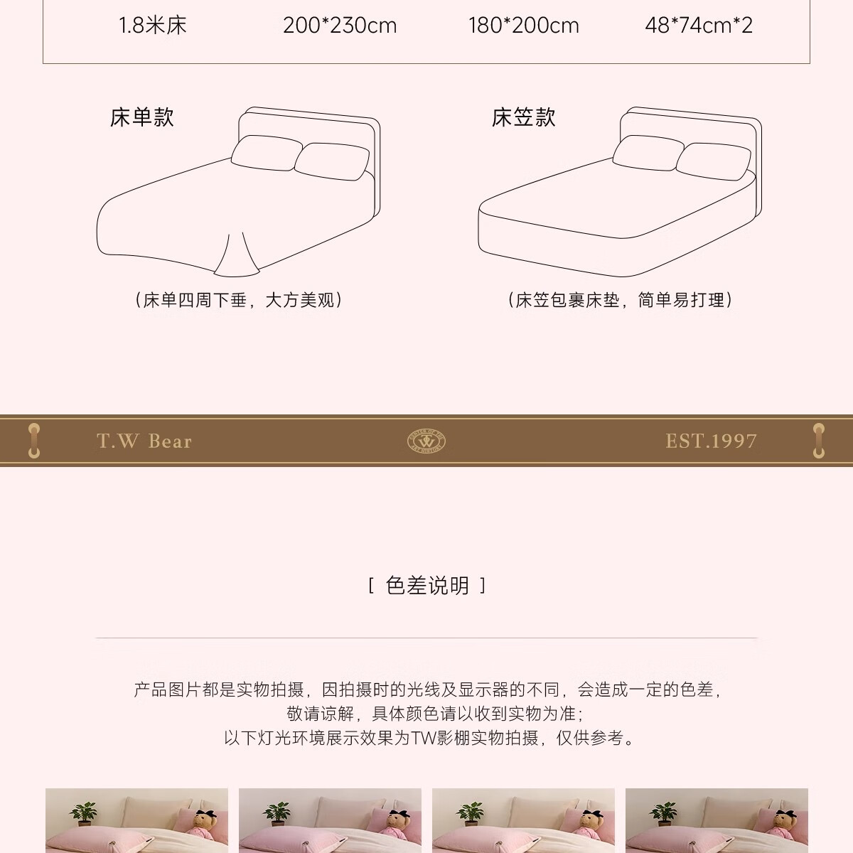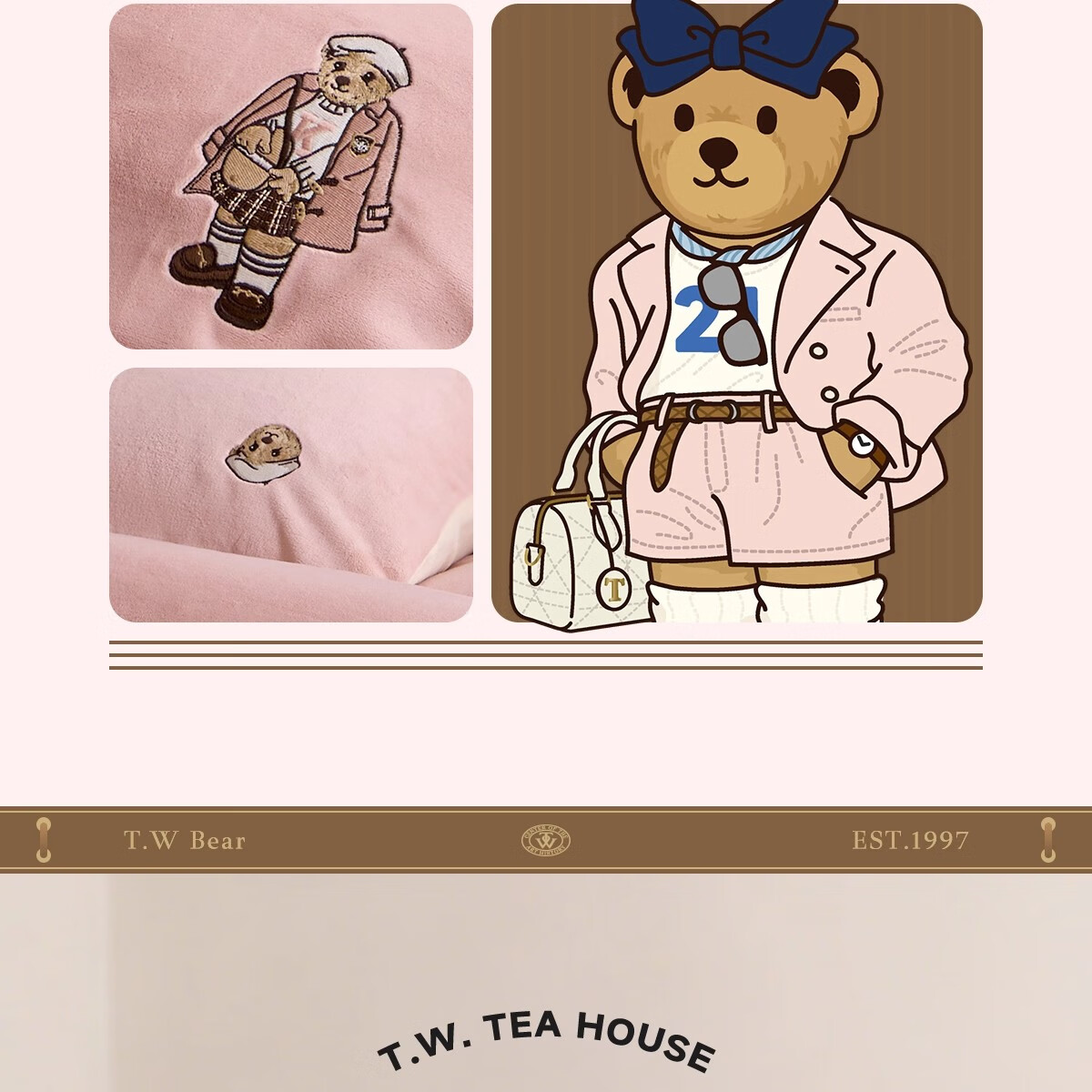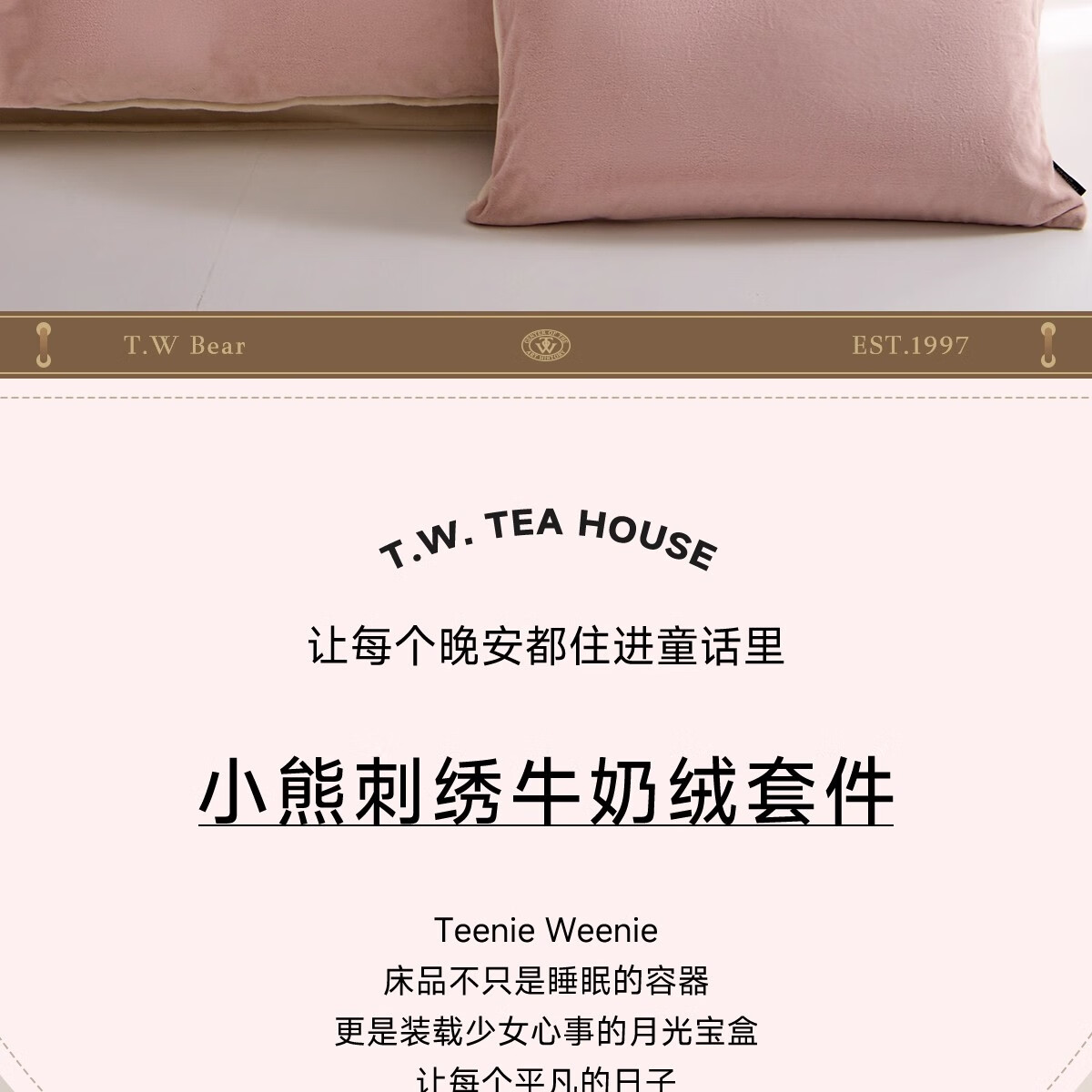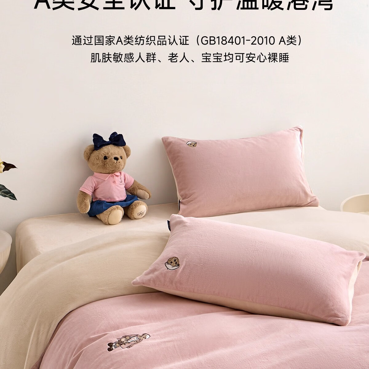 Teenie Weenie小熊粉色公主风牛奶绒四件套新款秋冬季珊瑚绒被罩床笠 小熊冬眠企划-粉色 1.5/1.8m 床单款 被套200*230cm