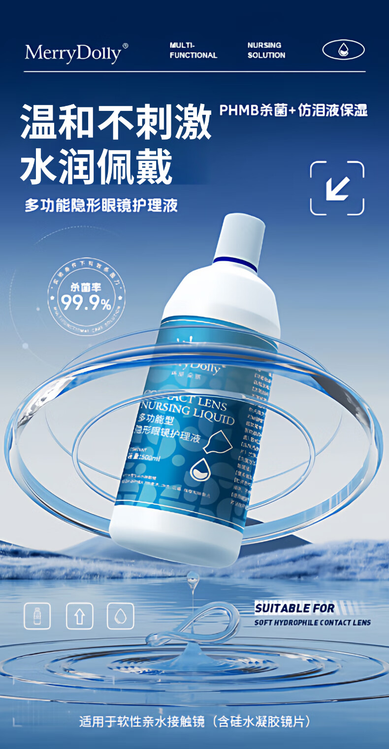 Merry dolly隐形眼镜美瞳护理液清洗液浸润保湿除蛋白水润温和不刺激 护理液500ml+150ml