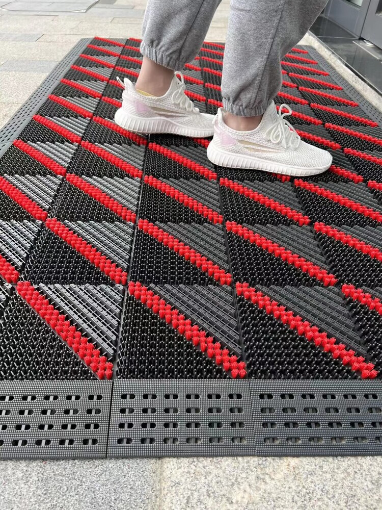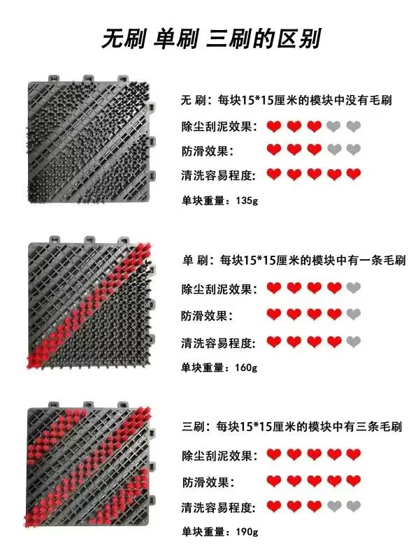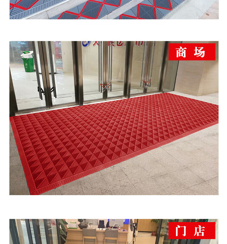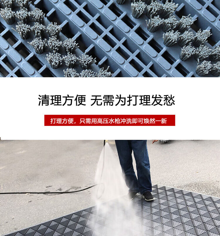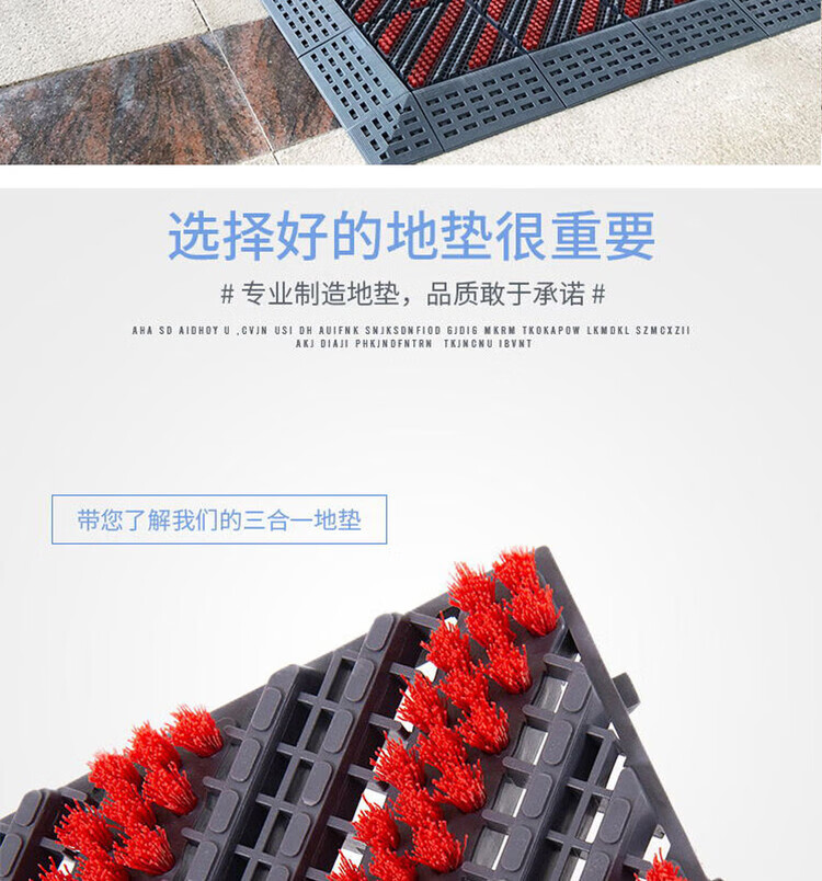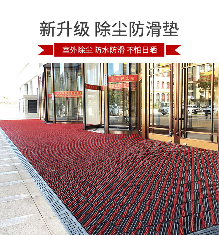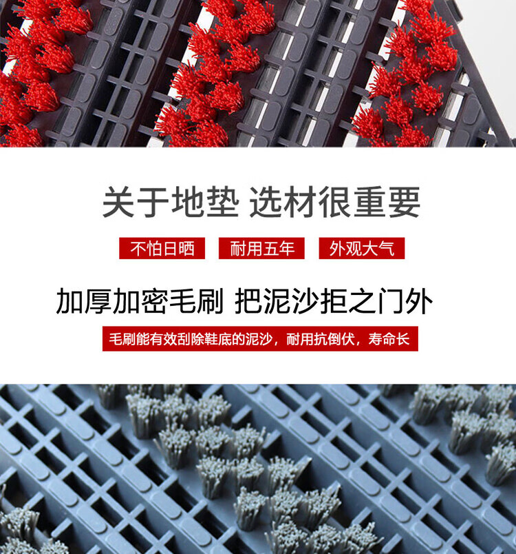防滑地垫除尘脚垫进门垫刮泥商用家用地垫入户大门口脚垫入户门垫 三刷灰红(毛刷加密) 90cm*210cm【送橡胶锤】