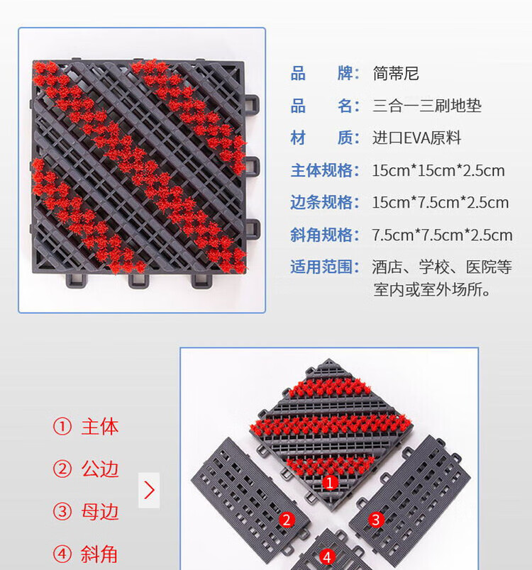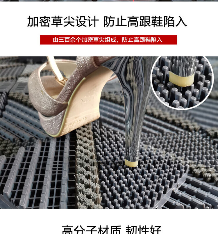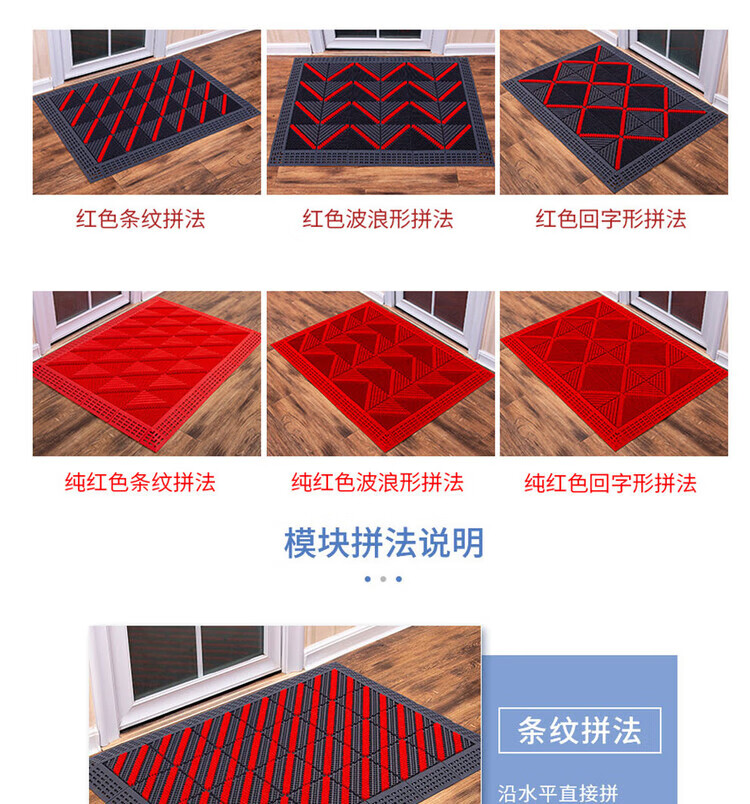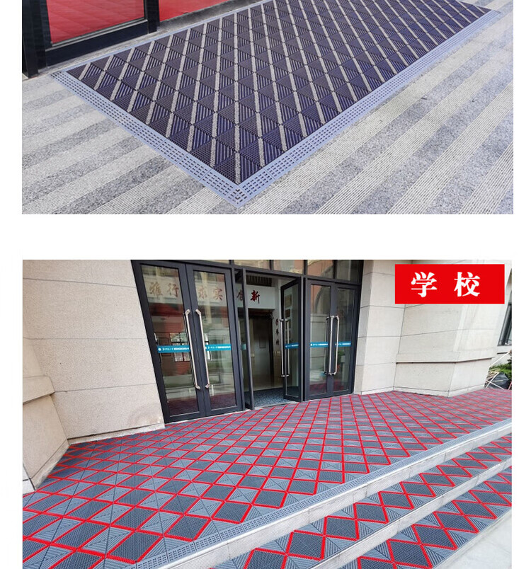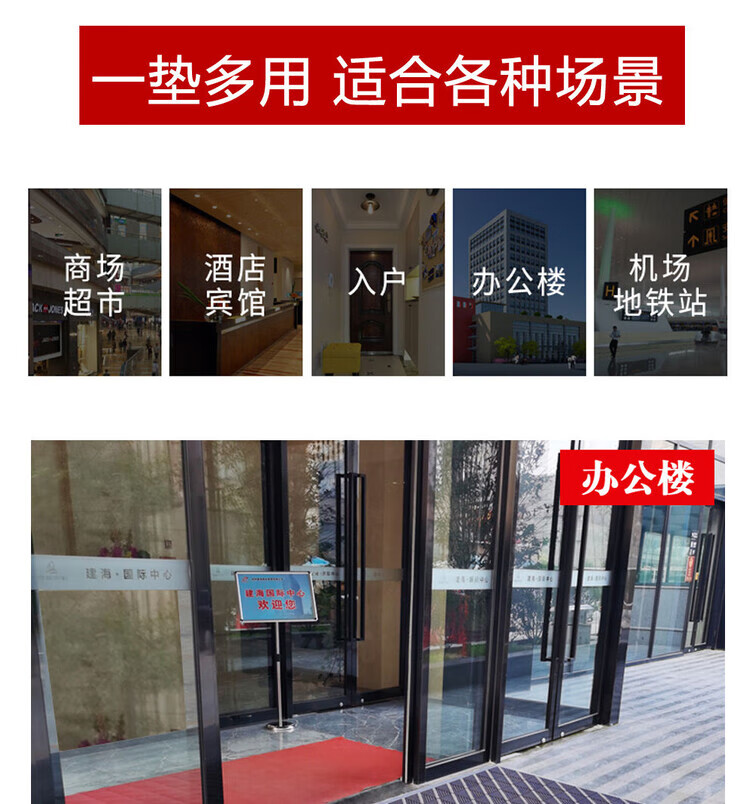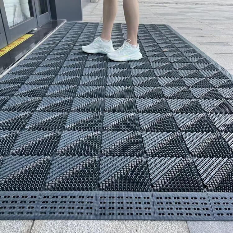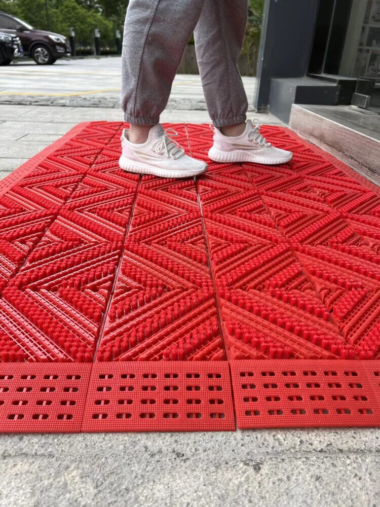 防滑地垫除尘脚垫进门垫刮泥商用家用地垫入户大门口脚垫入户门垫 三刷灰红(毛刷加密) 90cm*210cm【送橡胶锤】