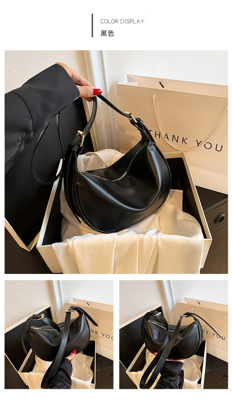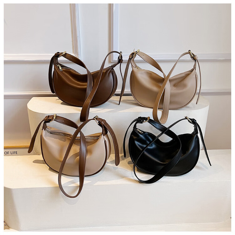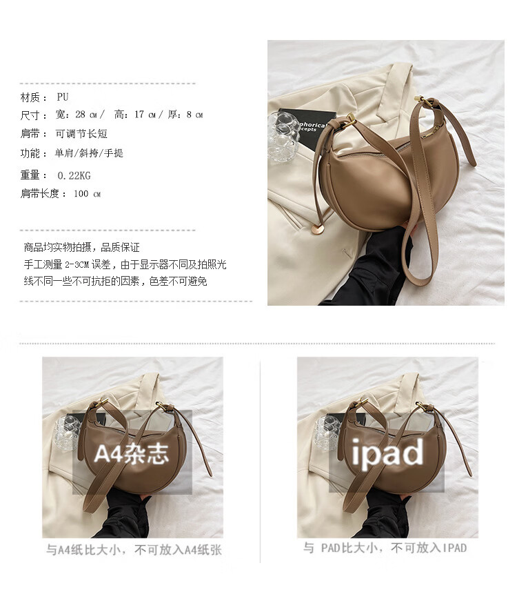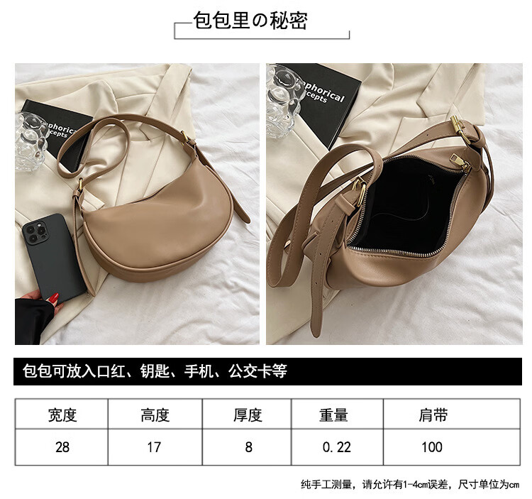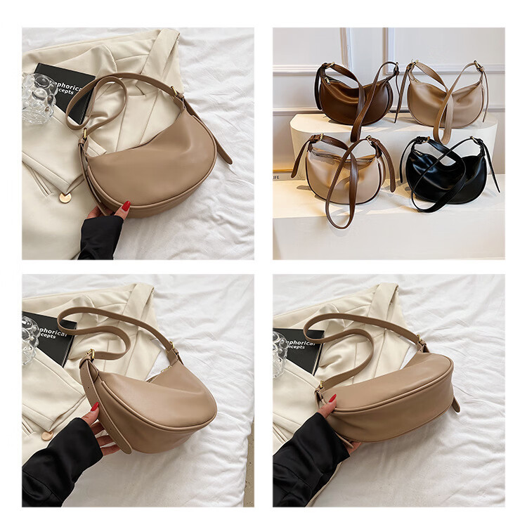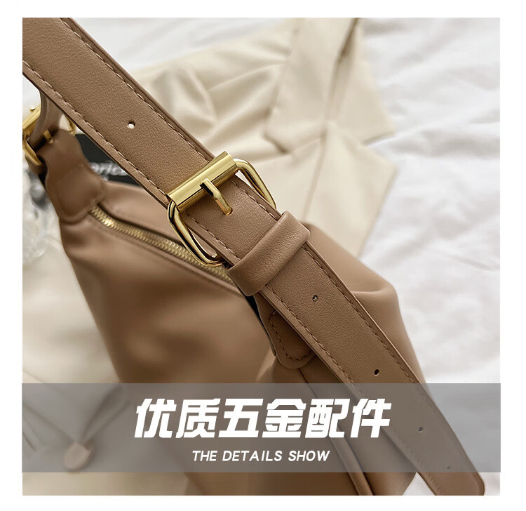 【优选】纯色单肩包包女2025新款网红简约单肩腋下包软PU斜挎包百 卡其配棕