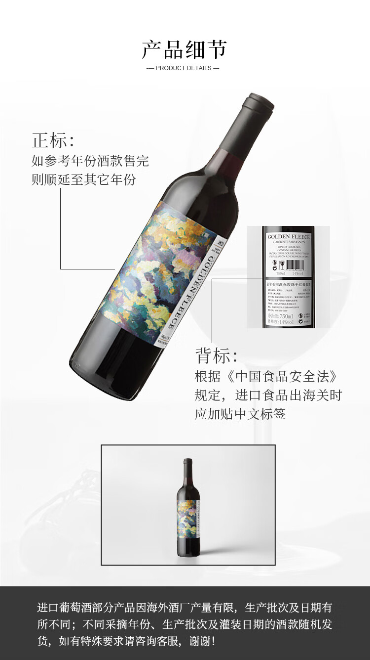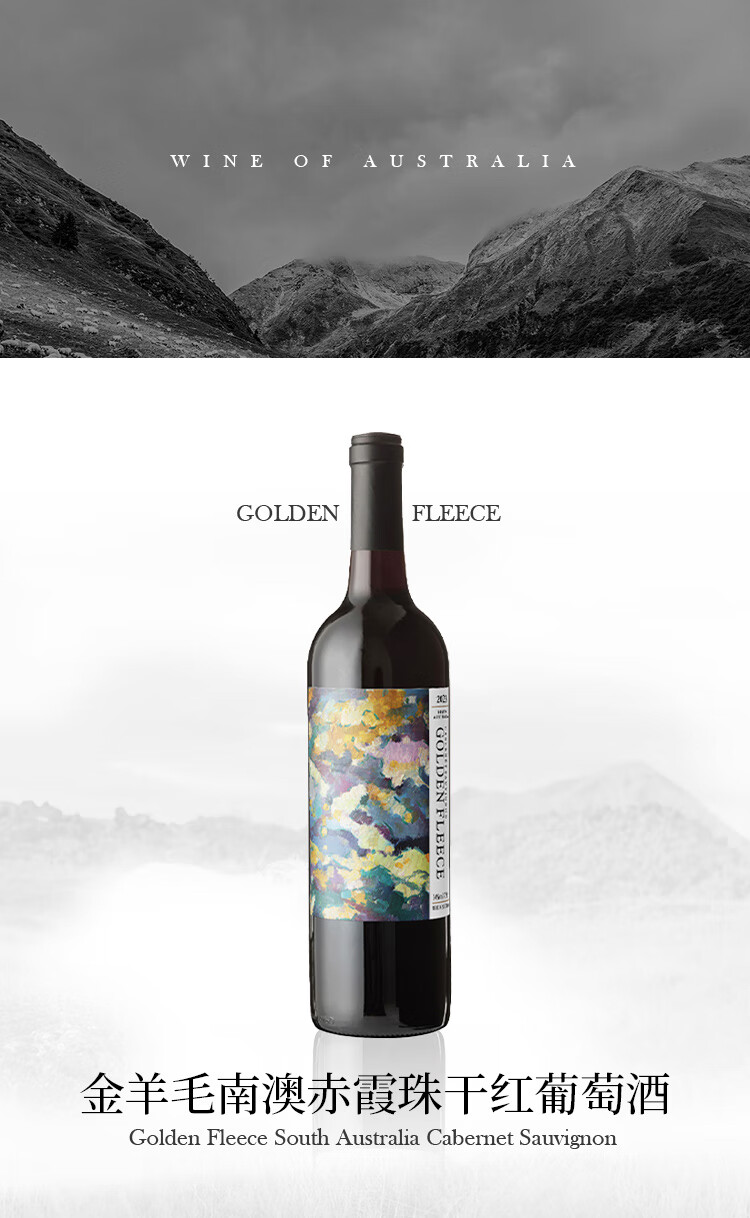 金羊毛【国际金奖/澳洲原瓶】澳洲原瓶进口红酒干红葡萄酒赤霞珠送礼酒 750ml*2瓶