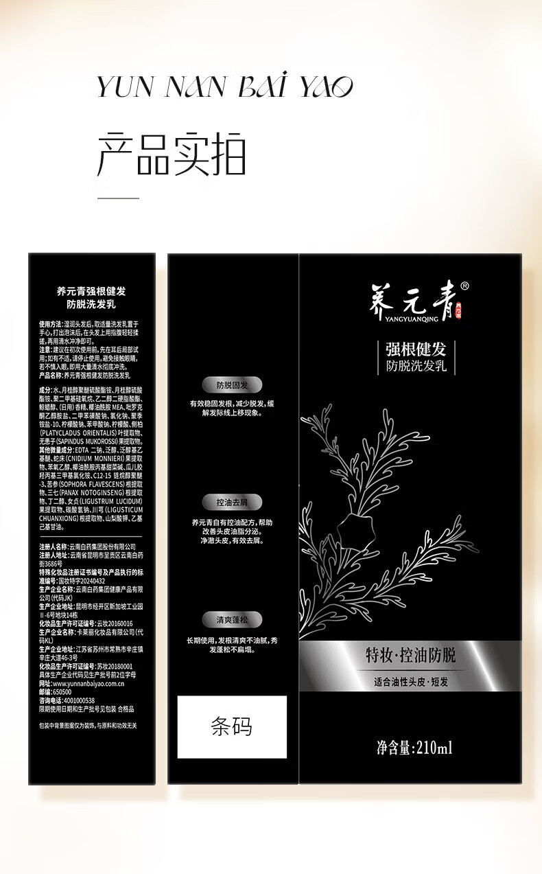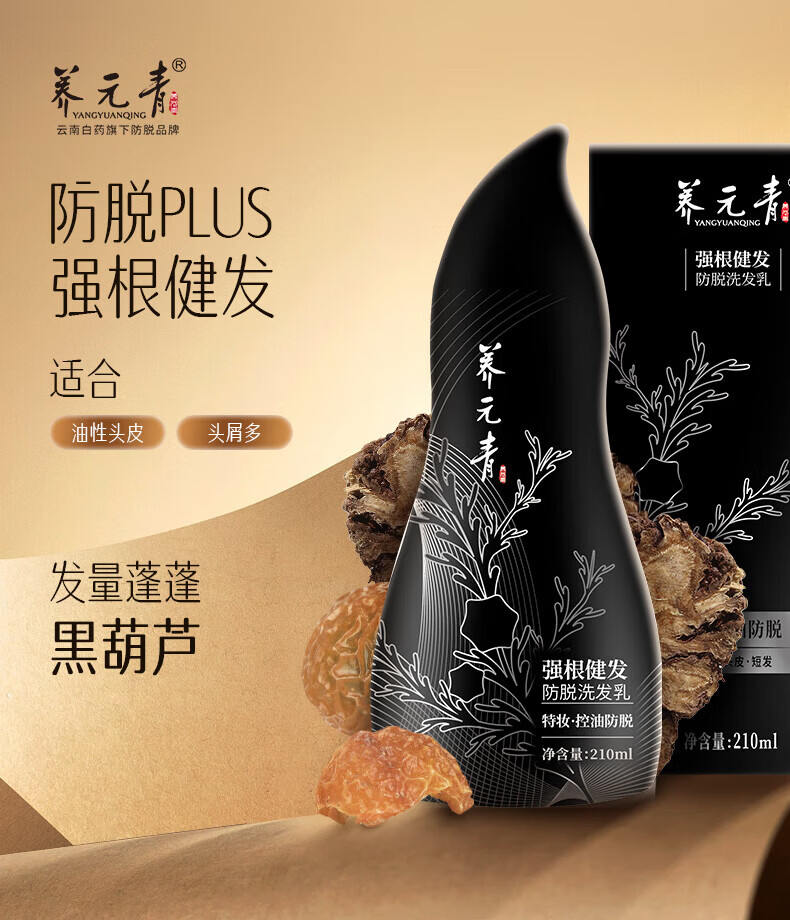 养元青洗发水控油强根健发去屑黑葫芦强韧蓬松金葫芦防脱洗发乳 【短发防脱】强根健发210ml