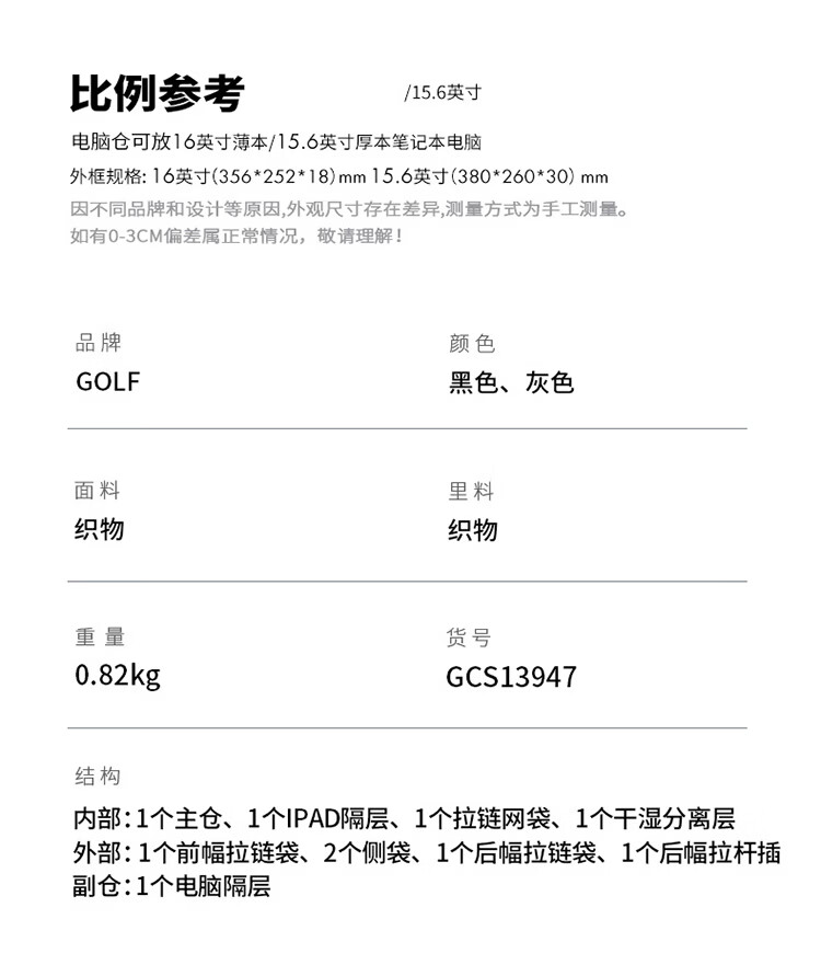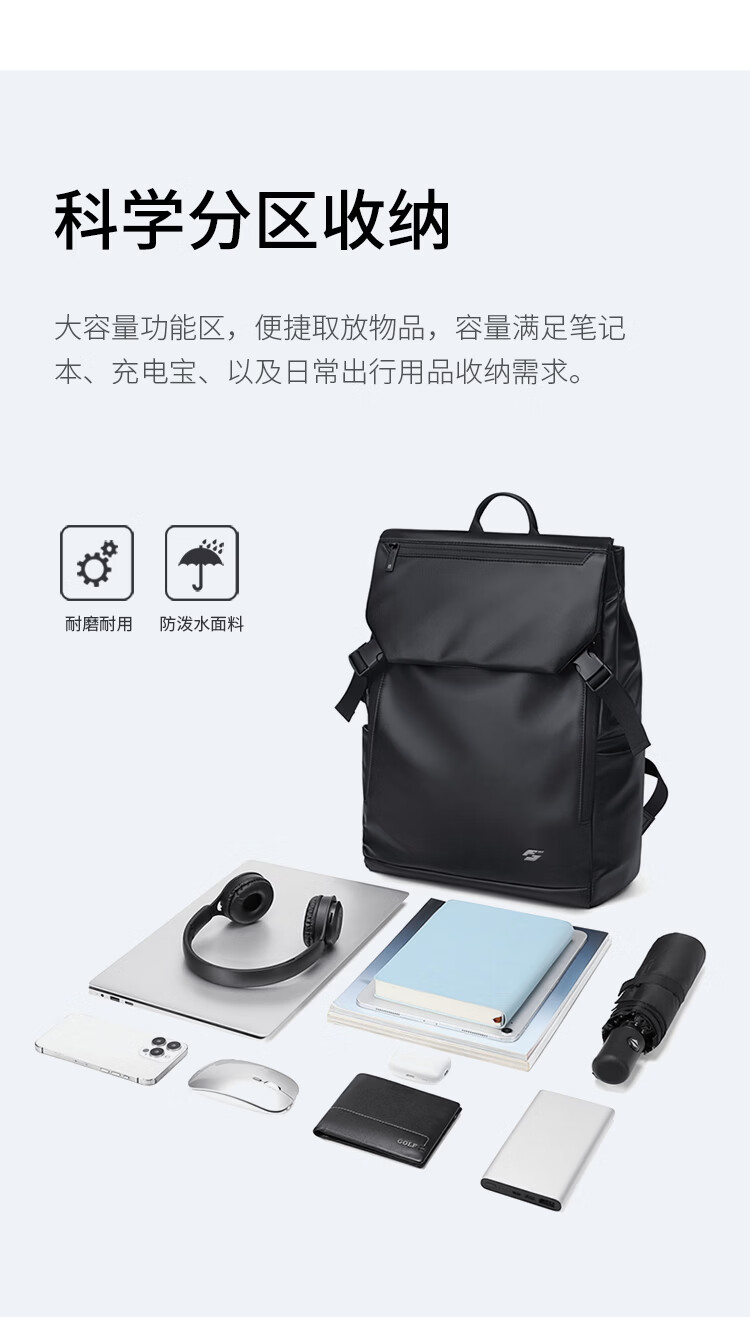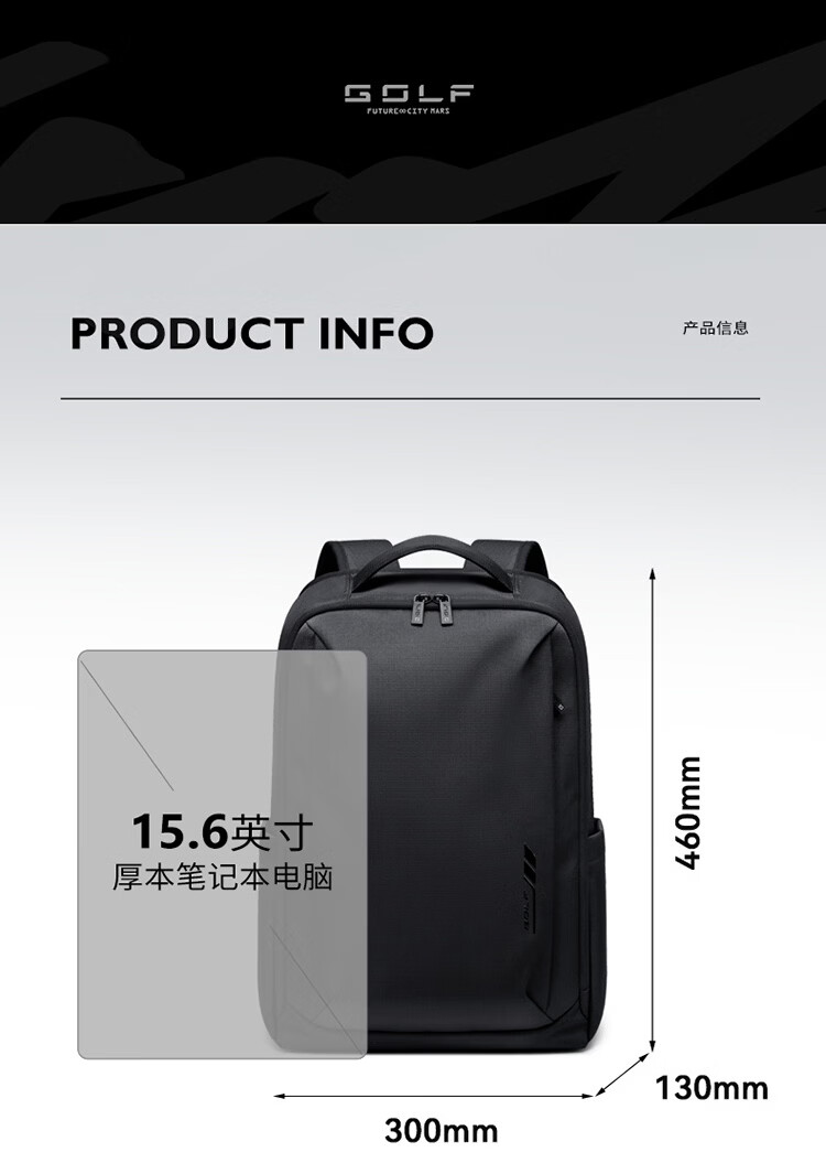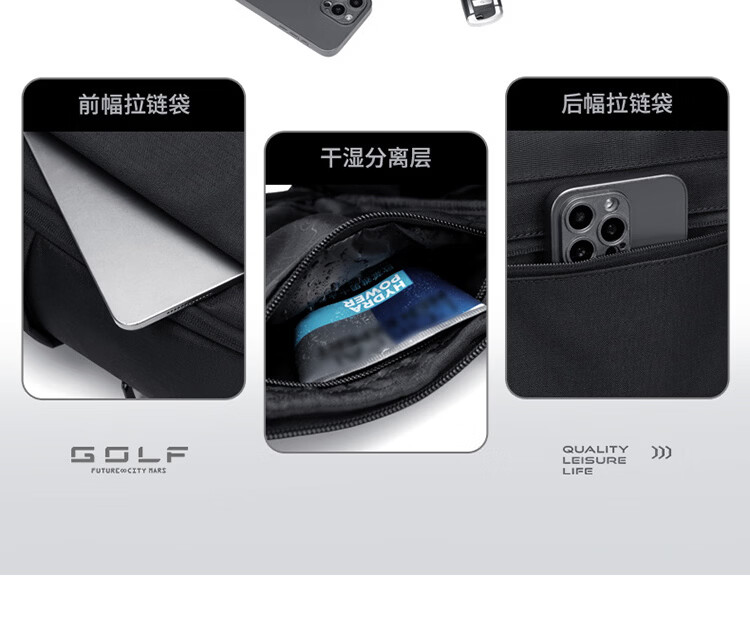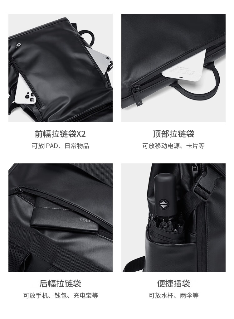 高尔夫(GOLF)双肩包男女百搭背包女休闲旅行学生书包防泼水出游背包【Q】 款式11-黑色