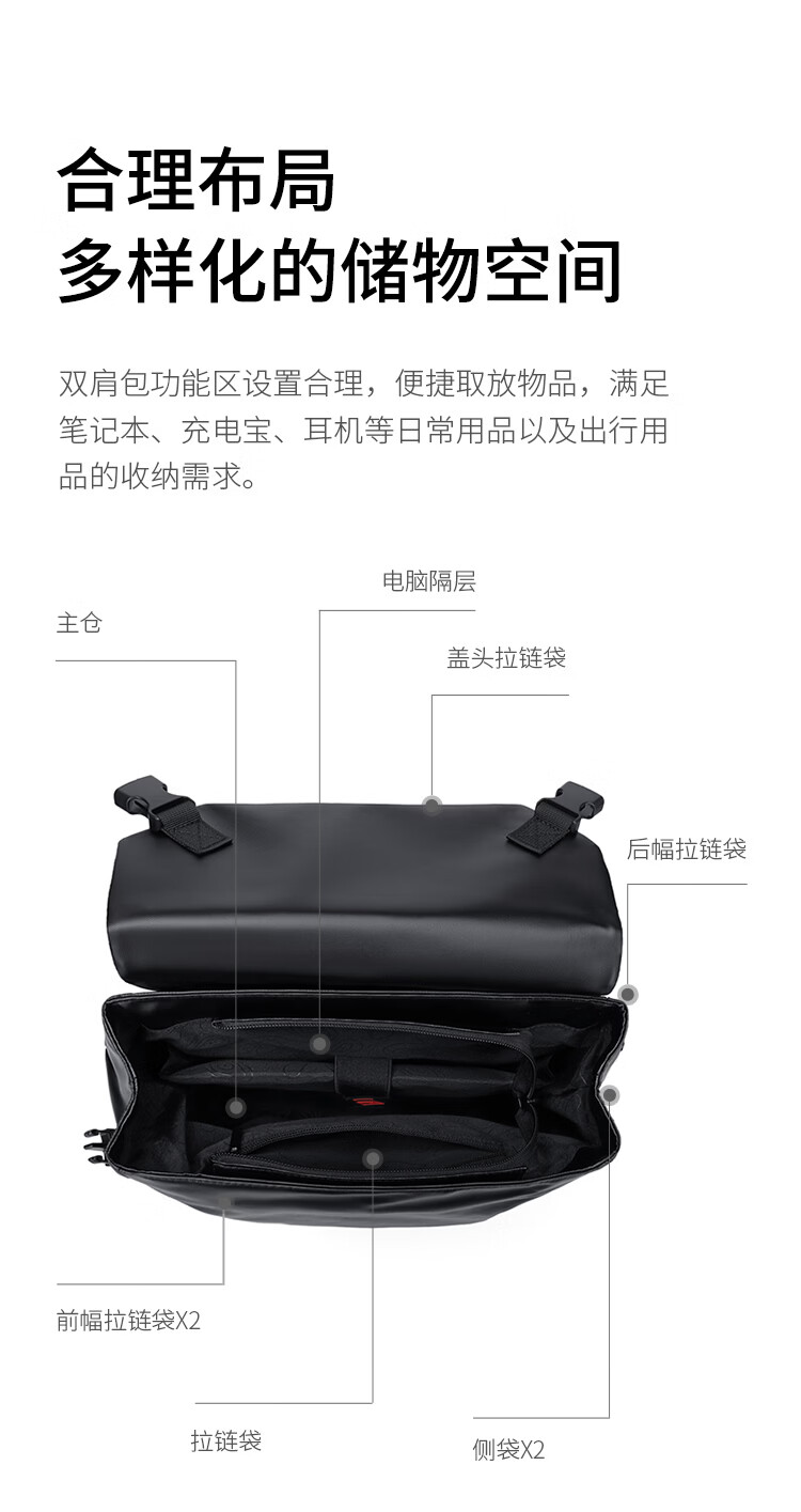 韩版休闲大容量多层防水单肩斜跨包男女生意收钱包夏季男士挎包包 六拉链黑色