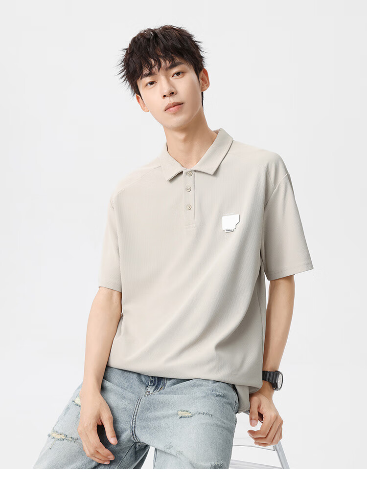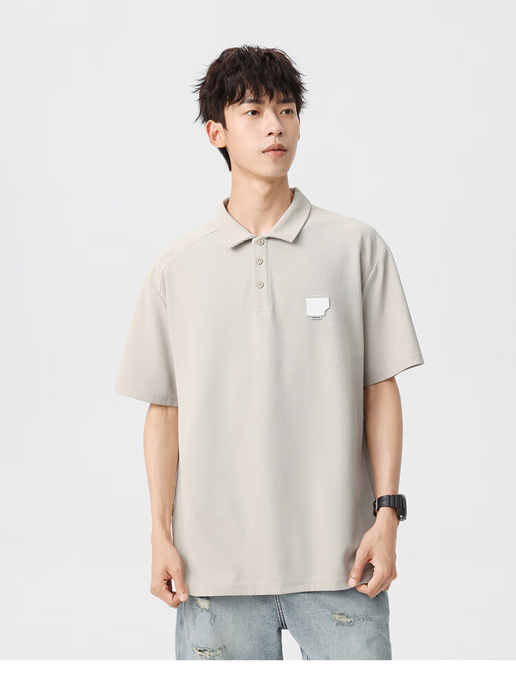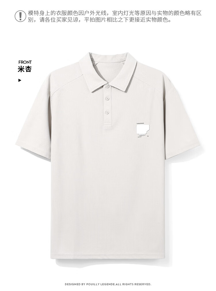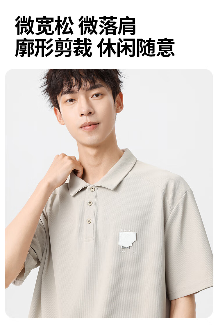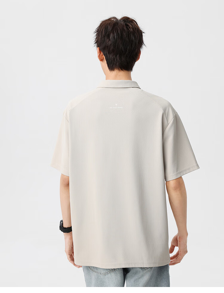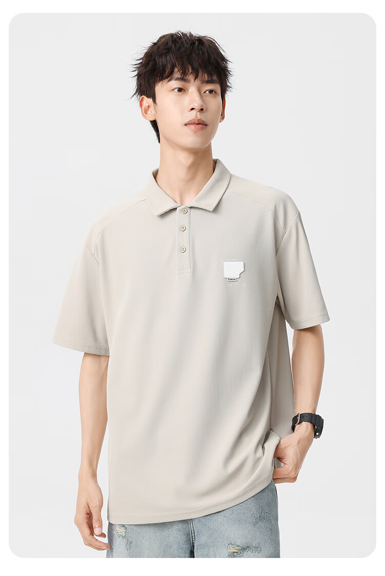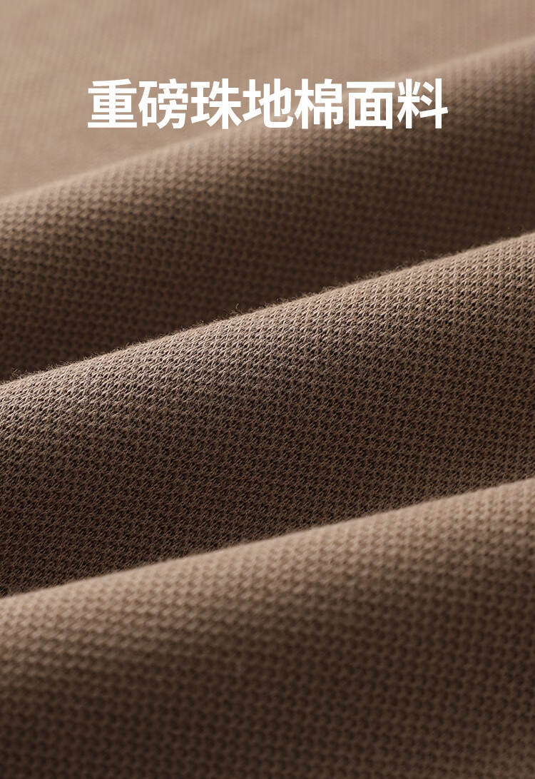布衣传说 220g双纱华夫格 夏季纯色polo衫男短袖宽松半袖打底衫 米杏a XL