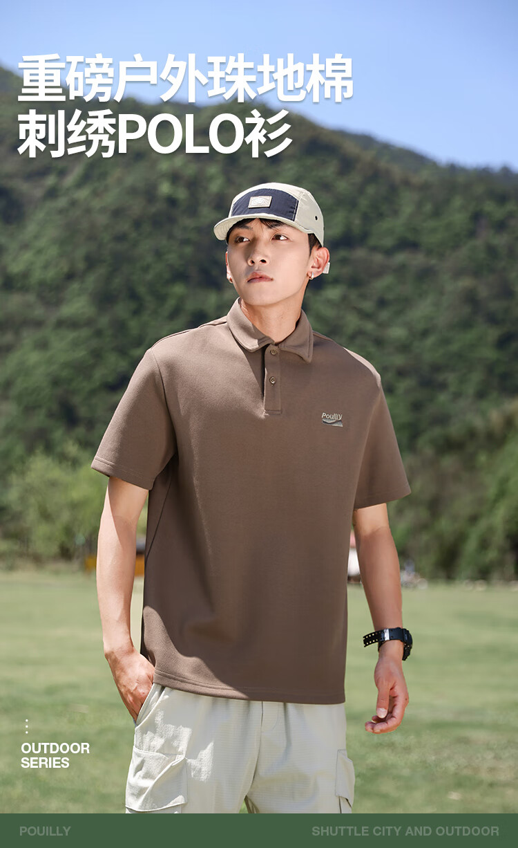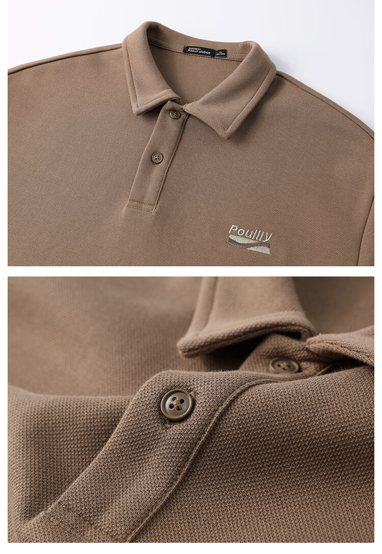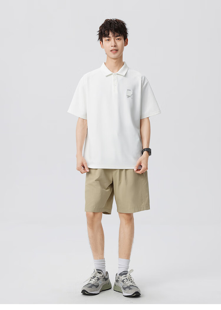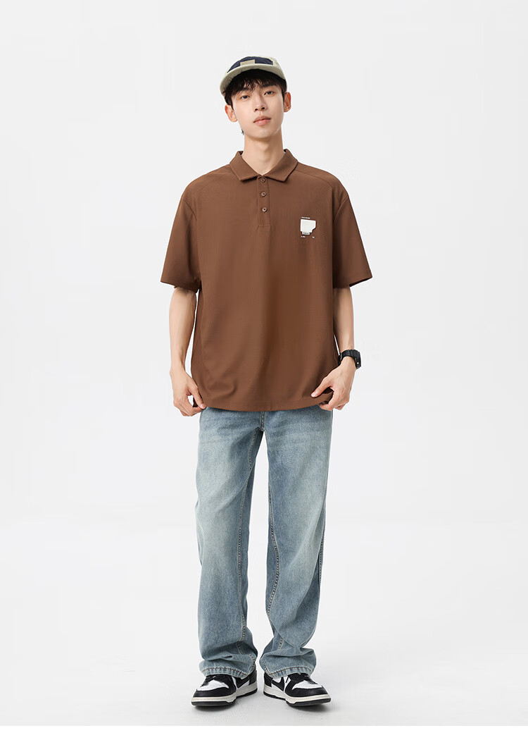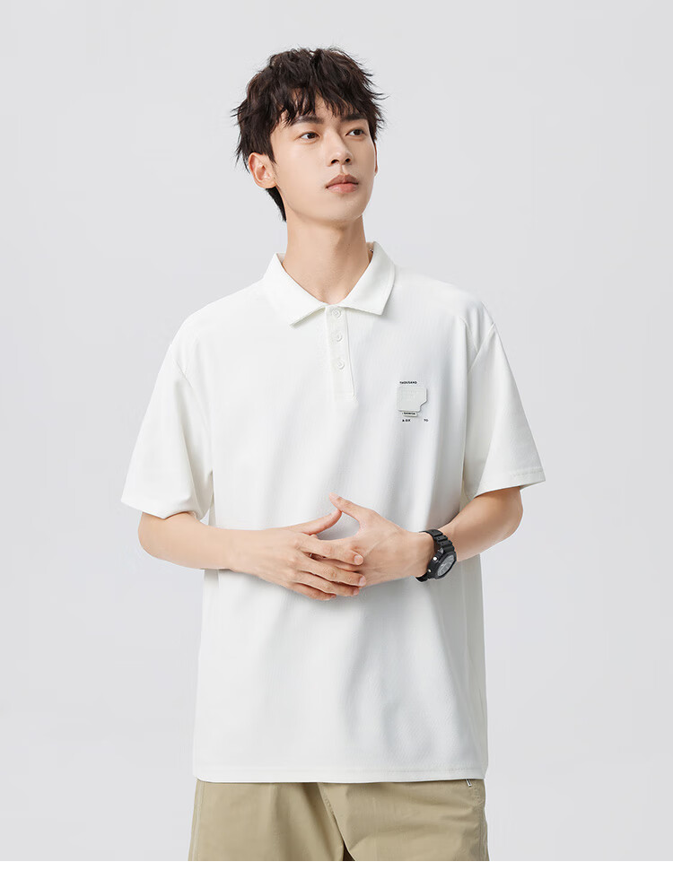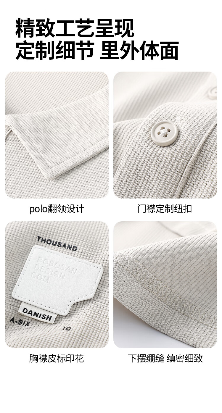 布衣传说 220g双纱华夫格 夏季纯色polo衫男短袖宽松半袖打底衫 米杏a XL