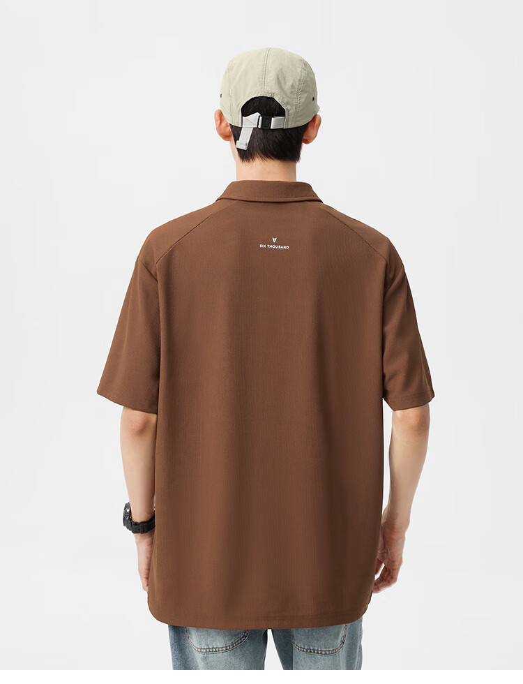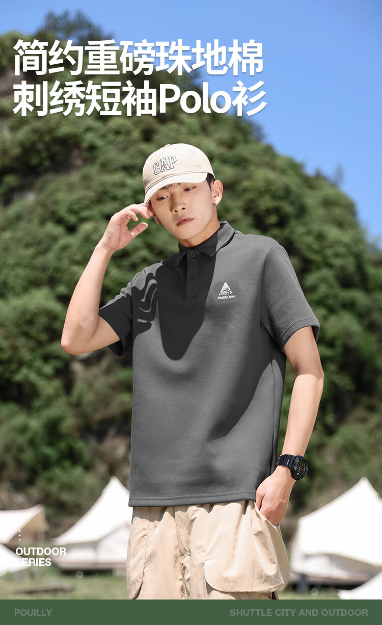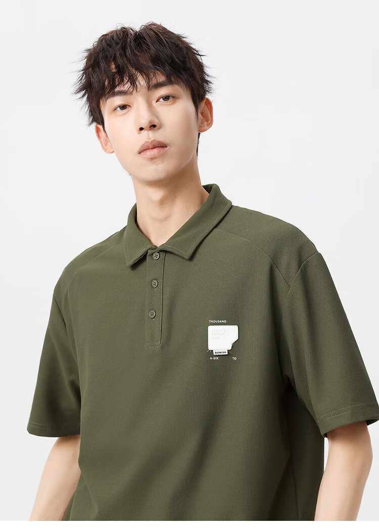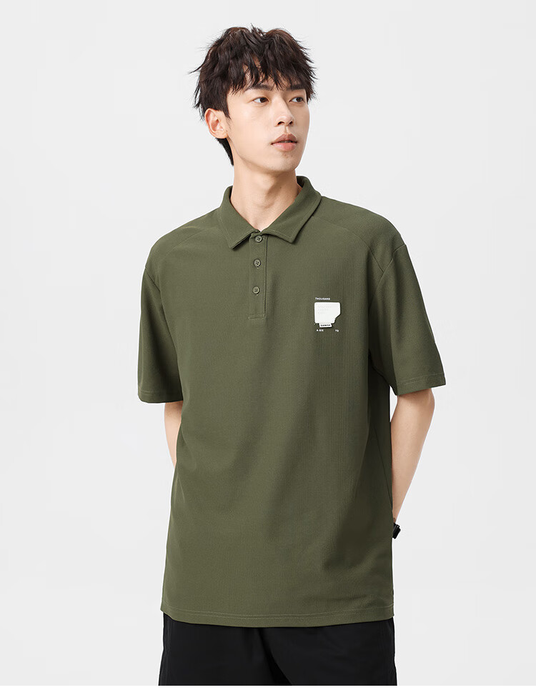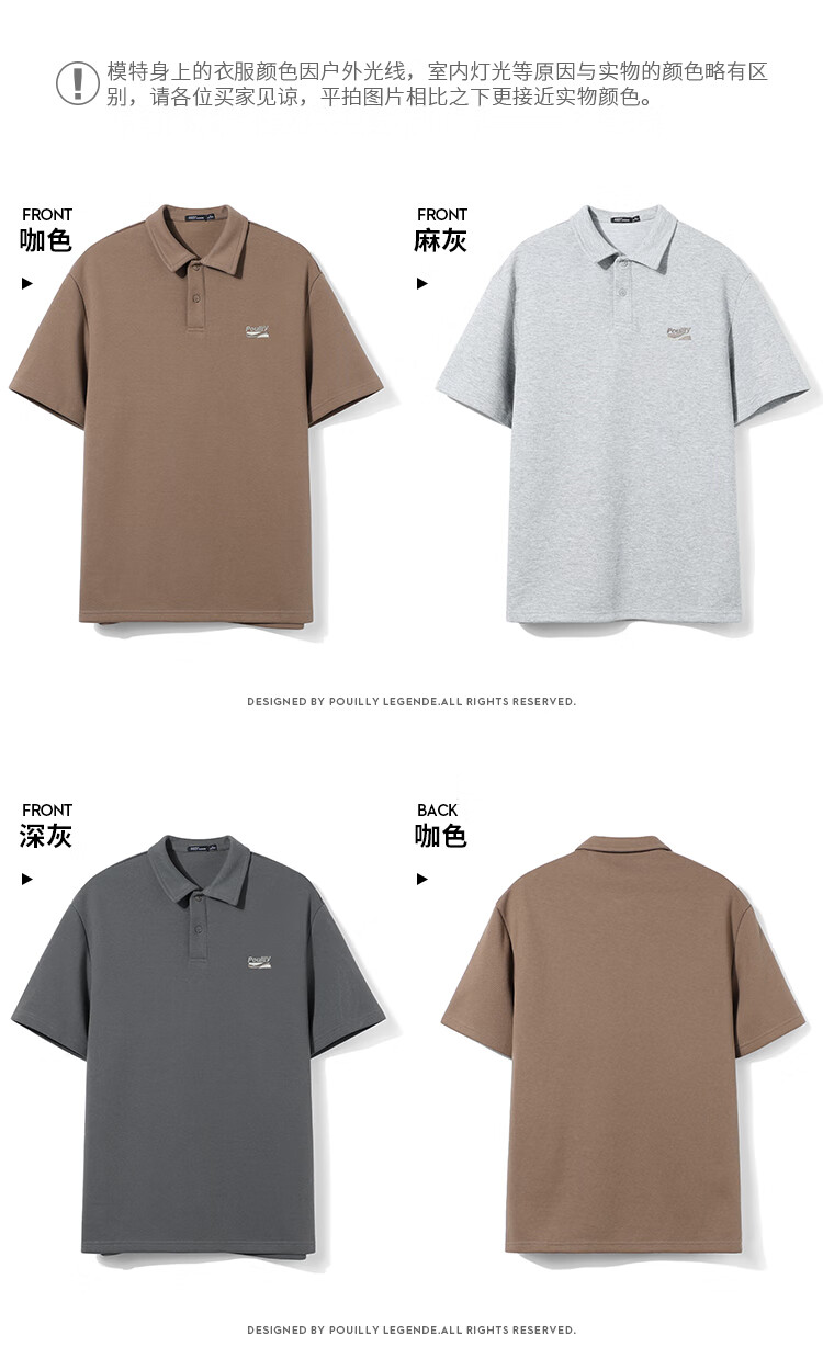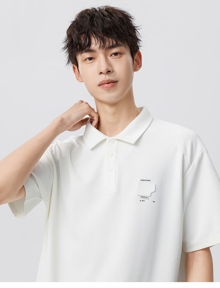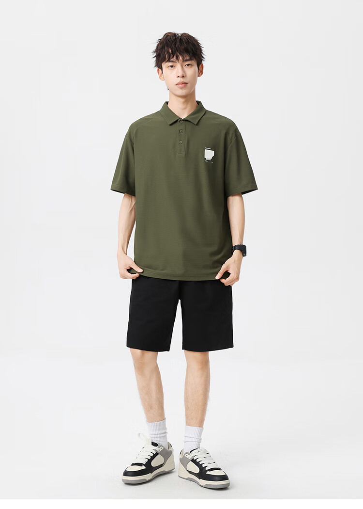 布衣传说 220g双纱华夫格 夏季纯色polo衫男短袖宽松半袖打底衫 米杏a XL