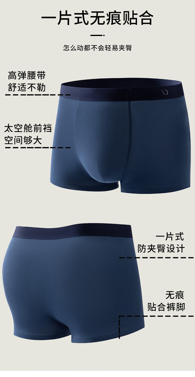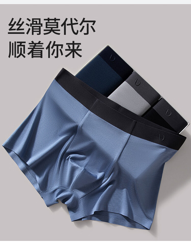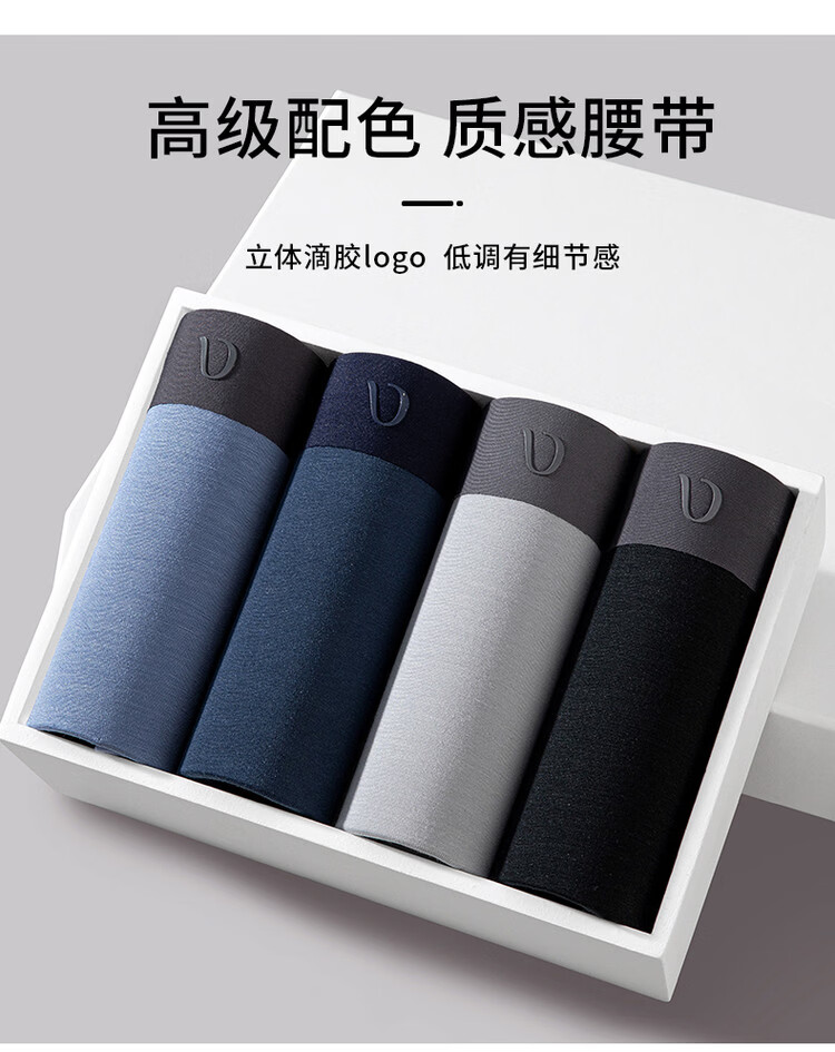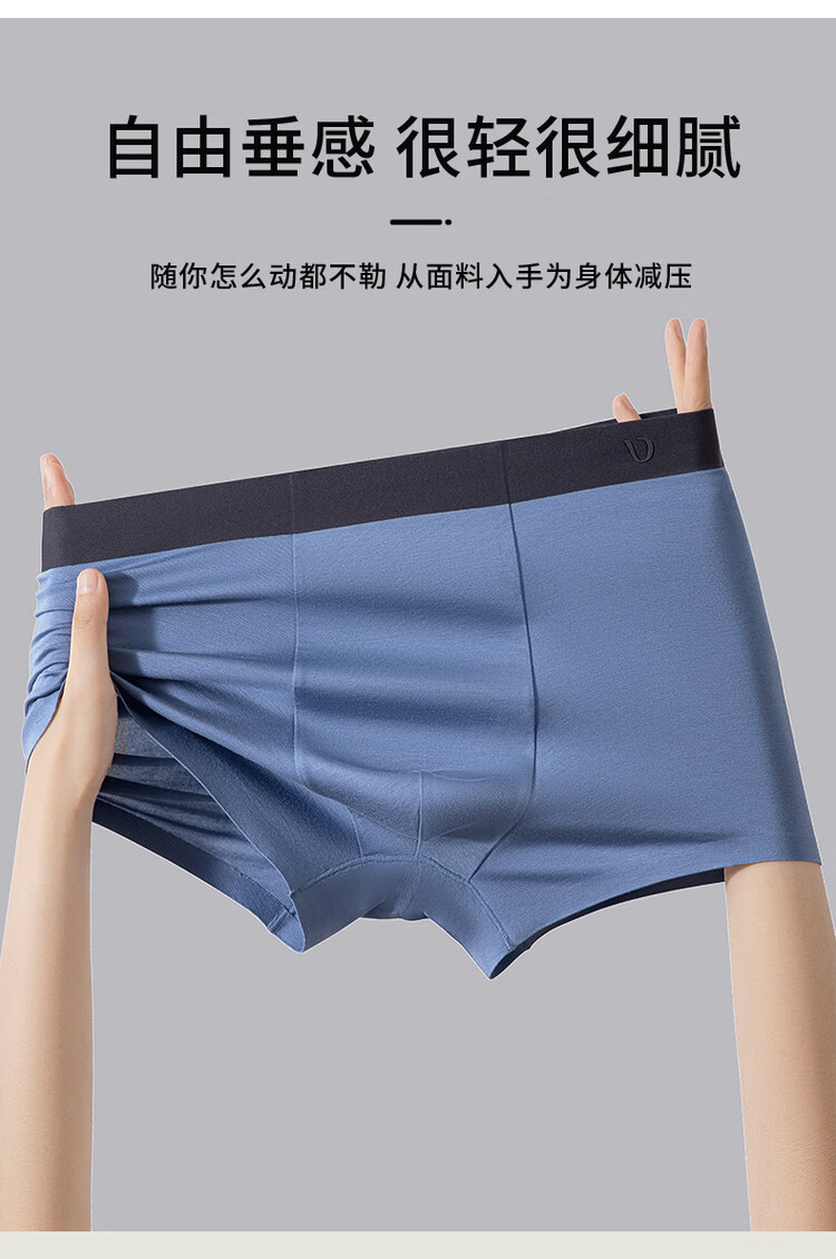 DV男士内裤轻奢莫代尔无痕冰丝10A抗菌平角竞品高端四角短裤衩男4条 海蓝+夜蓝+浅灰+黑色 4条 4XL 190高/180-200斤