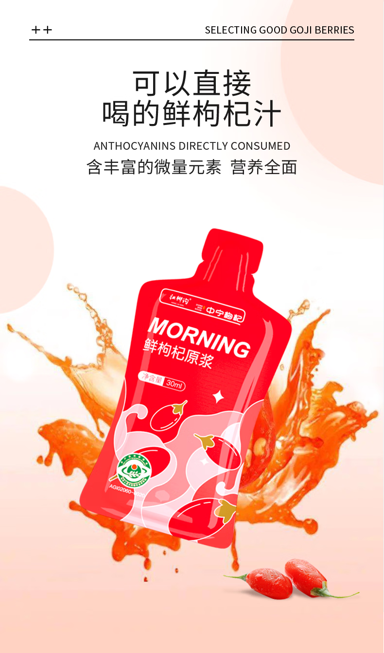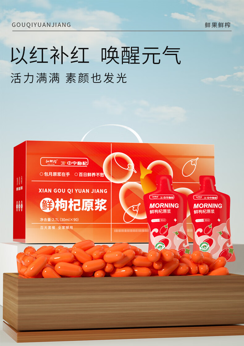 中宁枸杞 鲜枸杞原浆汁礼盒2700ml 宁夏中宁头茬鲜果鲜榨红枸杞原液 黑红组合原浆 2700ml*1盒 (30ml*90袋)